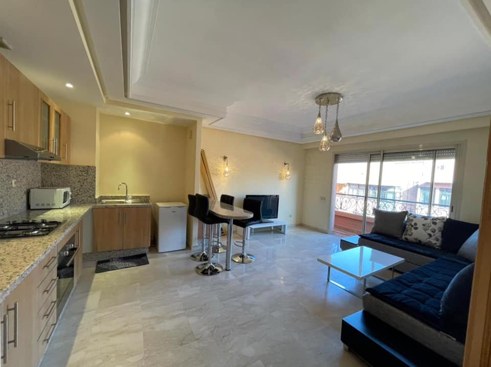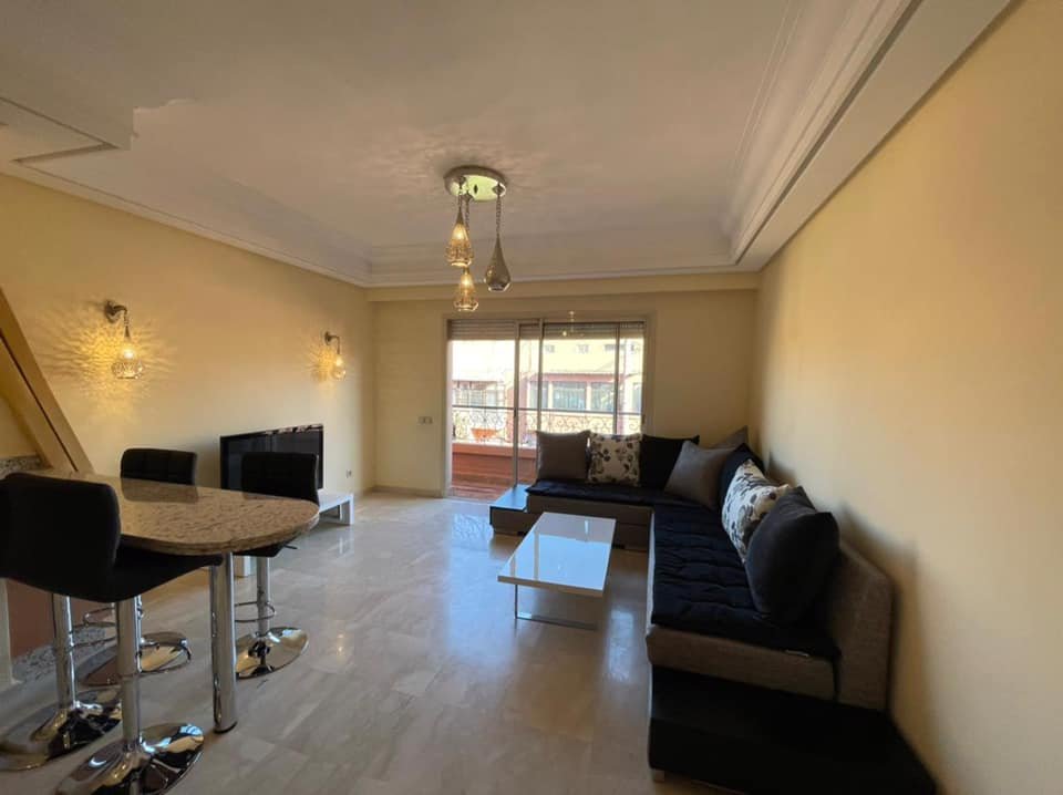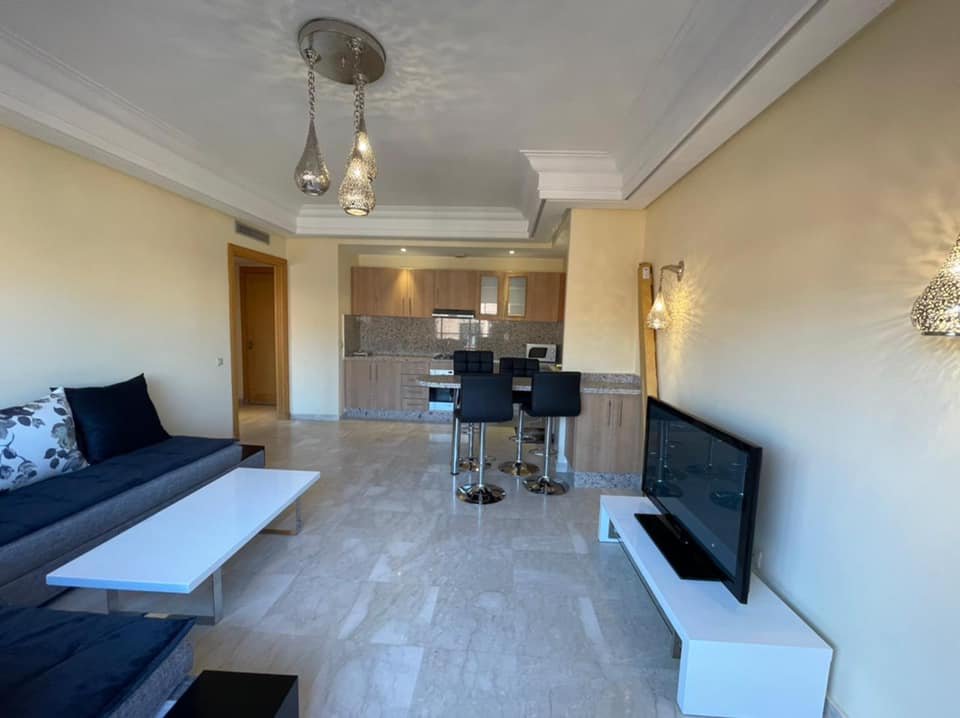 Appartement F2 bien meublé au 4eme étage dans une résidence de haut standing avec piscine à Semlalia l'appartement est composé de : - Salon avec terrasse -cuisine équipée ouverte sur le salon - chambre à coucher avec terrasse la résidence avec : - Ascenseur - place parking - piscine collective - salle de jeux - Agent de sécurité