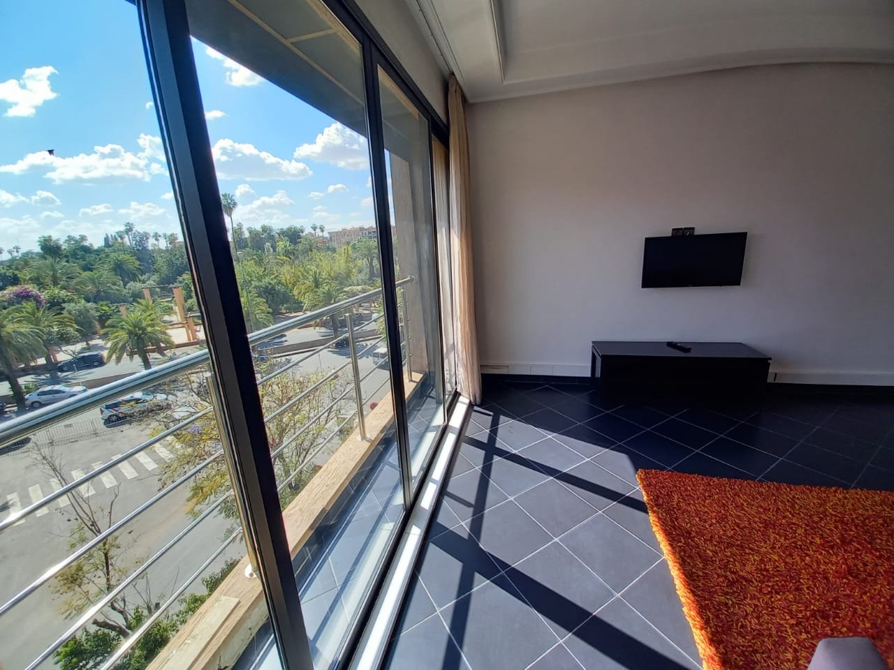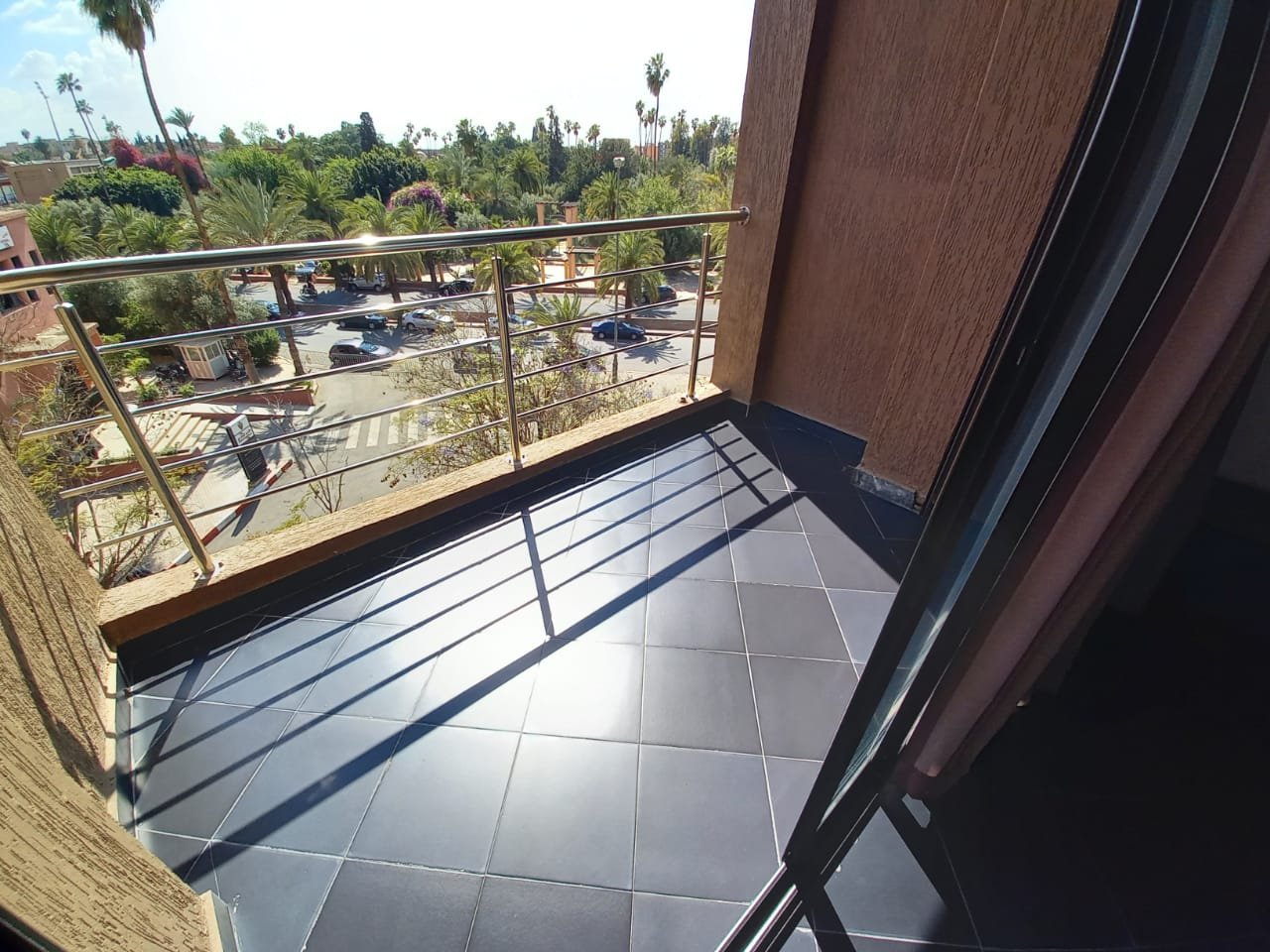 Appartement F2 meublé à louer ( longue durée ) sans vis à vis situé au 2éme étage dans une résidence de haut standing à Guéliz l'appartement est composé de : - 1 chambre à coucher avec placards et terrasse. - 1 salle de bain - Salon avec terrasse et table à manger - cuisine équipée ouverte sur le salon - Ascenseur