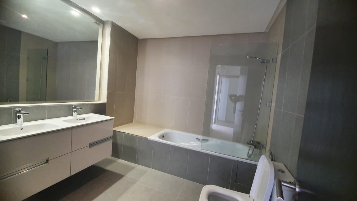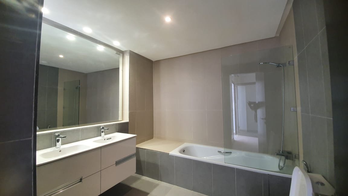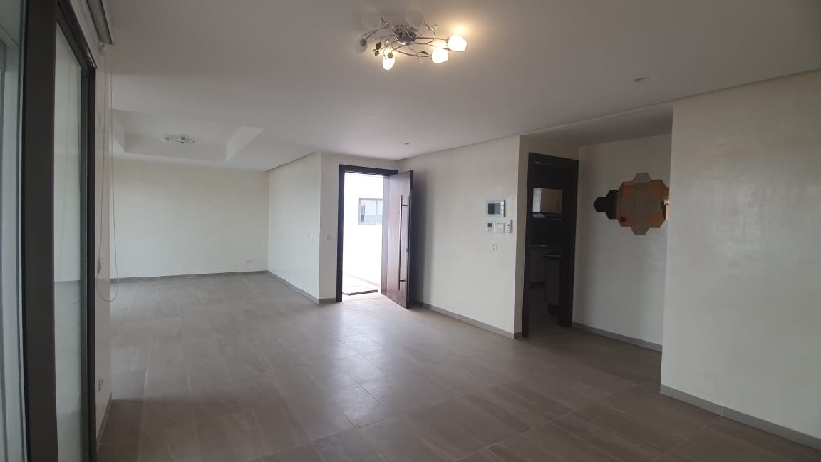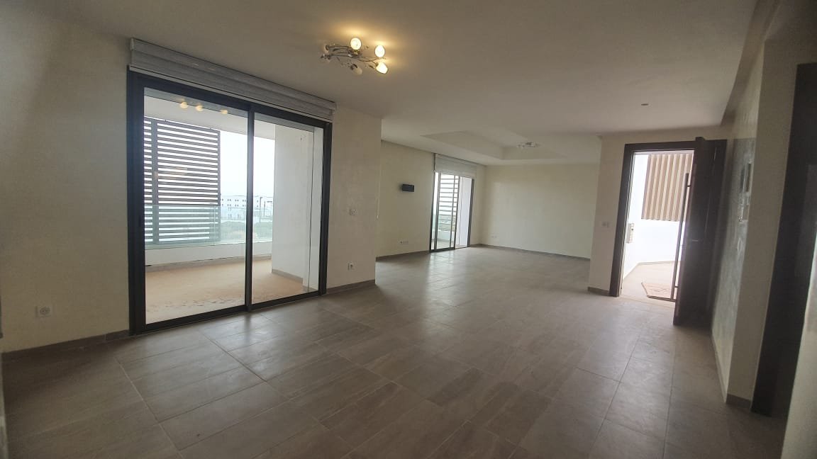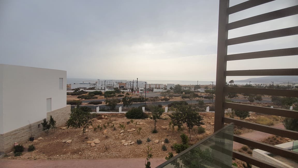 TINASS IMMO vous a trouvé un appart vide d'une sup de 150m² avec terrasse et une belle vue sur mer et piscine dans une résidence calme et sécurisée à Taghazout Bay, 15mn du centre d'Agadir . IL est composé de 3 chambres dont une avec dressing et salle de bain et les 2 autres chambres avec une salle de bain commune et chacune avec terrasse privative, un grand salon avec grande terrasse et un coin salle à manger et une cuisine équipée avec un coin buanderie et une petite pièce pour le personnel