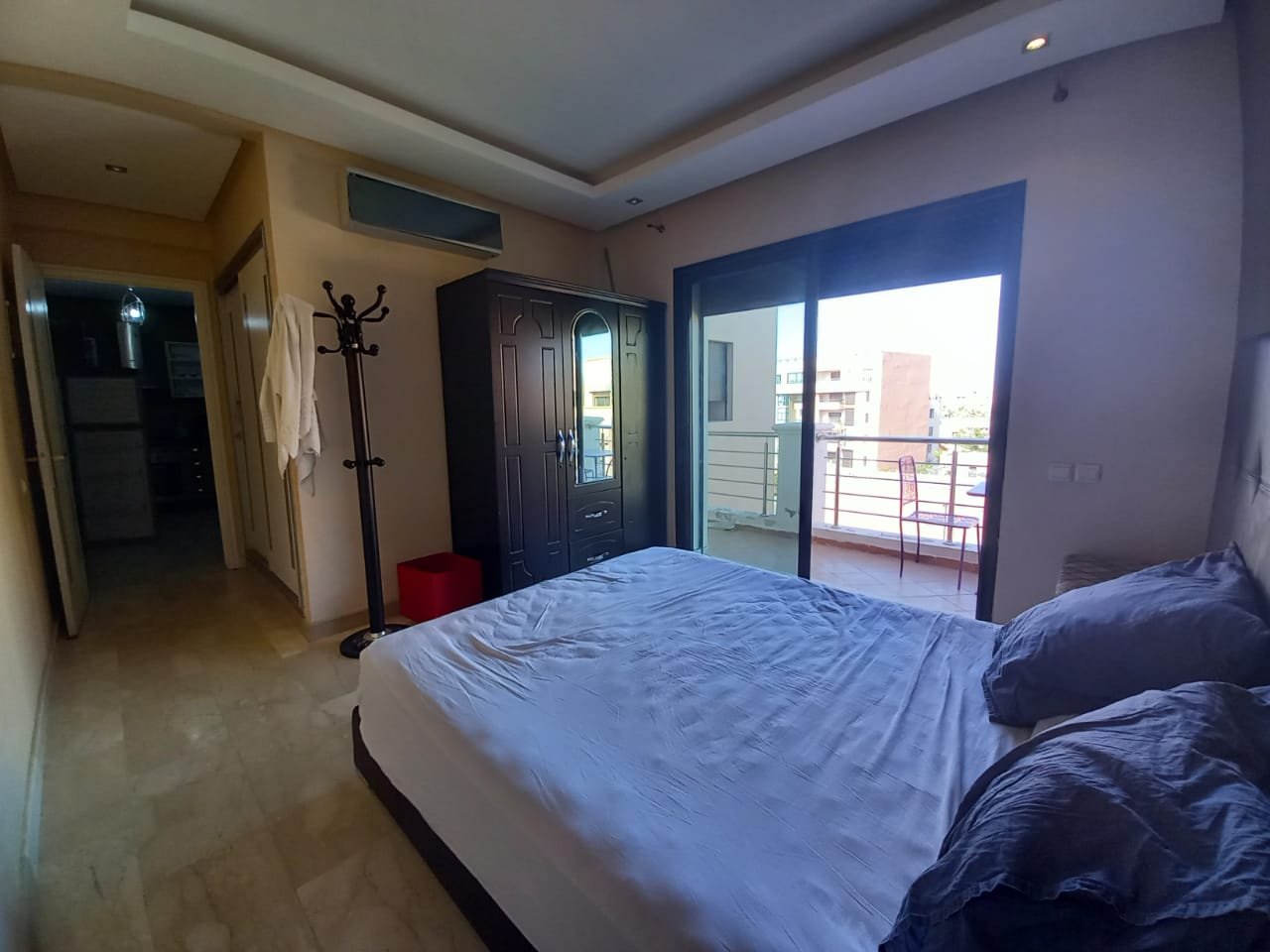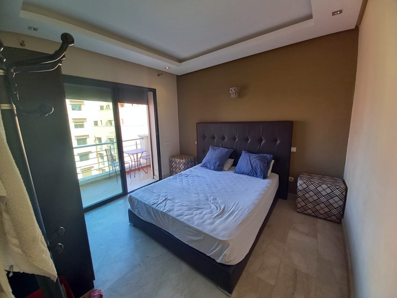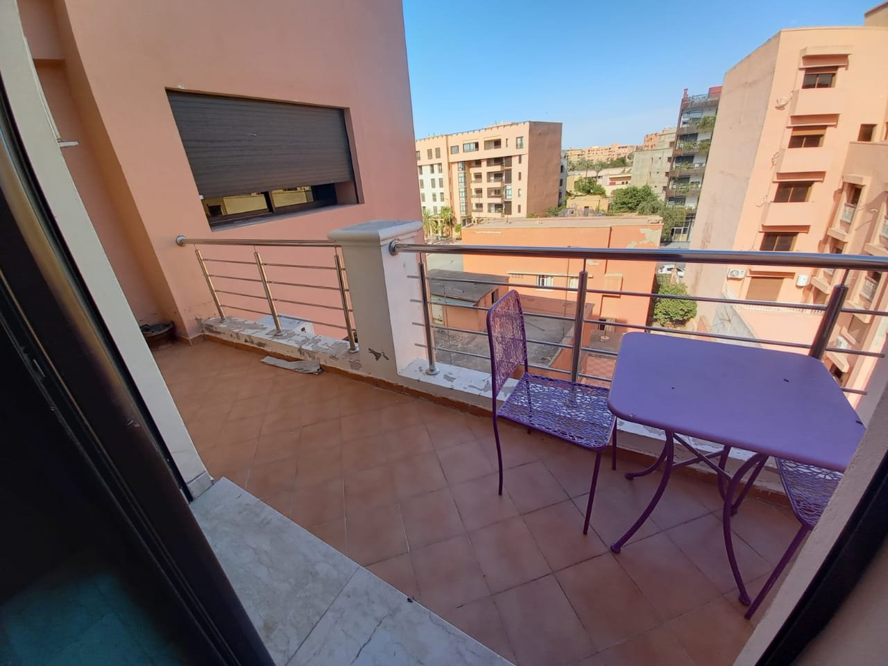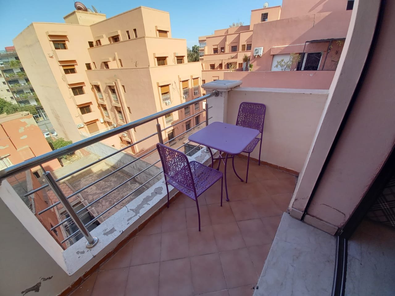 Appartement F2 meublé à louer ( longue durée ) sans vis à vis situé au 2éme étage dans une résidence de haut standing à Guéliz l'appartement est composé de : - 1 chambre à coucher avec placards et terrasse. - 1 salle de bain - Salon avec able à manger - cuisine équipée ouverte sur le salon - Ascenseur -4eme étage - place parking