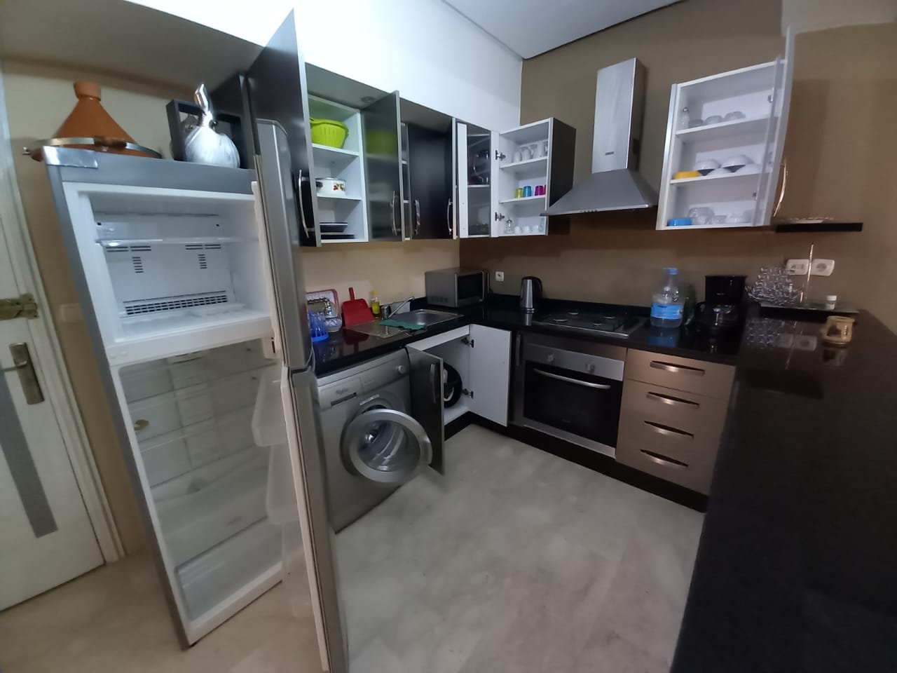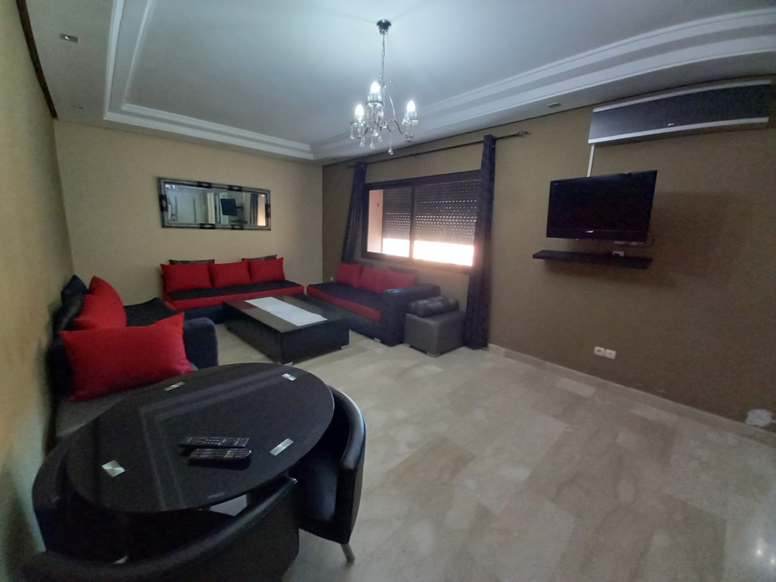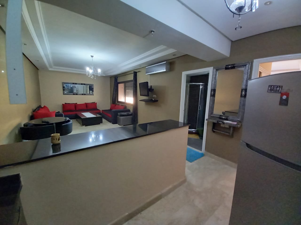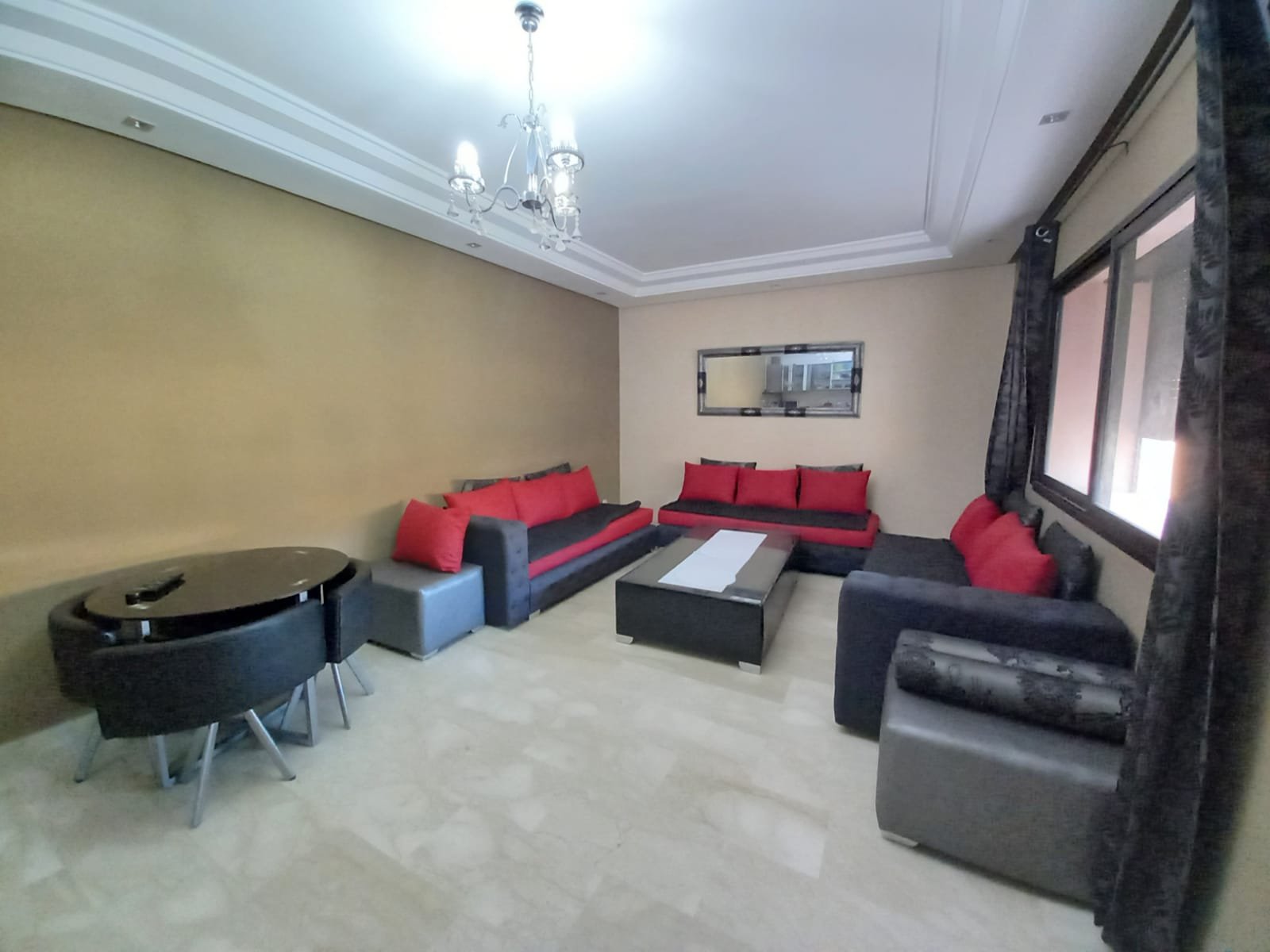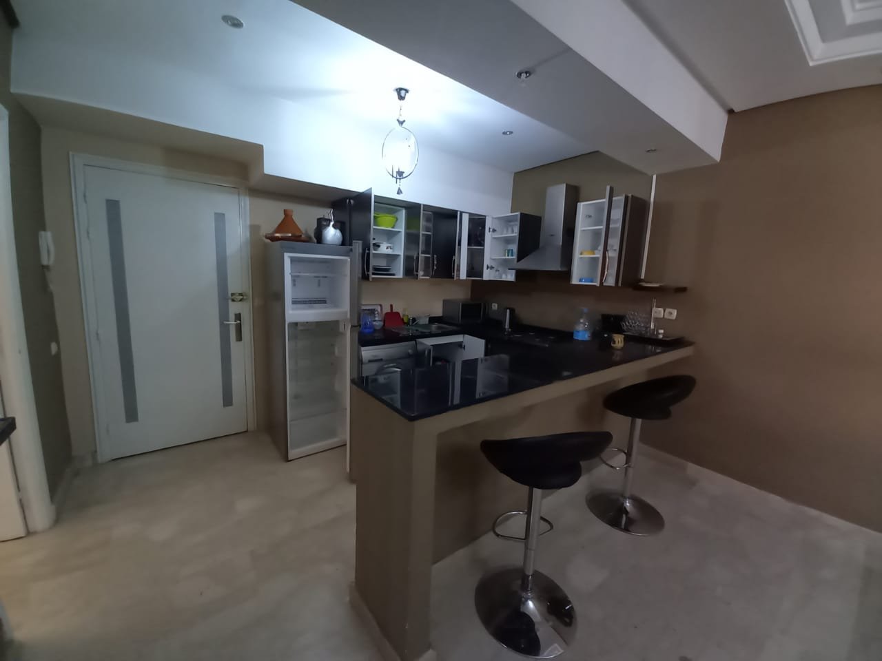 Appartement F2 meublé à louer ( longue durée ) sans vis à vis situé au 2éme étage dans une résidence de haut standing à Guéliz l'appartement est composé de : - 1 chambre à coucher avec placards et terrasse. - 1 salle de bain - Salon avec able à manger - cuisine équipée ouverte sur le salon - Ascenseur -4eme étage - place parking
