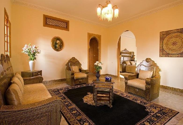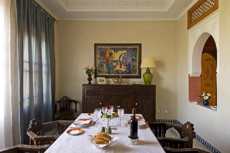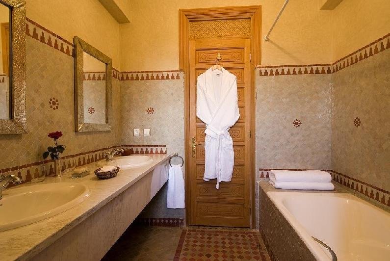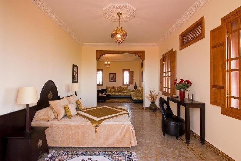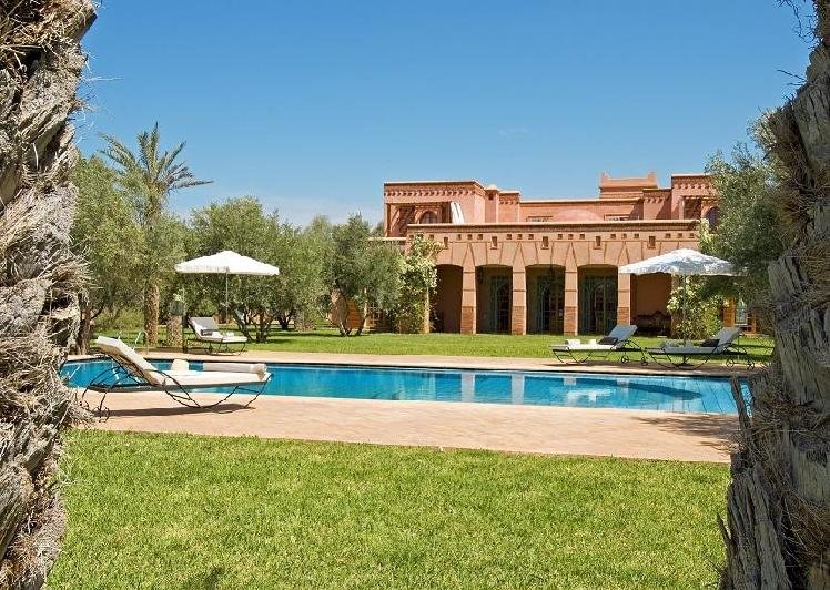 À louer en location à l'année, cette charmante villa parfaitement meublée et équipée sur 11000m² de terrain arboré, située au calme à 10km du centre de Marrakech sur la route de Fès, composée de 6 chambres spacieuses et décorées dans un style traditionnel chic et avec leur salle de bain privative et terrasse, des salons style marocain, un grand patio bien exposé, cuisine entièrement équipée et un Hammam beldi. La villa est entourée d'une belle piscine extérieur, un beau jardin avec une magnifique vue sur Atlas.