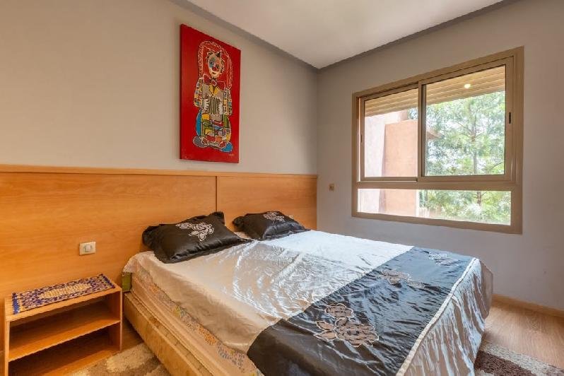 Situé dans une résidence golfique avec beau jardin et piscine un bel appartement à louer meublé d'une superficie de 135m² dont 20m² de terrasse, composé comme suit: - 2 chambres à coucher dont une ouverte sur la terrasse; -2 SDB; -une cuisine équipée; -un salon moderne; -un coin salle à manger; le tout entouré d'une belle terrasse aménagée donnant une magnifique vue sur le golf et la piscine.