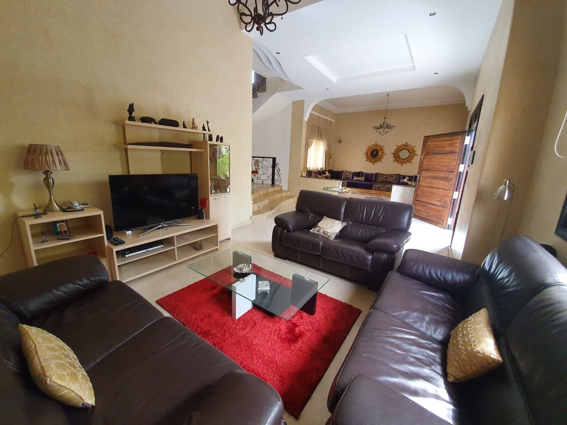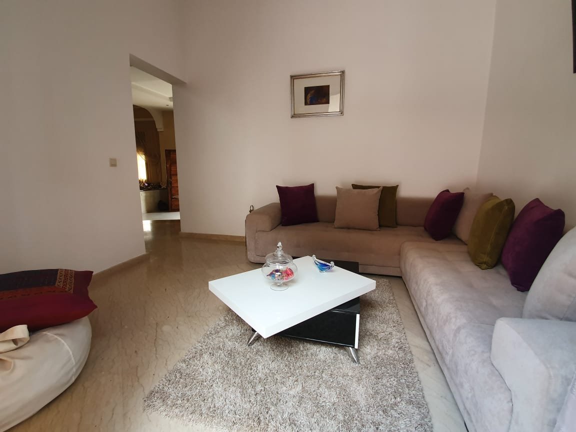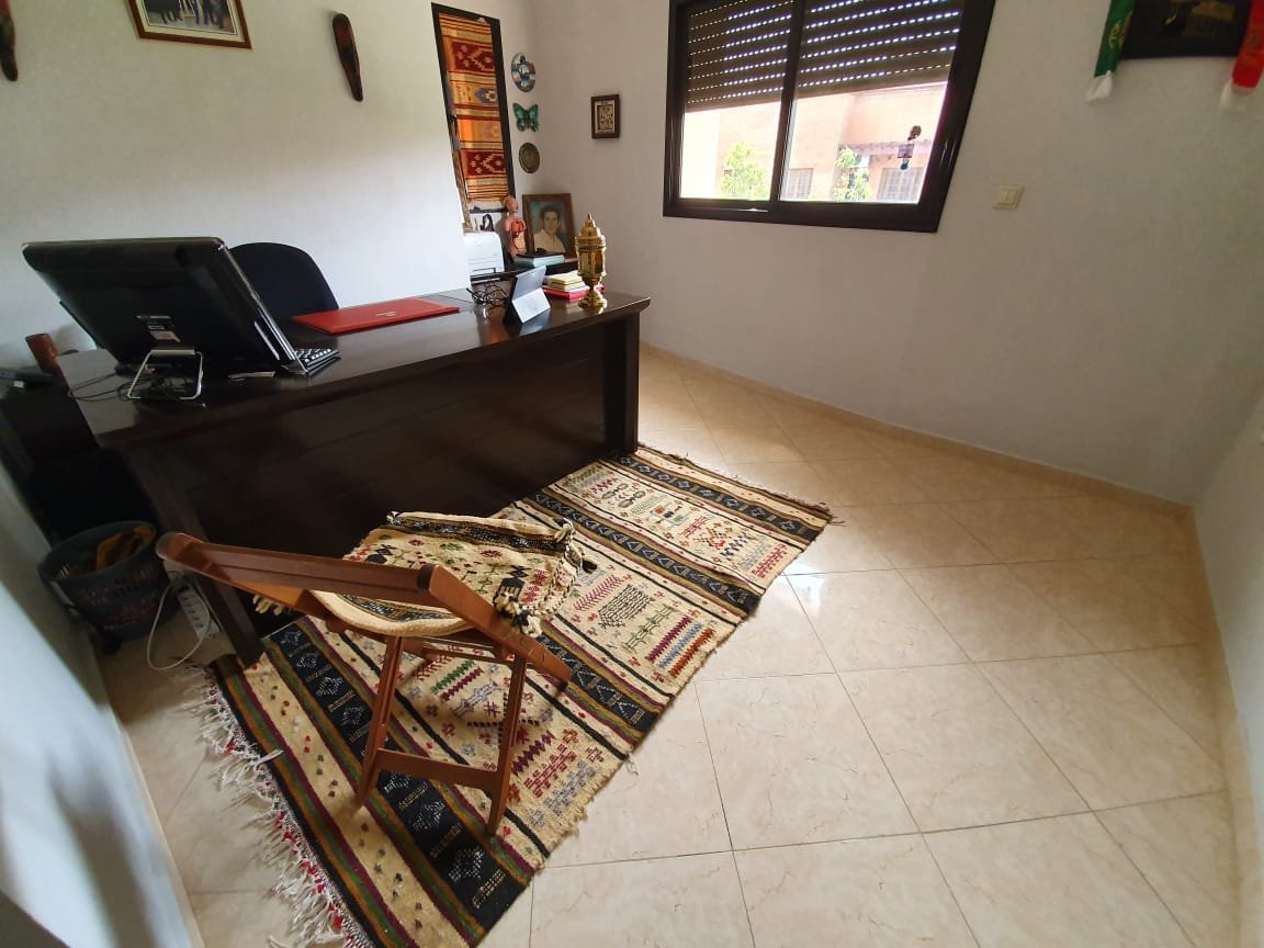 Située dans un quartier résidentiel sécurisé à Targa, cette belle villa à louer vide ou meublée, sur un terrain de 252 m² et 370 m² habitable, composée comme suit: *Au sous-sol: une grande cuisine équipée, un séjour qui pourrait servir une chambre de personnel, une SDB et un Hammam, 2 jardins à l'intérieur et autre à l'extérieur, une piscine et un local technique. * Au Rdc: il y a 2 salons dont un européen et autre marocain et un séjour qui donne sur le jardin et la piscine. *A l'étage : une chambre parentale avec dressing, SDB et une petite terrasse. 2 chambres enfants avec une salle de bain commune et une 4 ème chambre usage bureau. Loyer : 13.000 dh Loyer meublée: 15.500 dh Tél : +212 664-737991 / +212 688 156 692 .