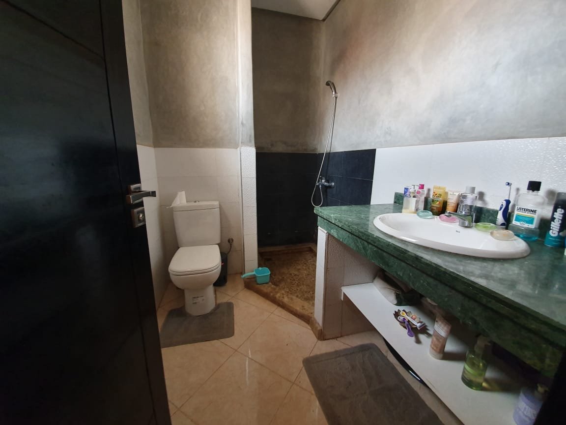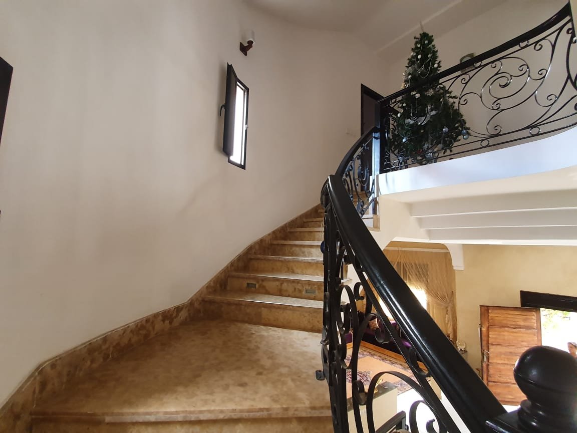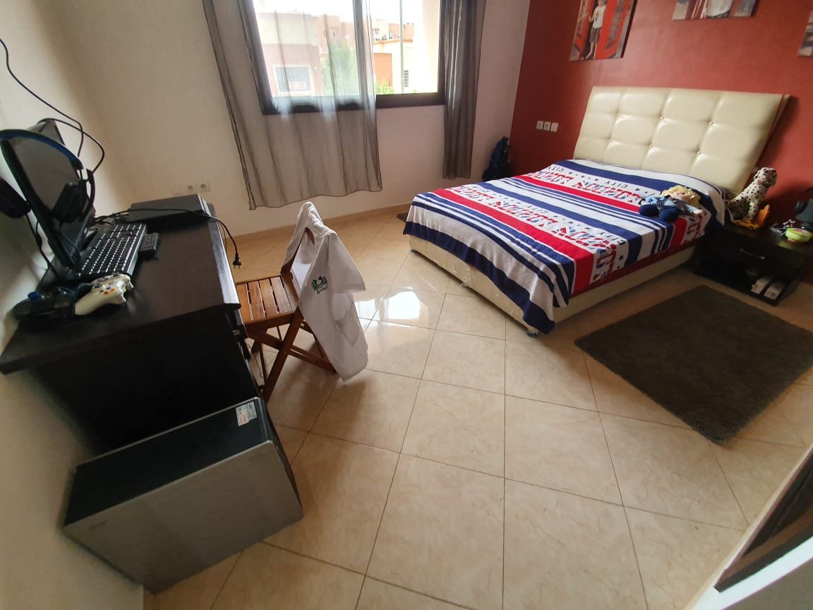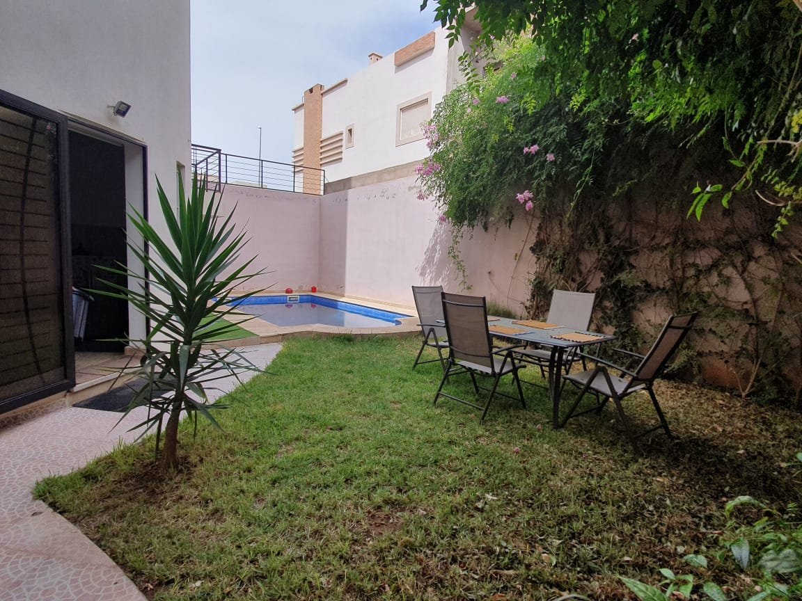 Située dans un quartier résidentiel sécurisé à Targa, cette belle villa à louer vide ou meublée, sur un terrain de 252 m² et 370 m² habitable, composée comme suit: *Au sous-sol: une grande cuisine équipée, un séjour qui pourrait servir une chambre de personnel, une SDB et un Hammam, 2 jardins à l'intérieur et autre à l'extérieur, une piscine et un local technique. * Au Rdc: il y a 2 salons dont un européen et autre marocain et un séjour qui donne sur le jardin et la piscine. *A l'étage : une chambre parentale avec dressing, SDB et une petite terrasse. 2 chambres enfants avec une salle de bain commune et une 4 ème chambre usage bureau. Loyer : 13.000 dh Loyer meublée: 15.500 dh Tél : +212 664-737991 / +212 688 156 692 .