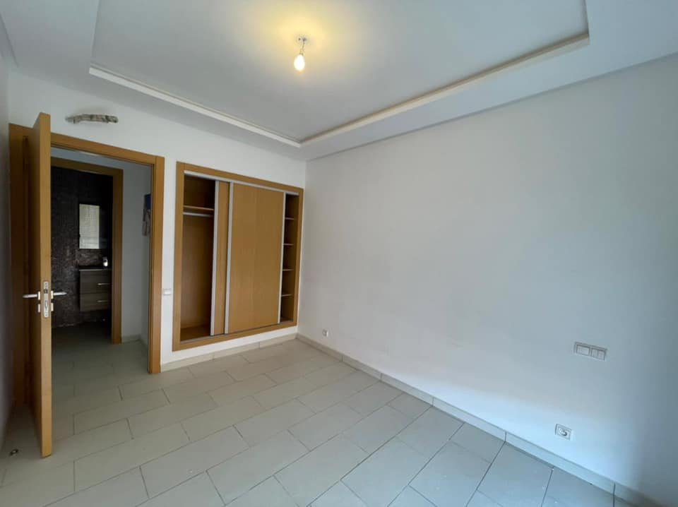 Appartement tout neuf bien fini de 2 chambres 2 SDB à la location longue durée vide ( non meublé ) situé dans une résidence de bon standing à semlalia. l'appart est composé de : - 2 chambres à coucher avec placards - 2 salles de bain - cuisine avec balcon , - salon , - 2 salles de bains , - deuxième étage , - superficie : 89 m², - jamais habité , - ascenseur , - parking sous-sol , - sécurisé , - Ensoleillé, - Secteur : Semlalia , - Ville : Marrakech ,