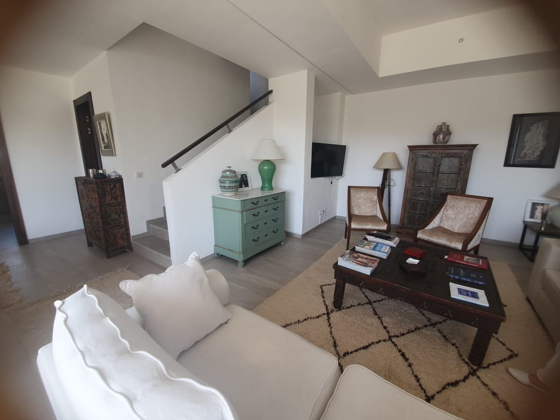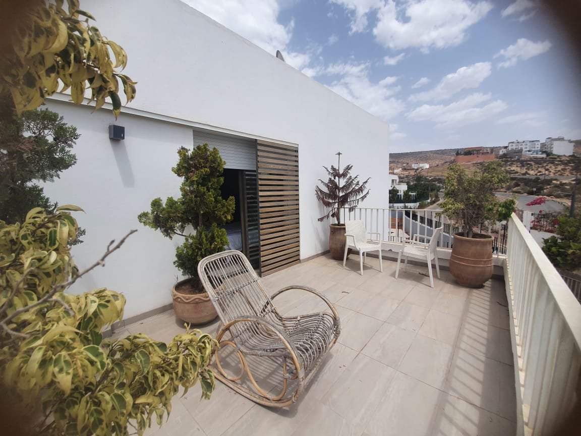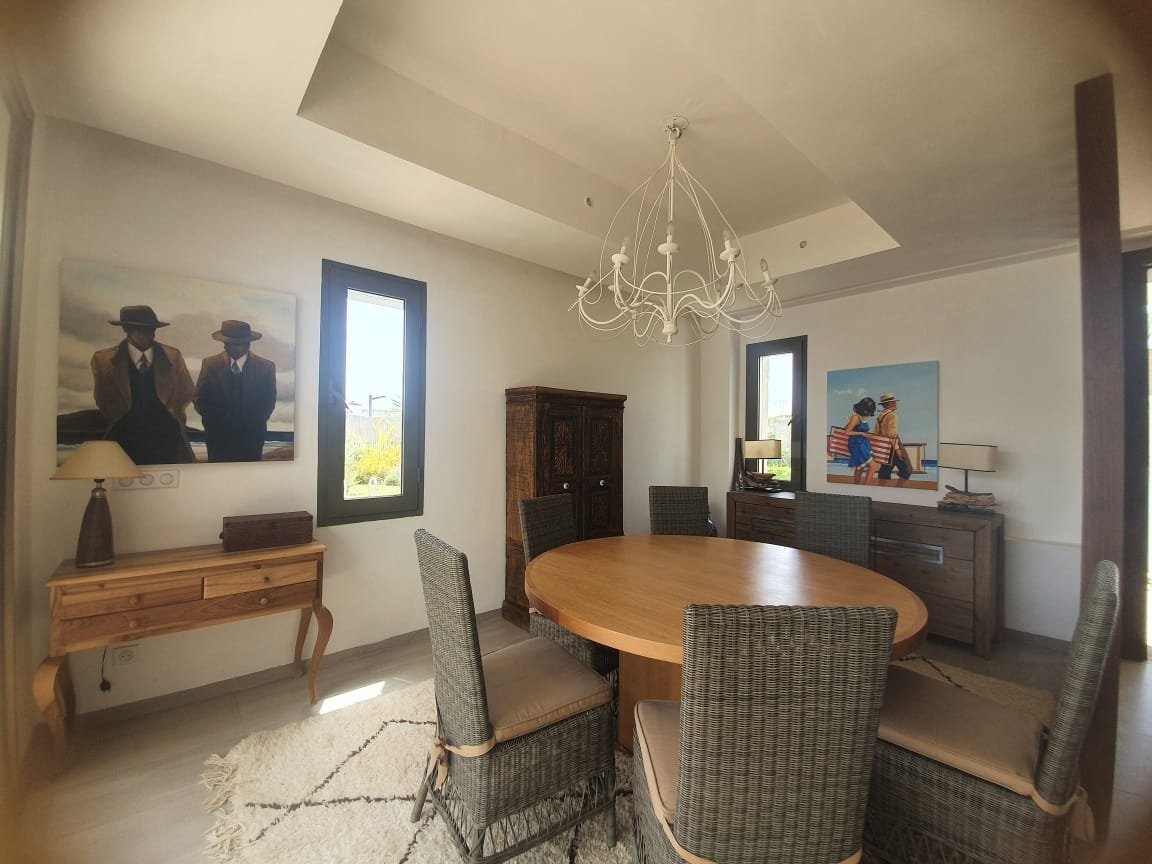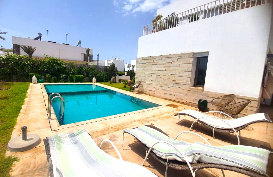 Très Jolie Villa indépendante style moderne à louer vide de 400m² de terrain, avec terrasse, beau jardin et piscine privative sans vis à vis, bien située à Taghazout Bay à 15mn du centre ville d'Agadir. La villa est composée de 3 chambres à coucher dont une parentale avec sa salle de bain , 2éme SDB commune pour les 2 chambres, toilette visiteurs, une cuisine équipée et une réserve derière la cuisine, salle à manger, double salons pour la réception, tarrasse vue sur mer. Résidence sécurisée en front de mer à Taghazout Bay avec Golf et divers esapaces verts. Loyer: 19.000 dh Hors Charges