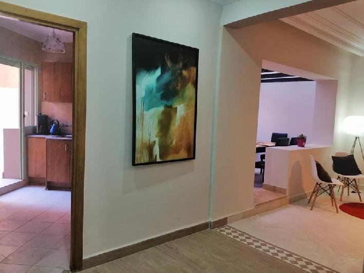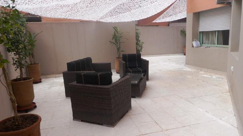 Nous Mettons pour location Longue durée un appartement meublé de 120 m² dont 70 m² est habitable composé d'un bel salon , salle à manger avec terrasse , 2 chambres , Salle de bain , Wc invités , cuisine équipée avec un accès au terrasse . l'appartement est situé au 1 er étage dans un immeuble de moyen standing sécurisé en plein cœur de gueliz a 600 m de Carre Eden et 700 m du lycée Victor Hugo . Disponible à partir de Fin de Mai Loyer: 5.500 dh Syndic inclus