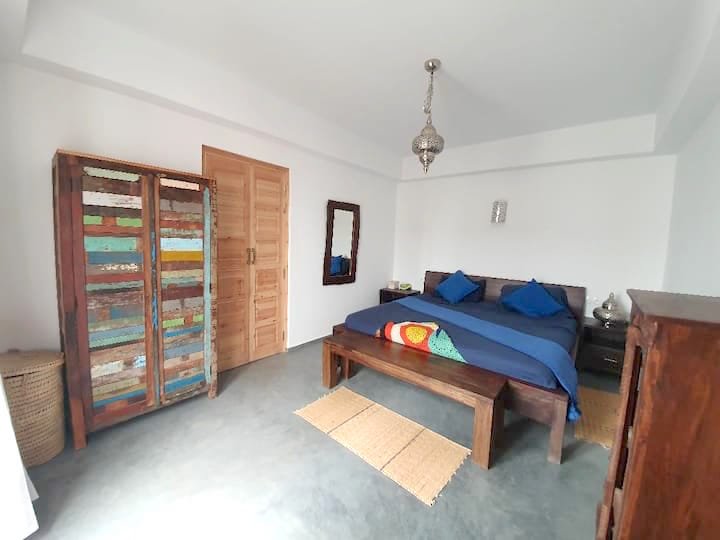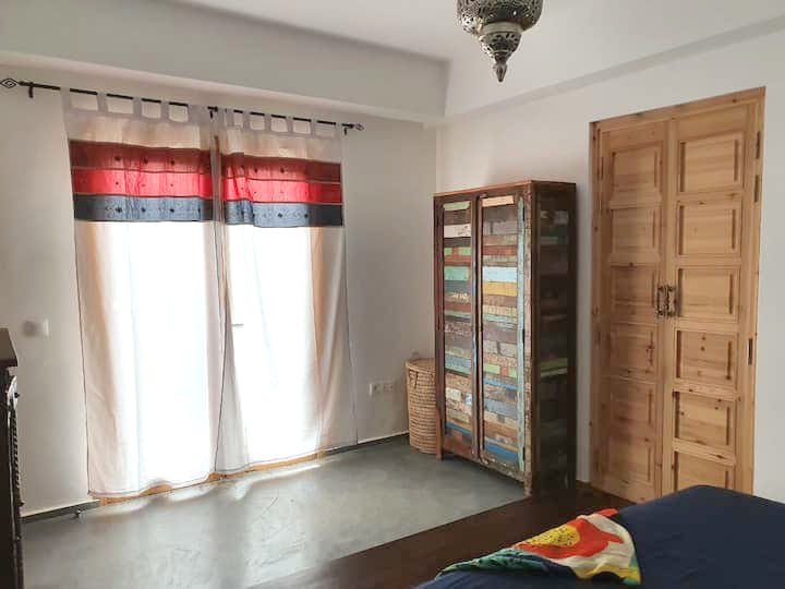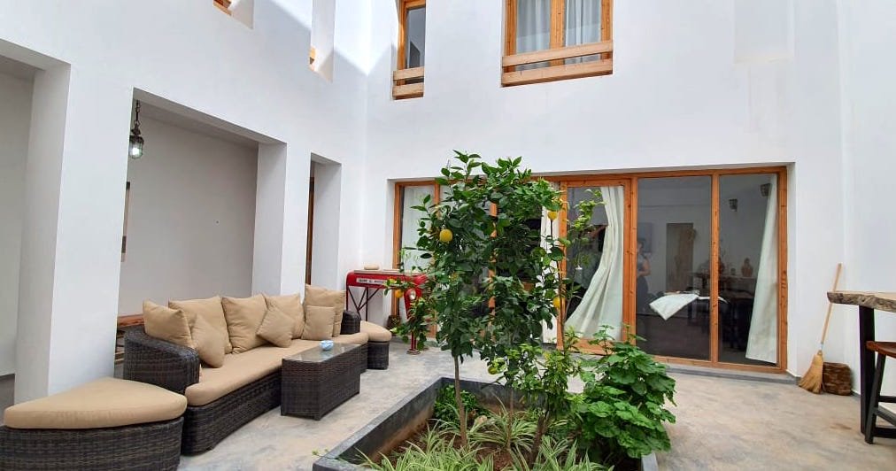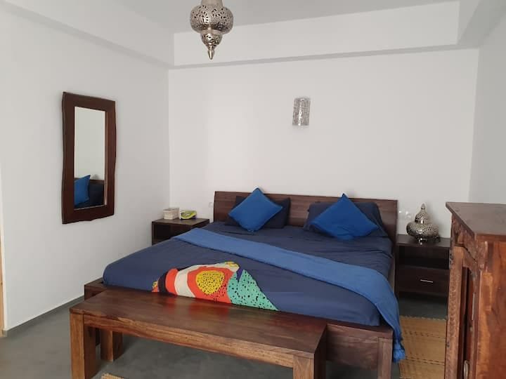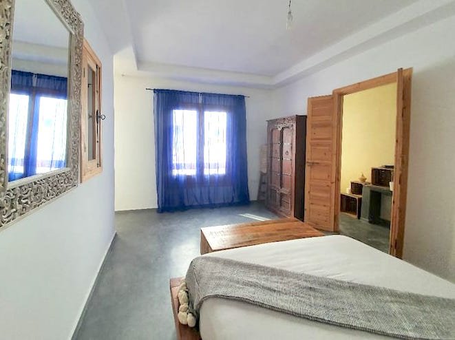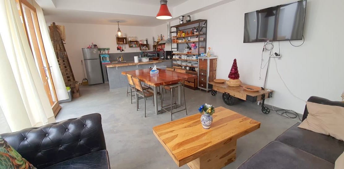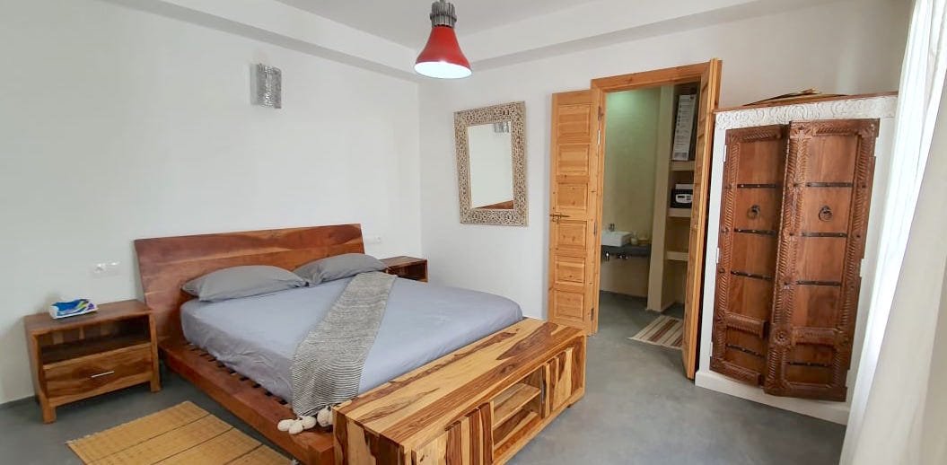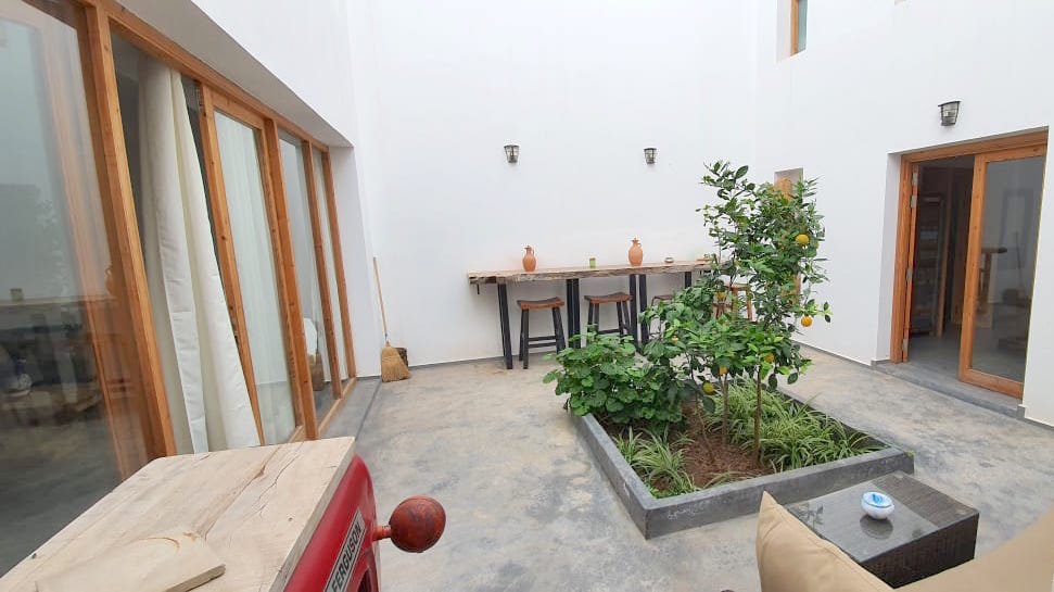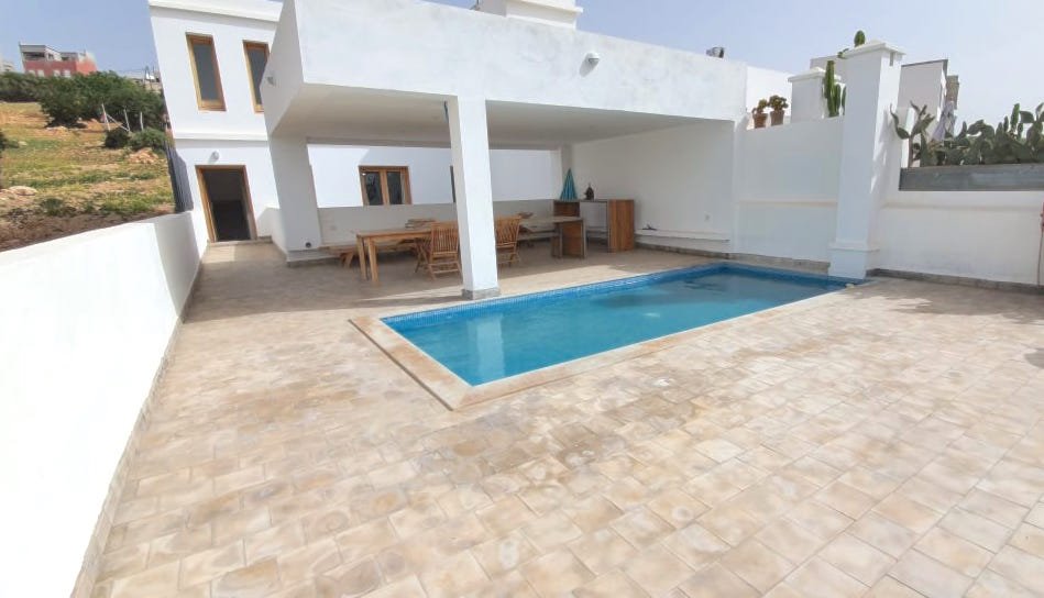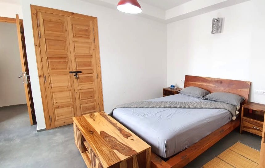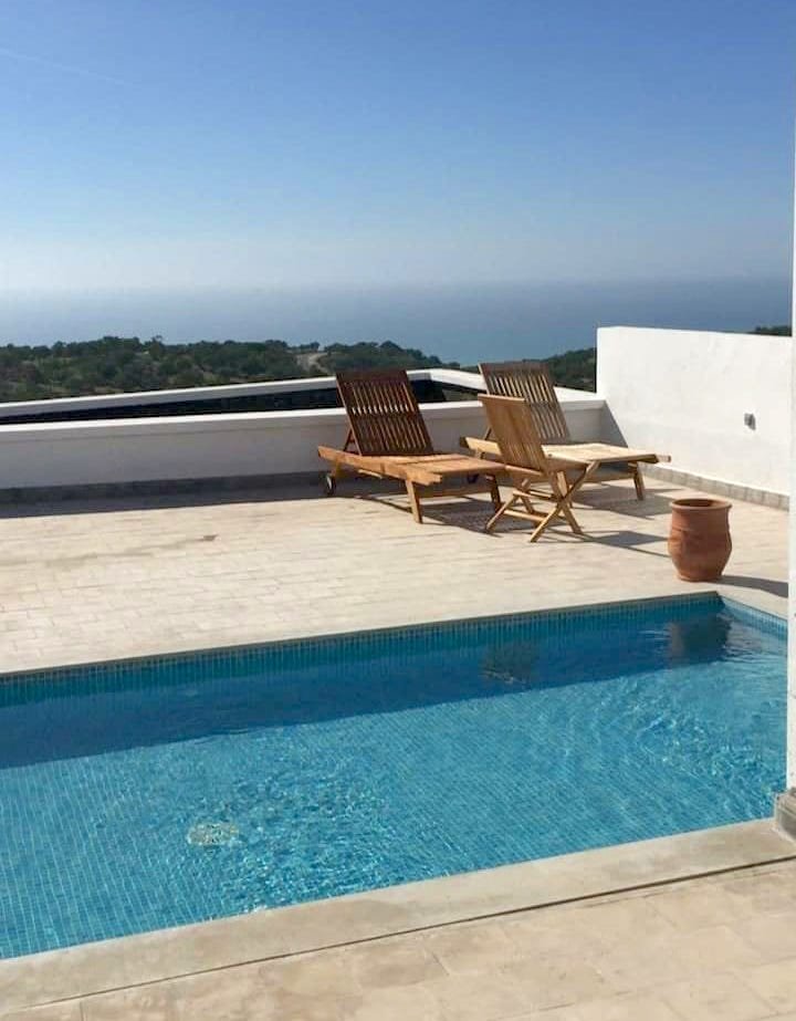 Tinass Immo vous offre le confort, la belle déco et la sérénité dans cette maison style berbère-moderne: Sur 2 niveaix plus terrasse; piscine, juste au dessus de Taghazout à 23km d'Agadir. Offrant une vue splendide sur l'océan et la montagne. La maison dispose de 3 suites (salle de douche dans chaque chambre) et possibilité d'ajouter une quatrième chambre avec sdb Elle est agencée comme suit: Au rez-de-chaussée: * une suite avec salle de douche * une toilette séparé * un patio * une pièce à vivre ouverte sur un patio Un garage pour 1 ou 2 voiture, un logement pour la gardien avec salle d'eau et Un local technique pour l'entretien de la piscine. Un salon européen avec coin télé ouvert sur une belle cuisine entièrement équipée. Au 1er étage : * 2 suites avec salles de douche Au 2ème étage: * une cuisine d'été * un toilette séparé * d'une belle terrasse avec coin repas, coin détente (transats) et petite piscine pour se rafraîchir. Au 3ème étage: * coin buanderie Aussi on trouve un garage et une chambre pour gardien avec sa salle de bain. La maison étant située dans une zone naturelle dans la montagne (à 5 minutes au dessus de Taghazout),une voiture est donc indispensable. Vous pourrez la garer juste devant la maison. Frais d'agence 1 mois de loyer : 15000 dh / mois Hors Charges. Téléphone ou WhatsApp : 0688 156 692 // 0663 218 288