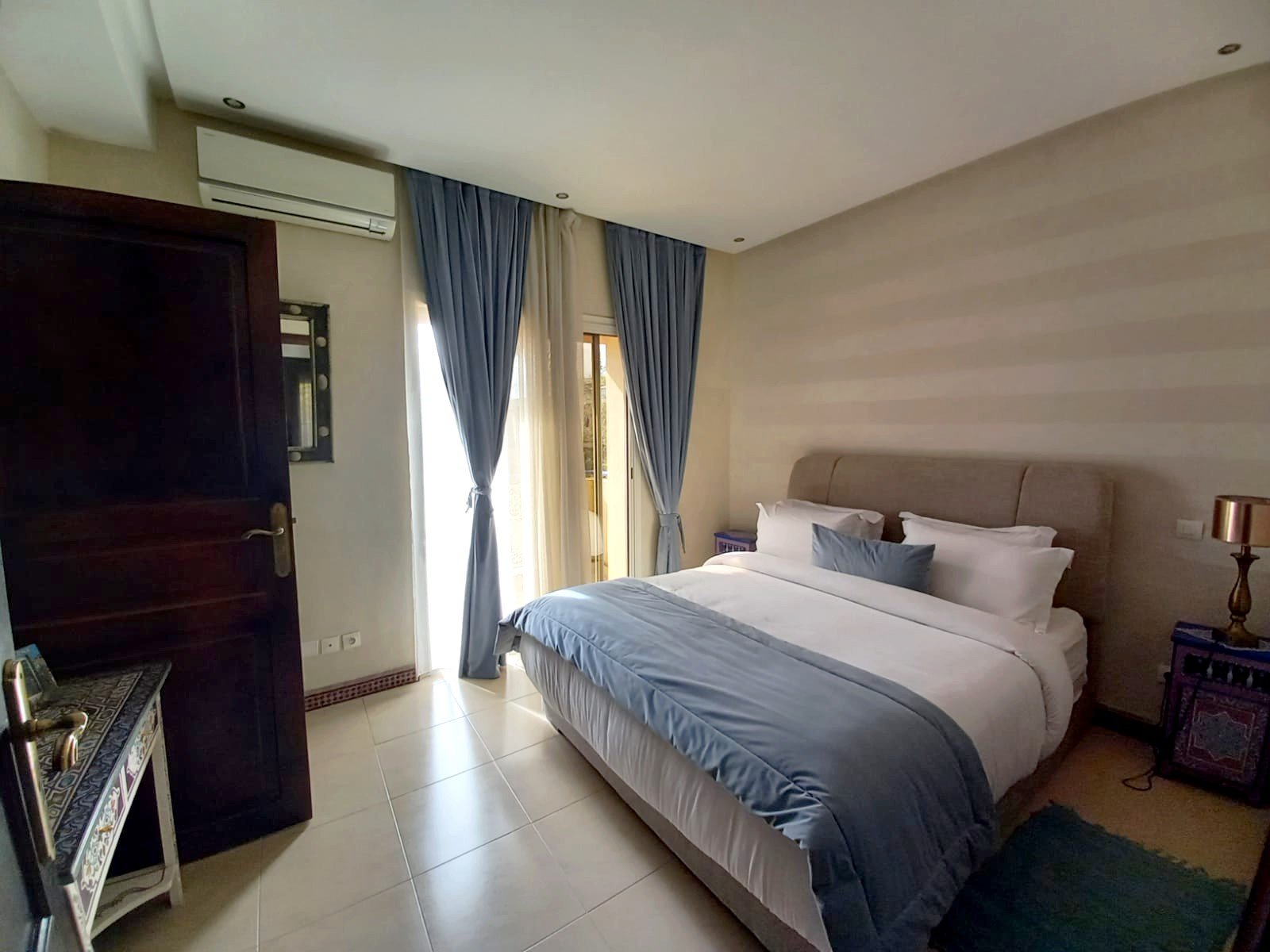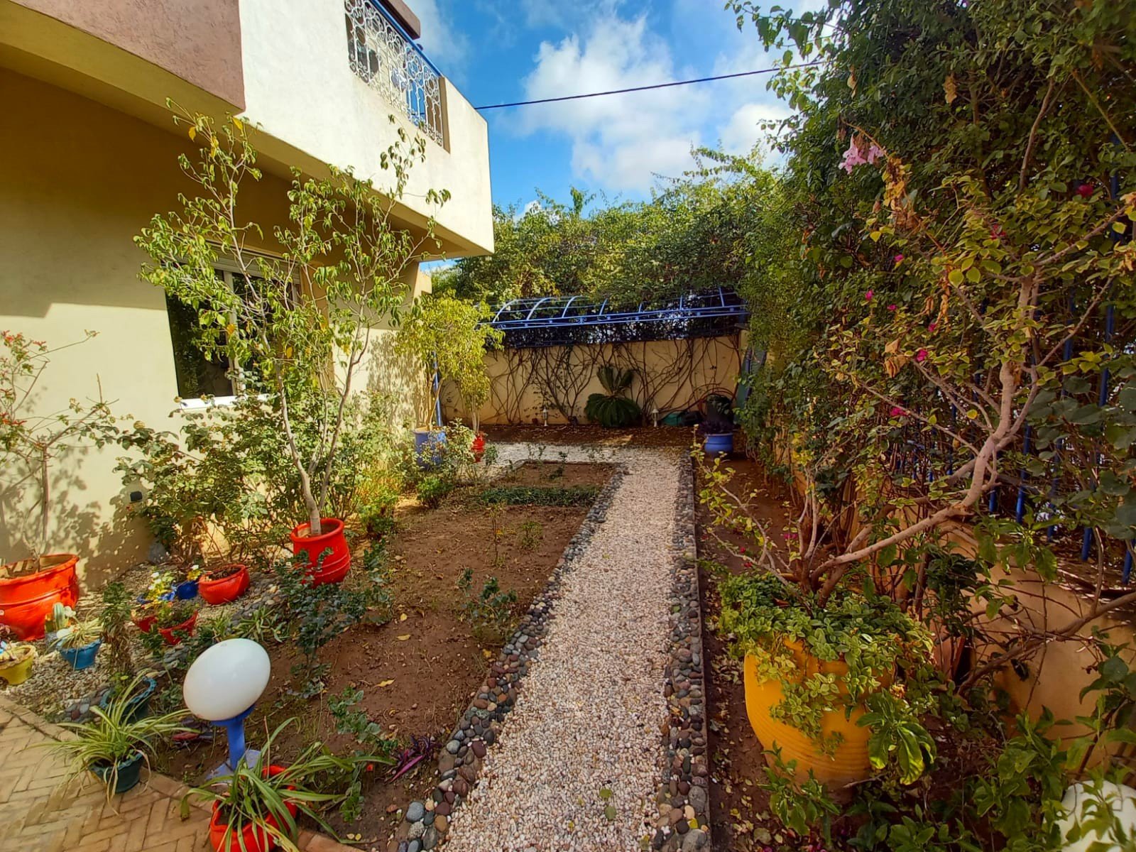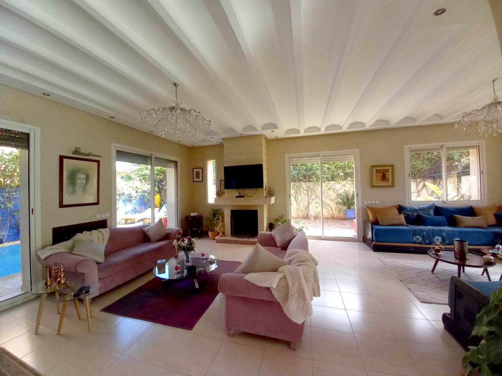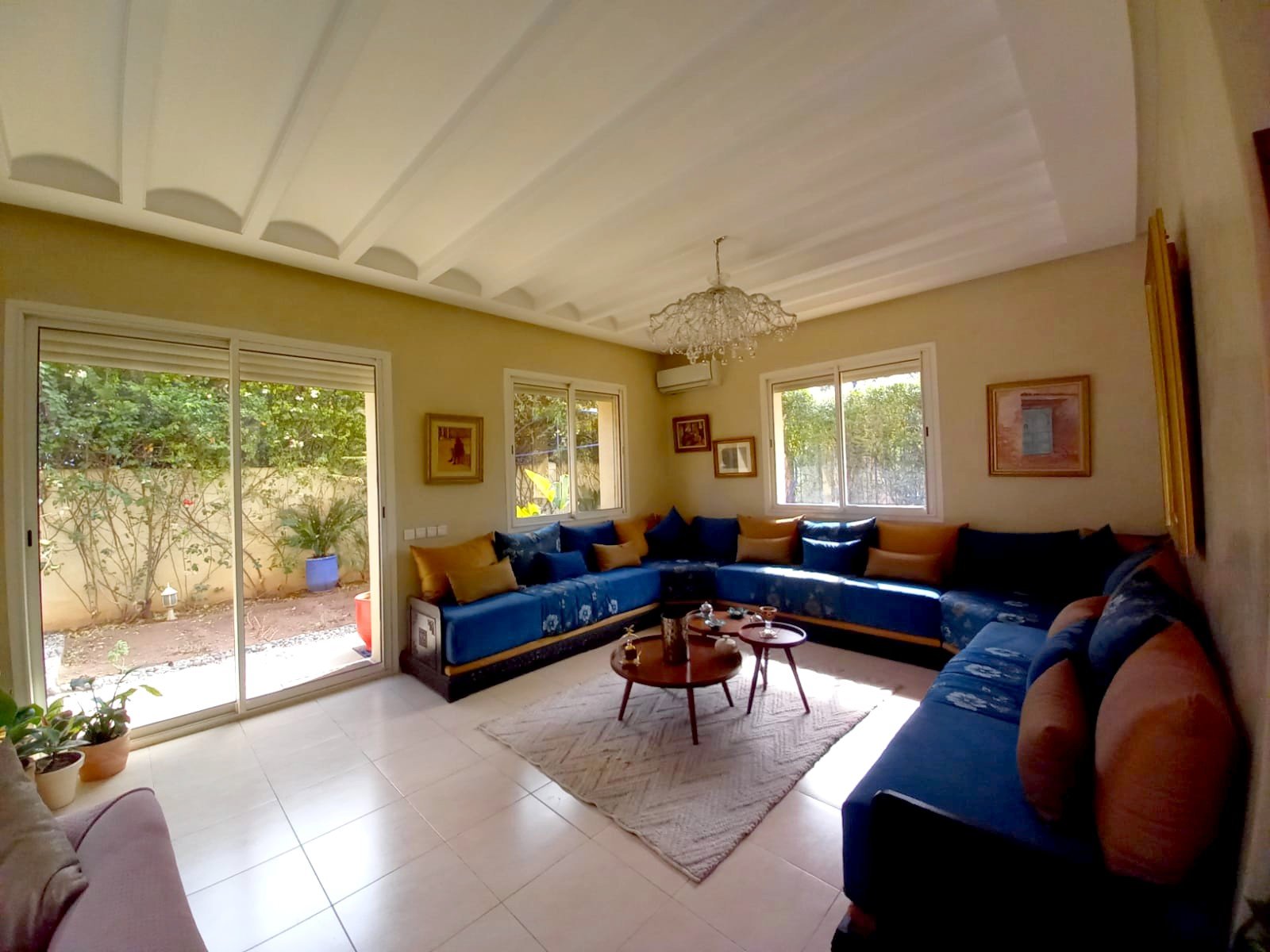 Une belle villa refaite à neuf à louer meublée avec piscine privative, bien située dans un secteur très calme et bien sécurisé à Targa pas loin de l'école des orangers. Composée au: RDC: réception 1 salon marocain moderne , 1 salon avec cheminée - une cuisine, - toilettes visiteurs, À L'étage: - 3 chambres avec salles de bain , balcon Au sous sol : 2 chambres, 1 SDB avec une douche. Beau jardin et une jolie piscine privative Chauffage central; un chauffe-eau solaire et une grande terrasse.