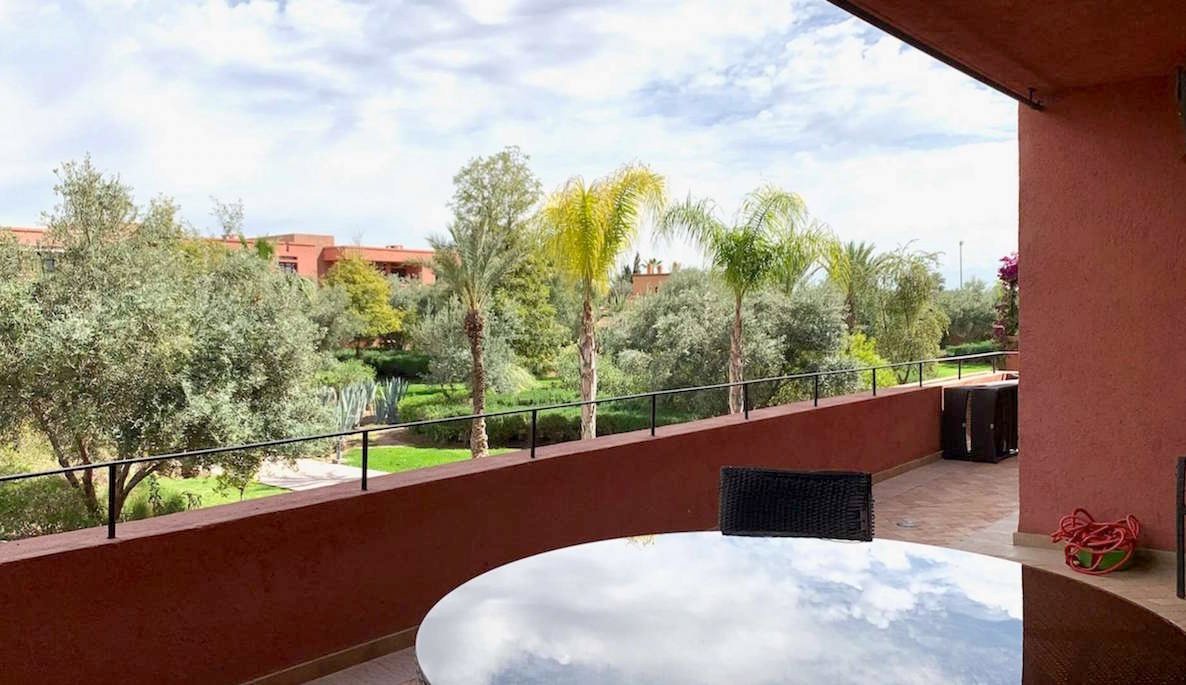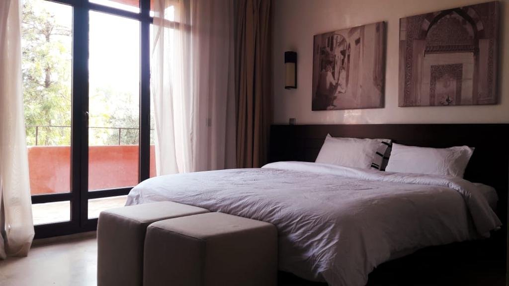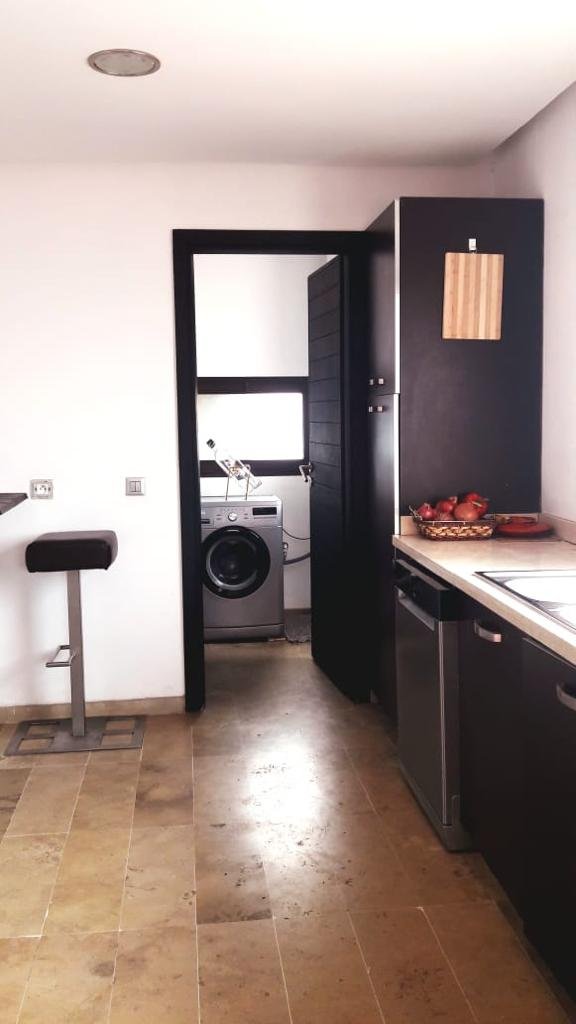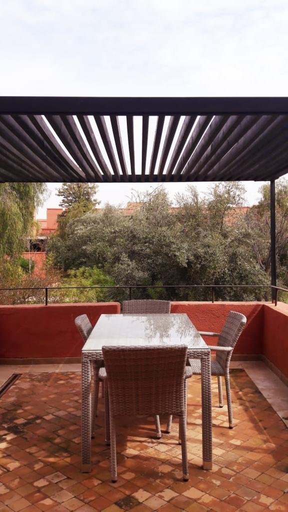 A louer en location longue durée, ce bel appartement meublé, style moderne, de 176m² dont 55m² de terrasse, composé de 2 chambres avec sa SDB (baignoire), un salon moderne, une cuisine équipée, une chambre pour la bonne avec sa sdb, l'appartement est entièrement équipé doté d'unne terrasse avec une belle vue sur les jardins et l'Atlas, situé au 1er étage dans une résidence bien entretenue, sécurisée avec beau jardin et piscine collective, des places de parking à votre disposition . Loyer : 11000 Dh/mois Hors Charges de coipropriété.
