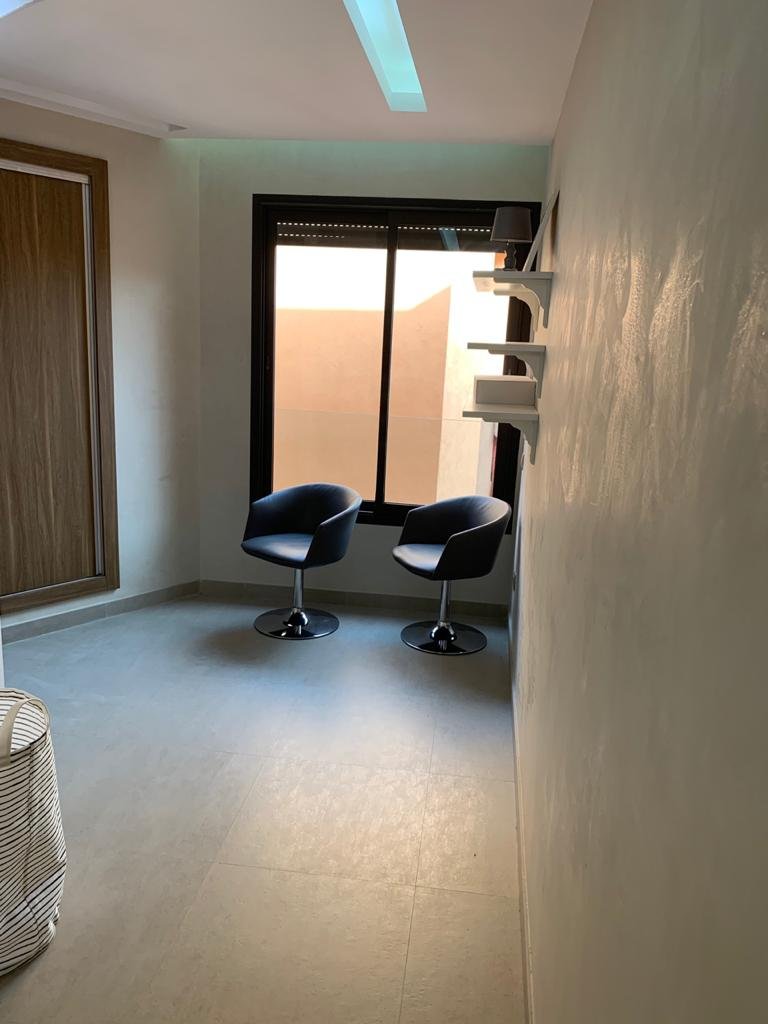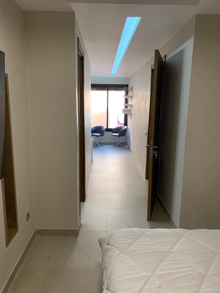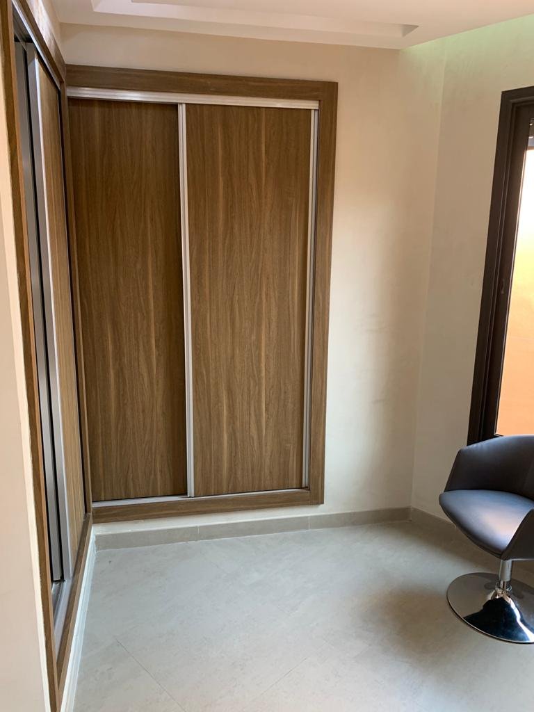 A louer en location longue durée, cet joli Appartement de 89m², situé au 5ème étage dans une residence sécurisée avec ascenseur et piscine collective, comosé de 2 chambres, dressing, un salon moderne avec balcon, un coin salle à manger, 2 salles de bain, cuisine equipée, climatisation et une place de parking au sol à votre disposition, proche de toutes commodites commerces et supermarché et à 5 min de Guéliz.