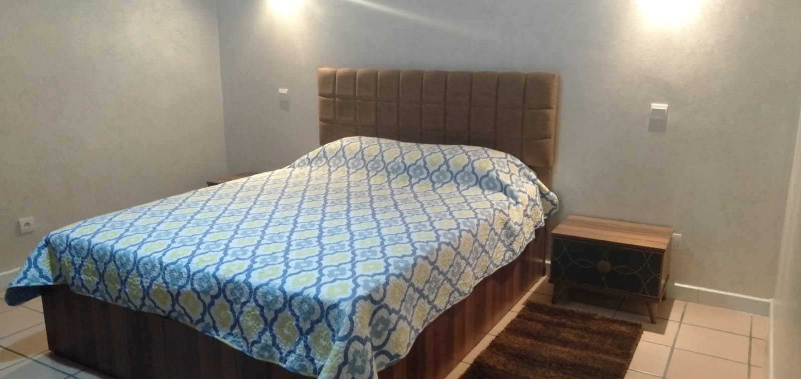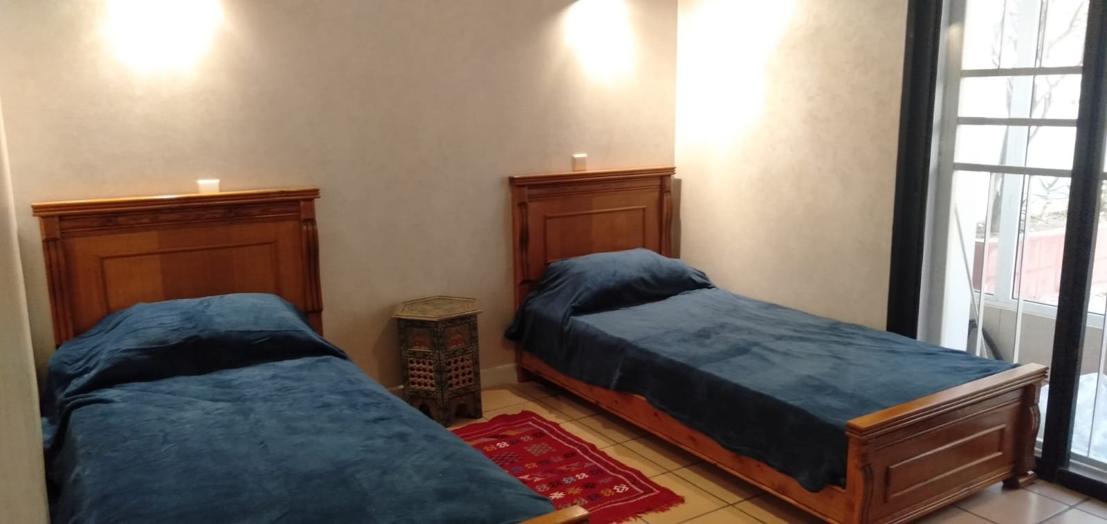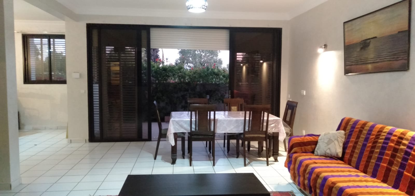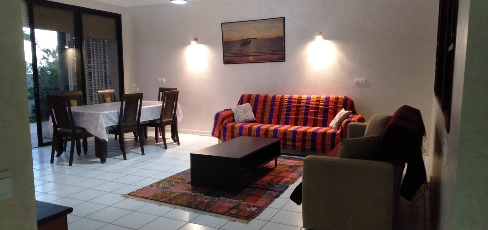 A louer en location longue durée un grand appartement familal, meublé,d'une superficie de 260m2 bien ensoleillé avec 2 façades, composé d'un double salon avec baie vitrée donnant à la terrasse et jardin, une chambre parentale avec dressing et salle de bain avec baignoire,2 chambres avec baie vitrée sur terrasse avec jardin,1 grande cuisine avec placards et placard mural, 1 pièce de rangement, une salle de bain avec baignoire, 1WC avec lavabo et 2 terrasses avec 2 jardins sur les 2 façades. Place de parking privée. L'appartement est situé au Rdc d'une résidence sécurisée 24/24, très bien située à 2 pas de la plage, à proximité du centre ville. Loyer: 9000 dh CC