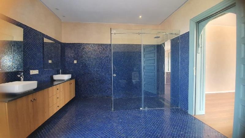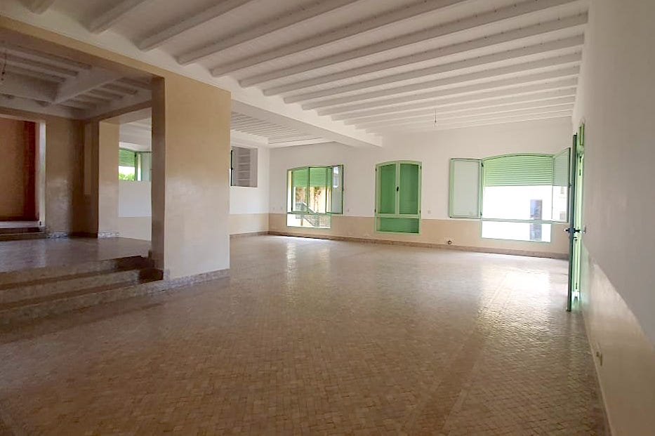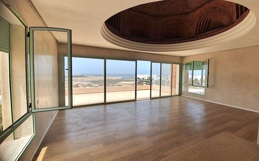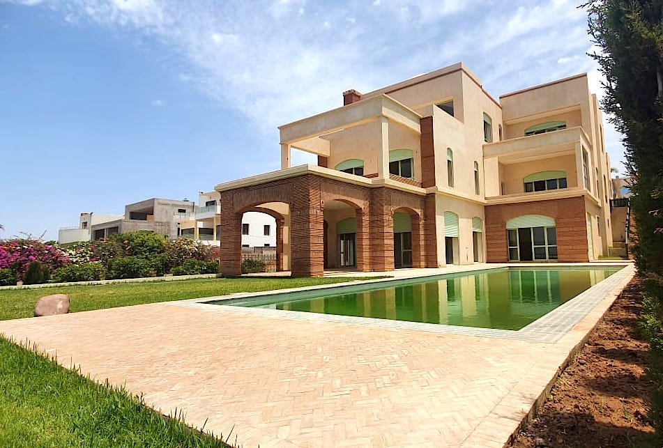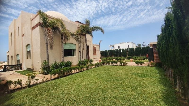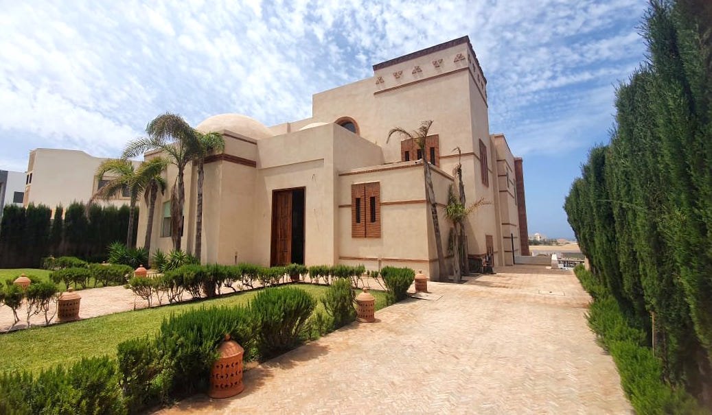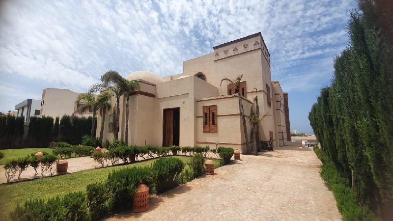À VENDRE une belle villa toute neuve idéal pour un Palais d"hôtes ou uen villa de maître de grand luxe dans la zone la plus prestigieuse d'Agadir, avec de magnifiques vues sur Mer et au milieux des hôtels de luxe. Construite avec une architecture authentique d'une superficie terrain de 1500m², sur 4 niveaux avec 2 façades(une donnant sur mer et l'autre sur le boulevard), bien exposée EST -OUEST , composée comme suit : * RDC 1: Salle à manger; un grand salon, 2 Qubas, Terrace, 2 chambres avec dressing et SDB . * REZ DE JARDIN : 2 chambres avec dressing et SDB , Touillettes visiteurs; TG cuisine avec une chambre pour machines et stockage, salon avec cheminé et une terrasse, Grande jardin avec piscine et terrasse; et une possibilité d'ouvrir une porte vers la mer . * 1 er Etage: Chambre Master (une suite ,SDB avec Jacuzzi ), et deuxième chambre avec dressing et SDB et terrasse . * Sous Sol: Salle de sport non équipée, Hammam semi fini, salle des personnels avec une cuisine et SDB, 2 salles de techniques (réservoir d'eau, installation électrique) .