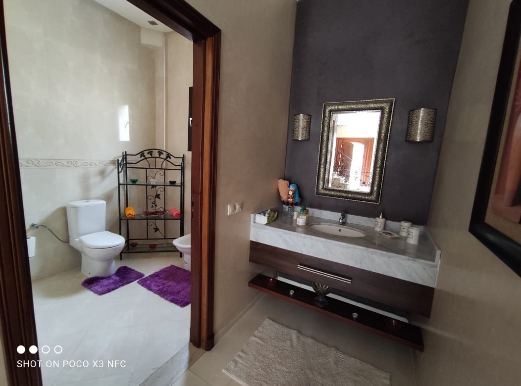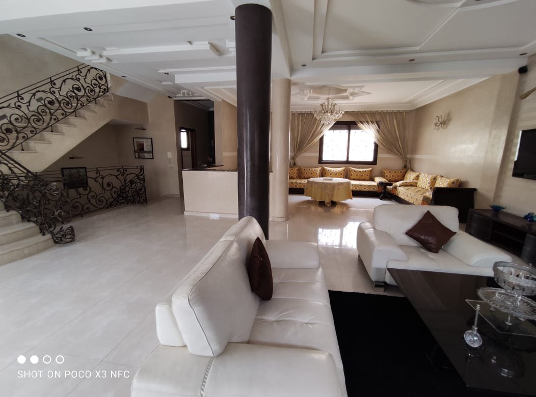Tinass Immo vous offre une belle villa en vente à ne pas râter avec des touches mélangées entre artisanat et moderne d'une sup de 201 m² dans un quartier calme et sécurisé à TILLILA AGADIR. Elle est composé de 3 niveaux. *** la cave : il y a une cuisine moderne bien équipée, un grand salon traditionnel,un séjour, un coin salle à manger et une toilette pour invités et une cour anglaise de 50 m² avec barbecue et un autre coin salle à manger *** le Rdc : il y a une entrée spacieuse qui donne sur un grand salon réparti entre salon traditionnel et un salon moderne avec cheminée, une toilette pour invités et 2 escaliers en fer forgé bien fini, l'un donne accès à la cave et l'autre *** Au 1er étage : il y a une chambre parentale avec salle de bain et dressing, 2 chambres avec un balcon commun, une salle de bain. à l'entrée de la villa il y a un garage pour une seule voiture et une petit terrasse. Elle est proche de toutes les commodités..