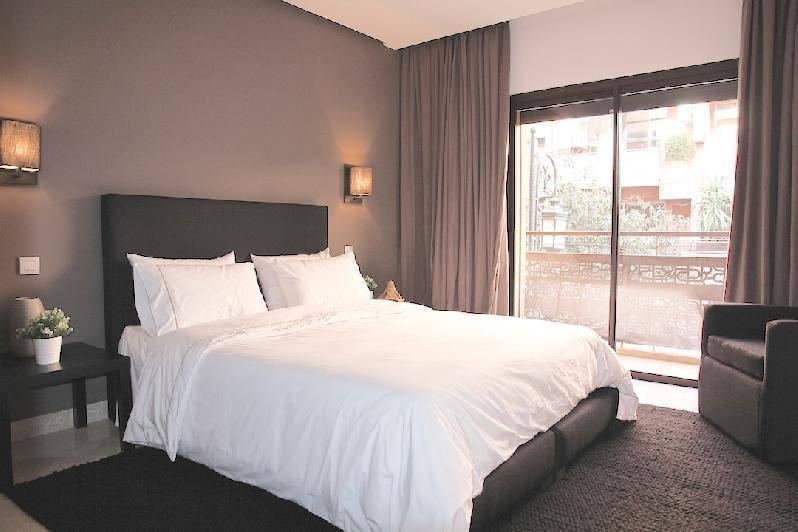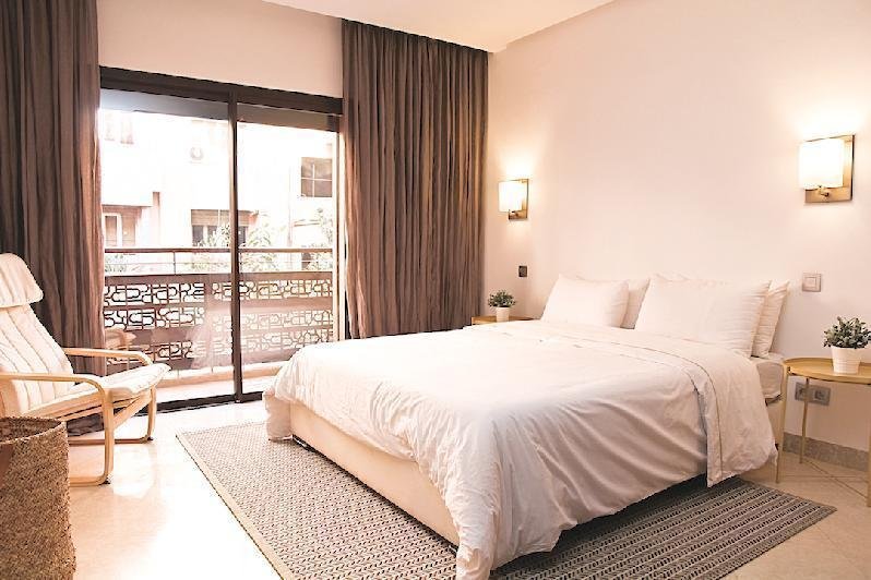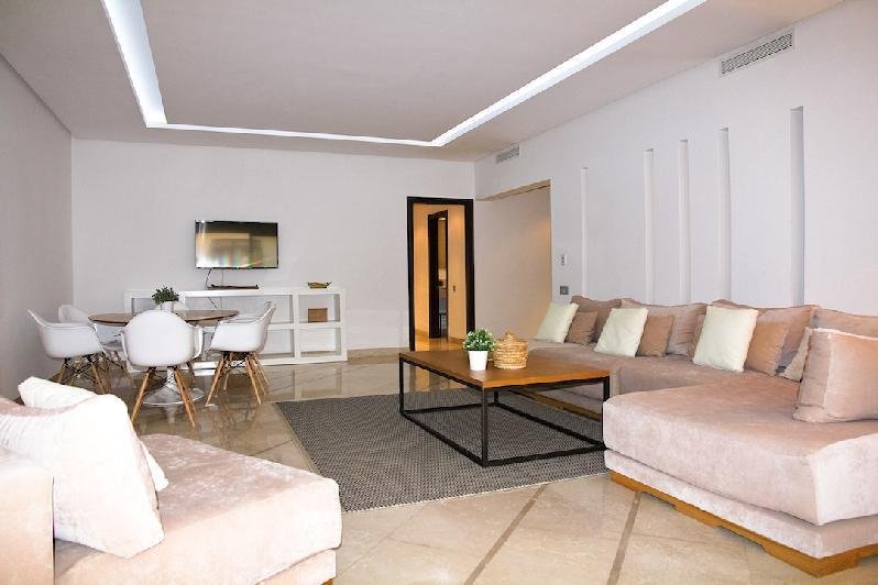 En plein coeur de Guéliz, et dans la belle résidence du Carré Eden, se trouve ce magnifique appartement traversant, joliment meublé d'une surface de 167m2 terrasse incluse Il comprend: un séjour ouvert sur une grande terrasse sans vis à vis, une cuisine équipée avec coin salle à manger, deux chambres dont une suite parentale avec salle de bains et dressing et une salle d'eau avec toilettes. Le tout dans une résidence sécurisée 24h/24, complété par une place de parking en sous-sol. Proche de toutes les commodités