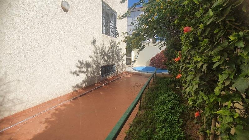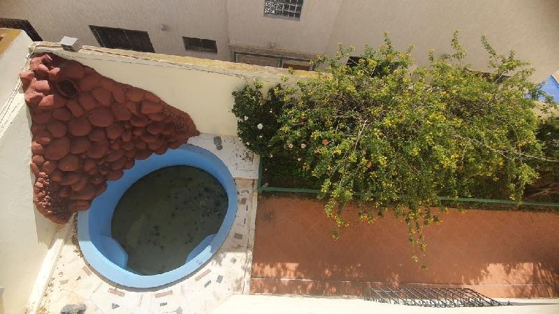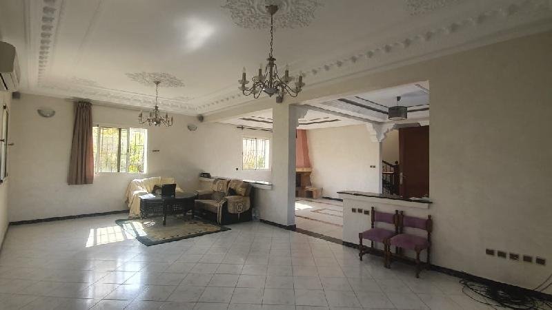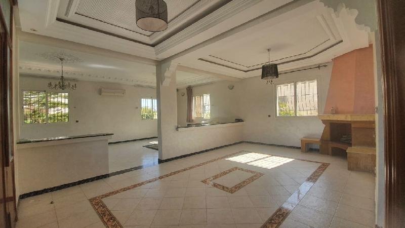 Très jolie villa à louer vide sur 3 niveaux, d'une superficie habitable de 300m², située au beau quartier Founty- Sonaba, à qq. pas de la plage d'Agadir, La villa est composée d'un sous-sol, Rdc et étage: *Sous-sol: contient d'une chambre pour le personnel avec 1 sdb et douche, un débarras, séjour, un grand salon et une grande cuisine avec accès au jardin; *Rdc: composé de double salon avec un coin cheminée, lumineux et bien exposé, un 2ème salon plus une chambre qui donne sur une petite terrasse et 1 sdb; *A l'étage: composé d'un hall de réception, de 2 chambres 1 sdb commune, placards et une terrasse privative plus une grande chambre parentale avec une grande sdb jaccuzi, grand dressing et une terrasse vue sur jardin et mer ; Plus une place de garage avec une porte automatique pour 2 à 3 voitures, une petite piscine de forme ronde avec cascades et un local technique, quartier calme, sécurisé, avec un parc jardin sympa, proche de toutes les commodités: Écoles, Marjane, restaurants, cafés, salles de sports...
