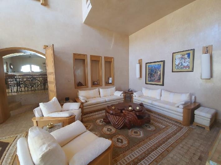 Tinass Immo votre agence immobilière , vous invite à succomber certainement au charme de cette Prestigieuse Villa en Vente sur 980 m² au prestigieux quartier ILLIGH à Agadir . La propriété combine beauté, luxe, authentique marocain et le contemporain, dans une atmosphère intime offrant ainsi une belle pièce de vie qui s´aligne avec du mobilier haut de gamme très élégant, sobre et épuré, 2 salons avec coin cheminée, une salle à manger, cuisine fonctionnelle tout équipée, 4 luxueuses Suites et Coin bibliothèque à l’étage , 1 suite en Rez-de-chaussée . La Villa Architecte dispose d'un local technique, chambre personnel, Jardin, piscine privée, plusieurs terrasses avec des superbes vues ........ Pour Plus d'informations : 0688 156 692 ou 0688 156 682 Prix: 1.100.000 euros (11.500.000 DH)
