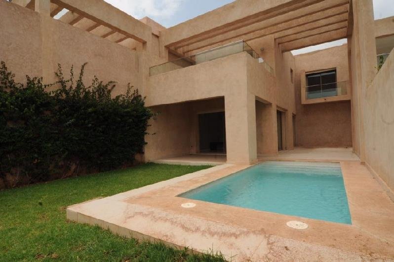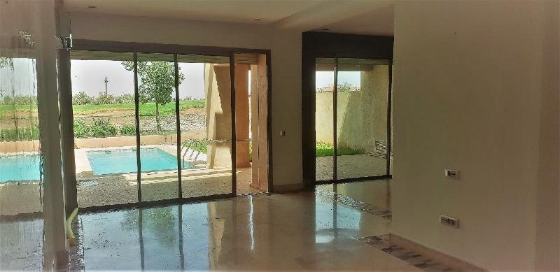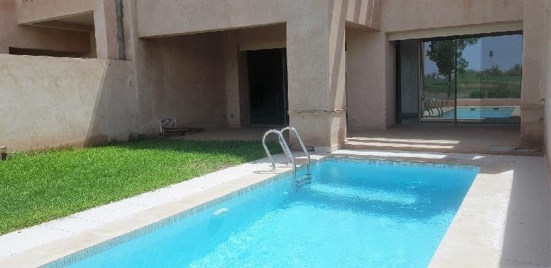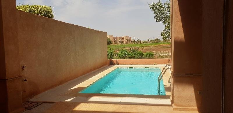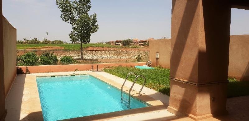 Belle villa à louer vide, de style contemporain, située dans une résidence golfique et sécurisée . Villa qui se compose d'un très beau jardin avec sa piscine privative et son salon extérieur qui donne sur le golf. Au rez-de-chaussée vous avez un coin salon marocain, un grand salon européen avec une cheminée, cuisine équipée . à l'étage: deux belles chambres, une salle de bain, une suite parentale avec sa salle de bain et belle terrasse donnant vue sur les beaux espaces verts et la piscine . Disponible à partir du 31 Juillet 2021