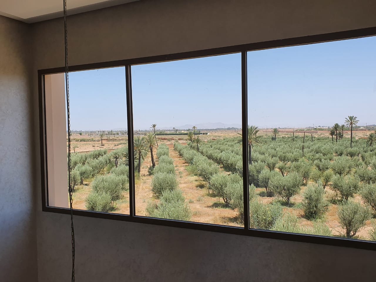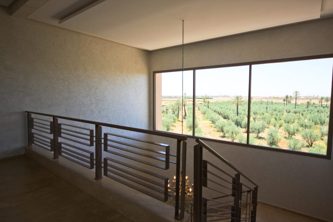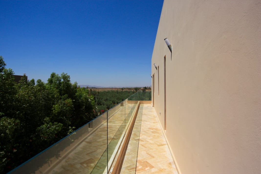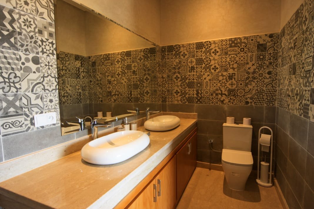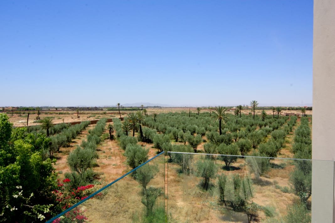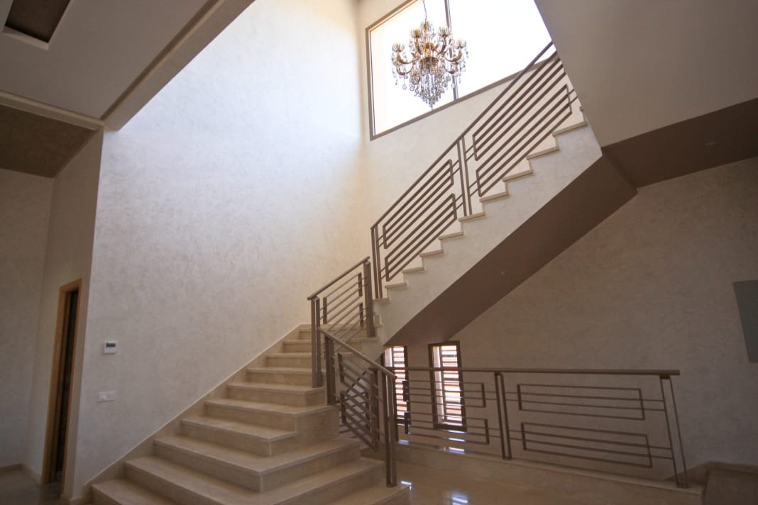 Villa située à proximité de 3 golfs: AMELKIS, du golf Royal et du golf MAADEN avec vues sur les montagnes de L'atlas, et les oliveraies autour, à environ 9 km du centre ville de Marrakech, sur un terrain de 1029 m² avec une surface HABITABLE de 700 m². Cette belle villa est composée : au rez-de-chaussée d'un double salon dont un avec cheminée , séjour, salle à manger, cuisine, salle d'eau, terrasse et d'une chambre avec SDB donnant sur le jardin. A l'étage 5 suites dont une avec une grande terrasse toutes avec sdb. Au sous- sol : une cour anglaise, chambre suite avec sdb , une chambre pour le personnel , une salle de sport, une salle d'eau et un Hammam chauffé au gaz (chaudière) avec espace de relaxation. Au jardin vous profitez d'une grande piscine( 5mx12m) . PRESTATIONS DE QUALITÉ SUPÉRIEURE: Étanchéité : protection chaleur et froid A base de matériaux liège : finition marbre Menuiserie bois massif cèdre de L'atlas menuiserie aluminium importée Climatisation gainable.