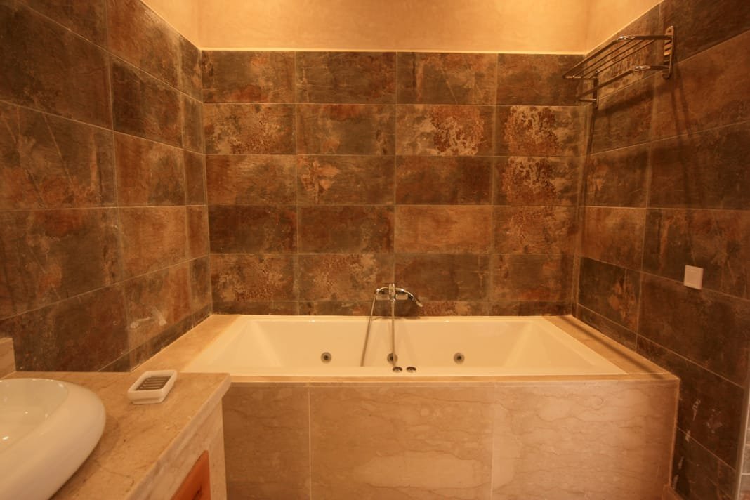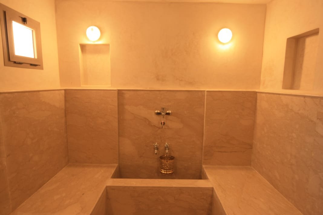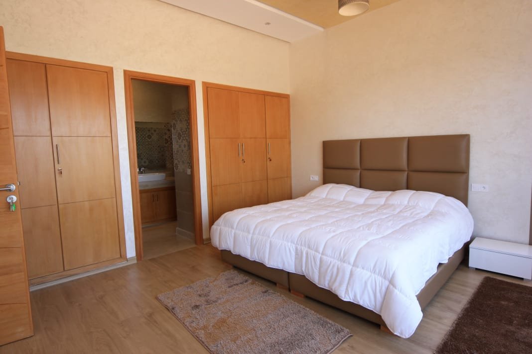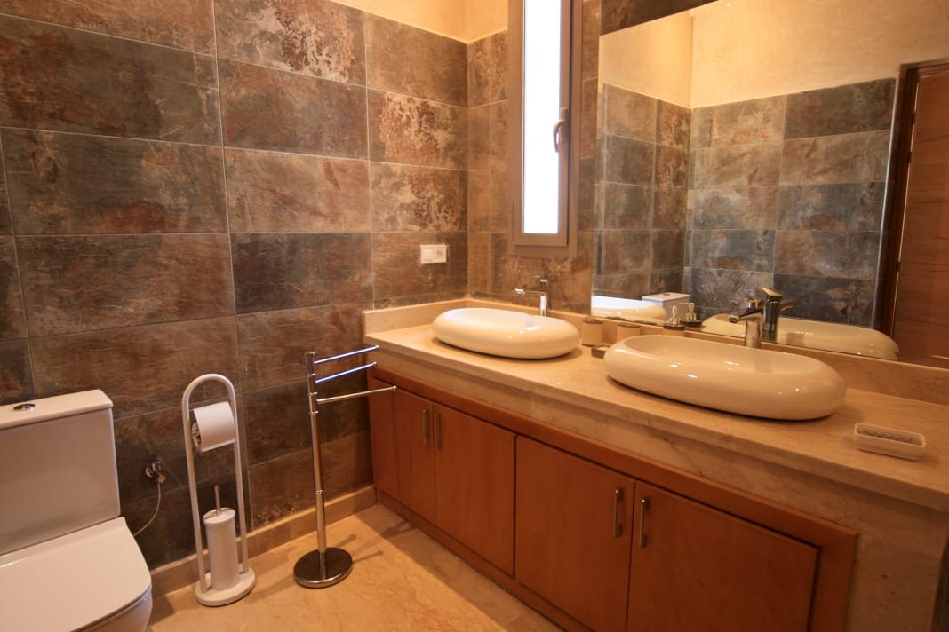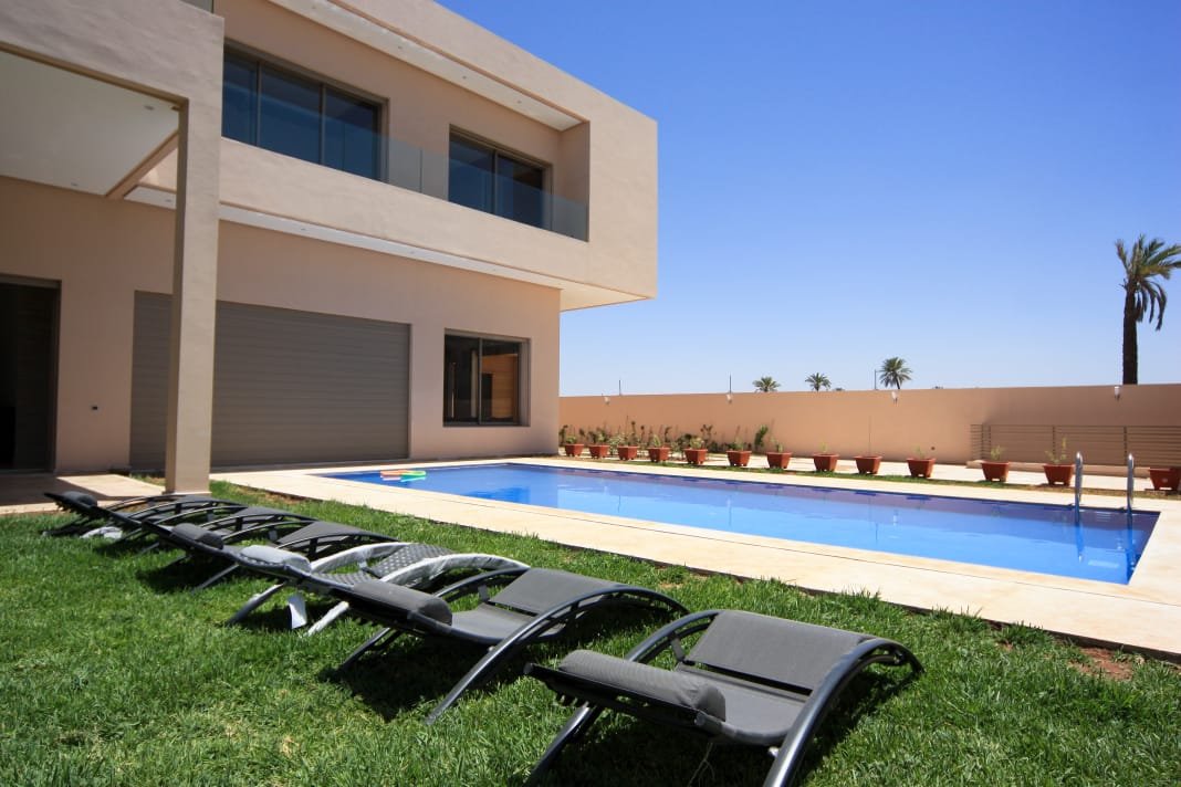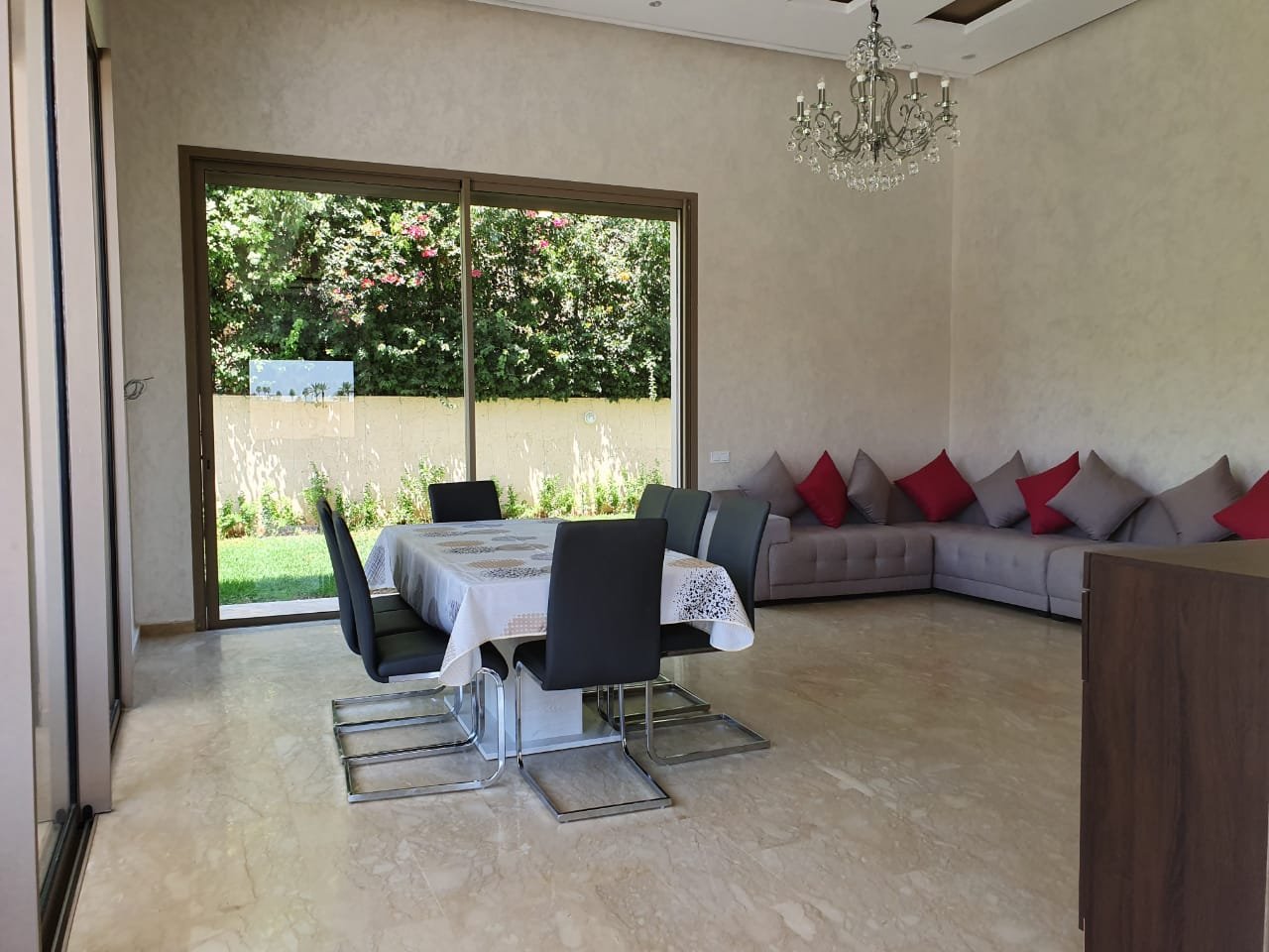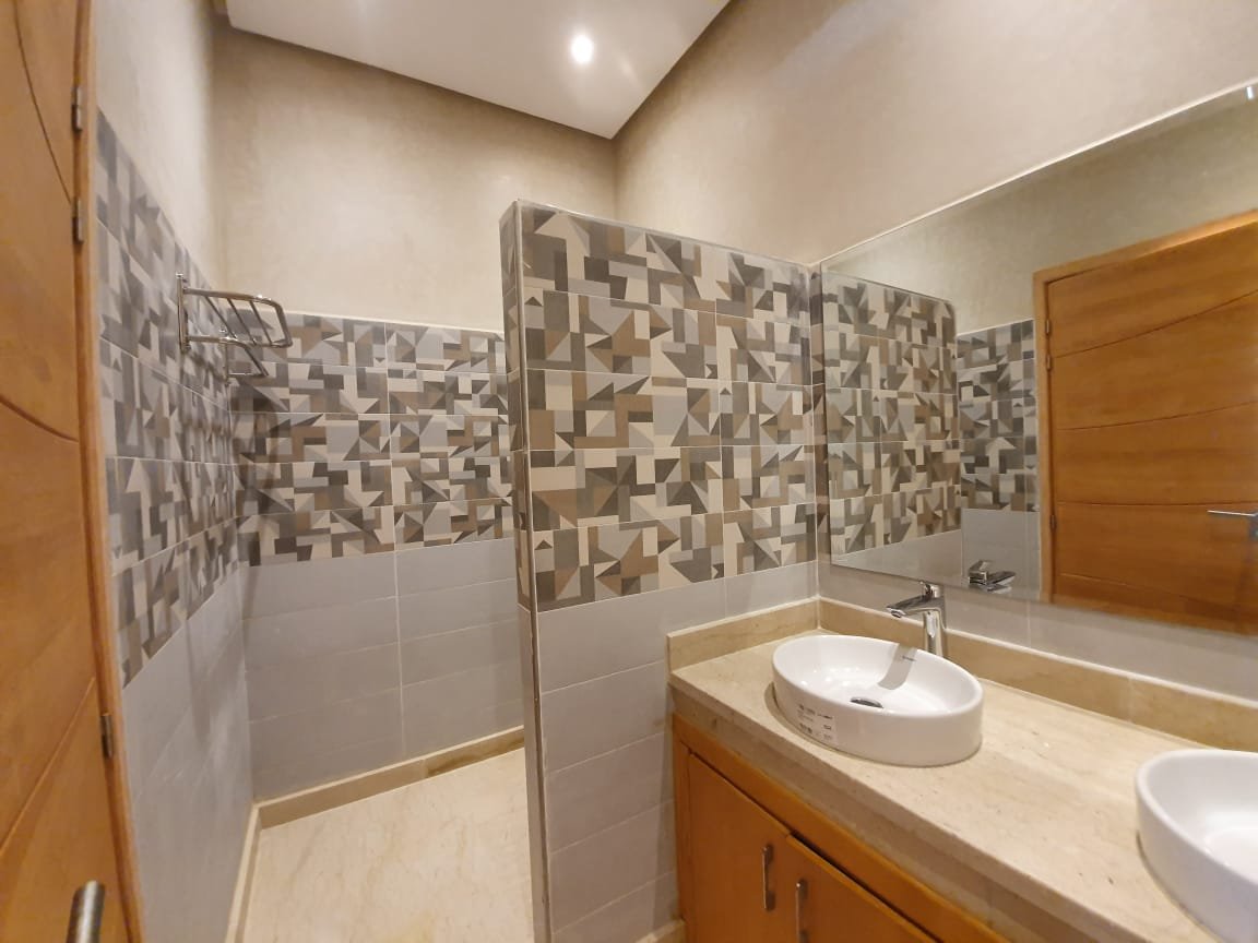 Villa située à proximité de 3 golfs: AMELKIS, du golf Royal et du golf MAADEN avec vues sur les montagnes de L'atlas, et les oliveraies autour, à environ 9 km du centre ville de Marrakech, sur un terrain de 1029 m² avec une surface HABITABLE de 700 m². Cette belle villa est composée : au rez-de-chaussée d'un double salon dont un avec cheminée , séjour, salle à manger, cuisine, salle d'eau, terrasse et d'une chambre avec SDB donnant sur le jardin. A l'étage 5 suites dont une avec une grande terrasse toutes avec sdb. Au sous- sol : une cour anglaise, chambre suite avec sdb , une chambre pour le personnel , une salle de sport, une salle d'eau et un Hammam chauffé au gaz (chaudière) avec espace de relaxation. Au jardin vous profitez d'une grande piscine( 5mx12m) . PRESTATIONS DE QUALITÉ SUPÉRIEURE: Étanchéité : protection chaleur et froid A base de matériaux liège : finition marbre Menuiserie bois massif cèdre de L'atlas menuiserie aluminium importée Climatisation gainable.