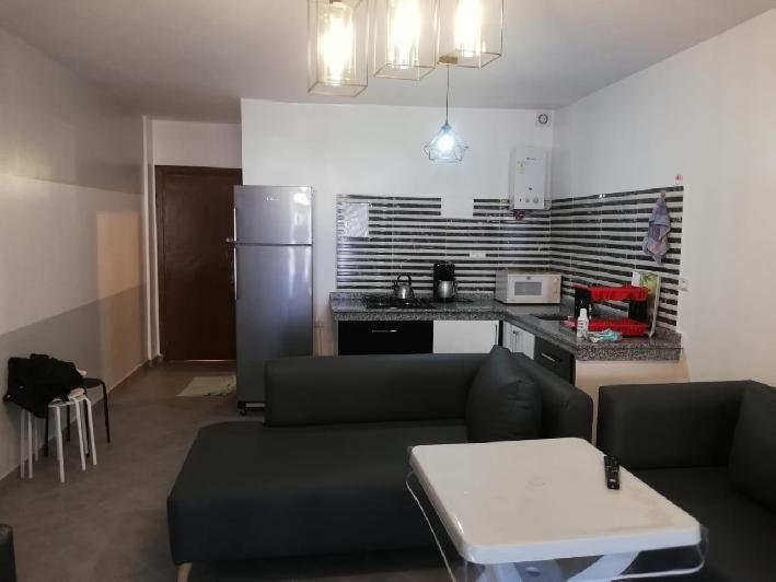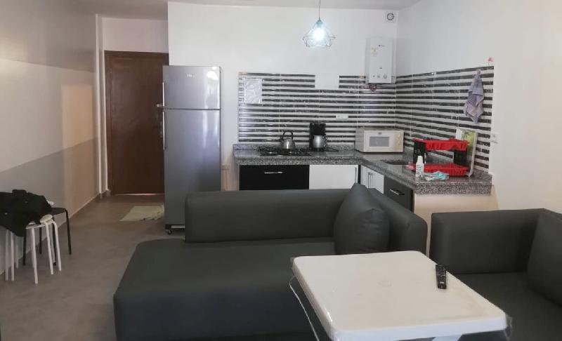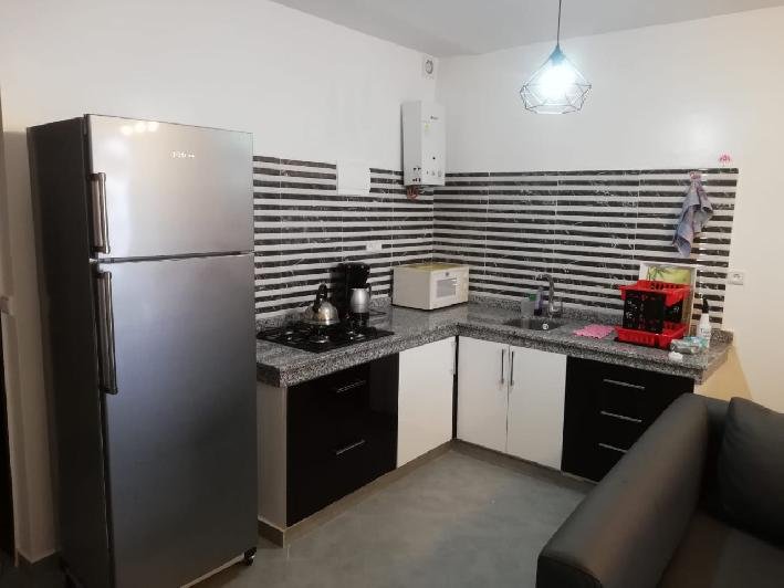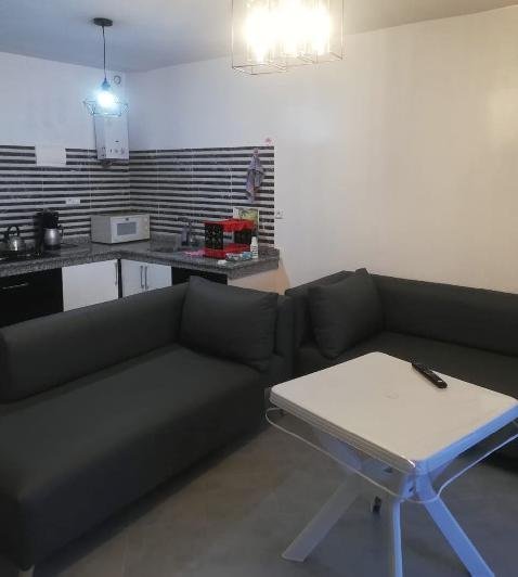 A louer un bel petit appartement meublé avec petite terrasse d'une sup de 45 m² dans une résidence calme et sécurisée avec garage et jardin collectif à IMMI OUADDAR à 27Km d'Agadir. En Rez-de -jardin, Il est composé de 1 chambre avec garde de robe intégré et qui donne accès à une petite terrasse, un salon meublé de fauteuil moderne ouvert sur une cuisine équipée et 1 sdb. Plages à 2 pas de l'appartement. Commerces, restaurants, marché aux poissons à proximité immédiate. Loyer ; 4900 DH (Hors Charges)