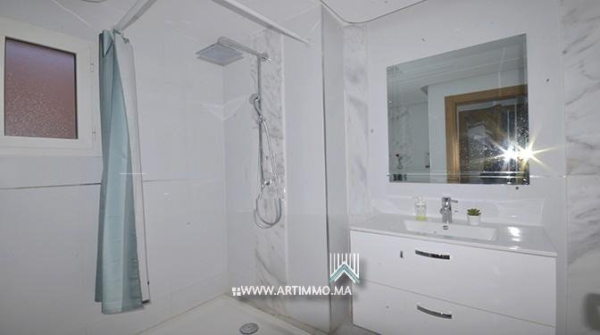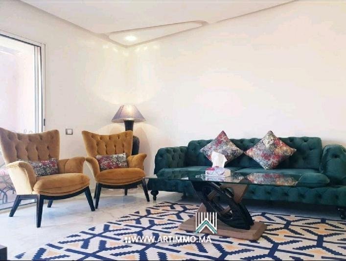 Situé sur l'avenue Mohamed VI, à Qq pas de centre commercial AL MAZAR, un bel Appartement bien meublé en location longue durée dans une résidence sécurisée avec des beaux espaces verts et piscines à Agdal - Marrakech . L'appartement est composé d'un joli salon pour la reception , suite parentale avec salle de bain et terrasse donnant vue sur la piscine, deuxième chambre avec 2 lits séparés , deuxième salle de bain, cuisine équipée (avec plaques, four, frigo, machine à café vaisselle nécessaire ) et une buanderie . - Possibilité de louer l'appartement moyenne durée ( 6 mois ) . Disponible à partir du 01 Septembre 2021 Loyer: 8.500 dh HORS CHARGES Commission : 1 mois de loyer Tél : +212 664-737991 / +212 688 156 692 . Découvrez tous nos biens sur notre propre site : www.artimmo.ma