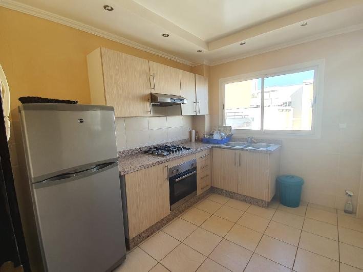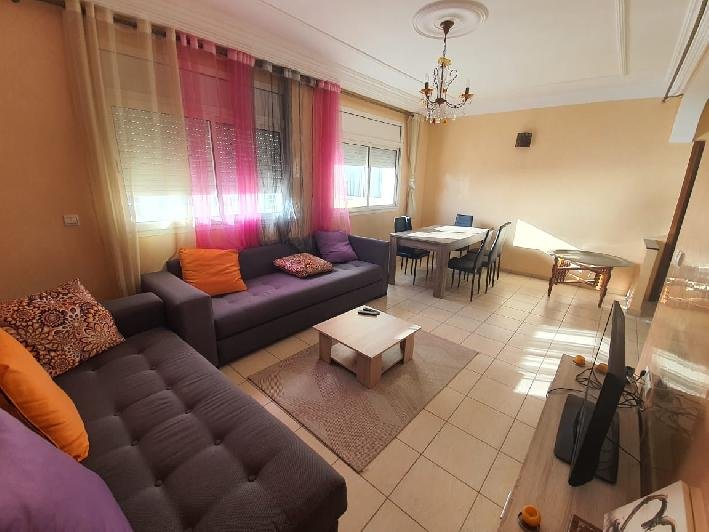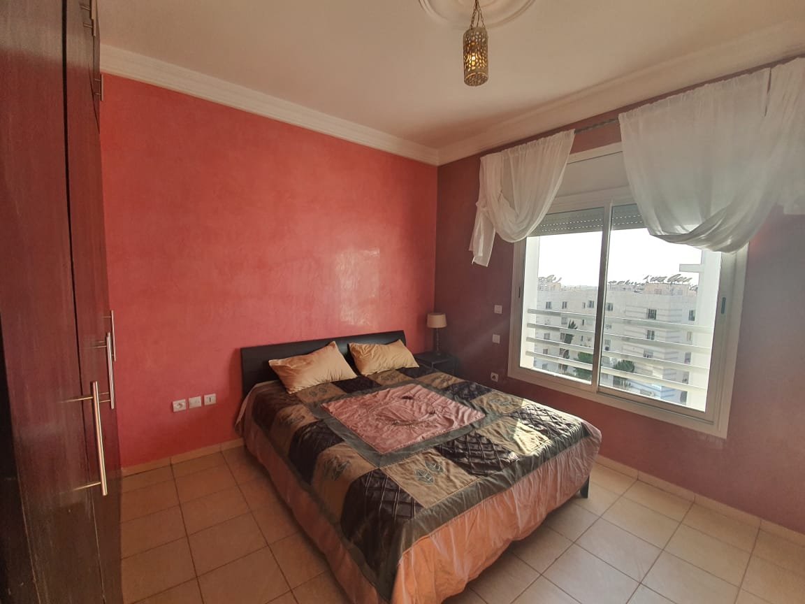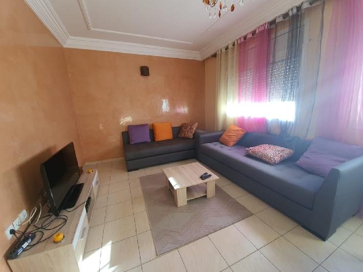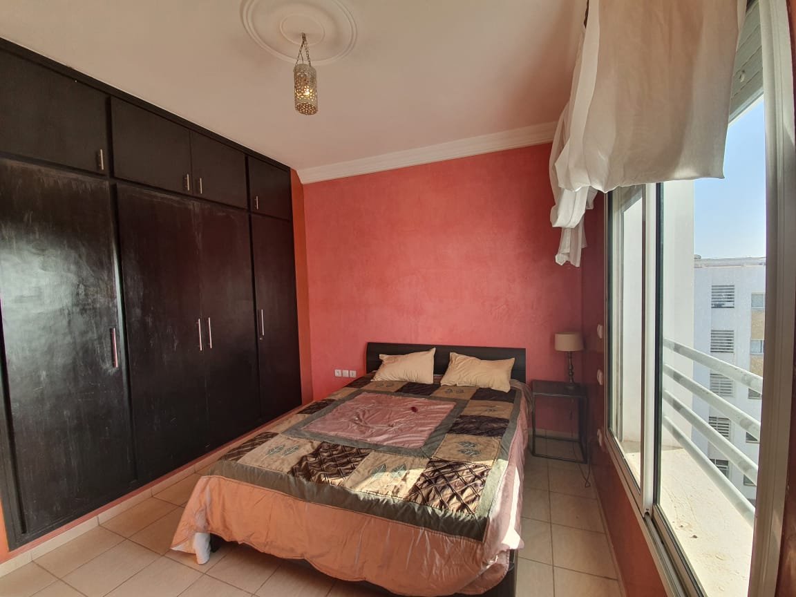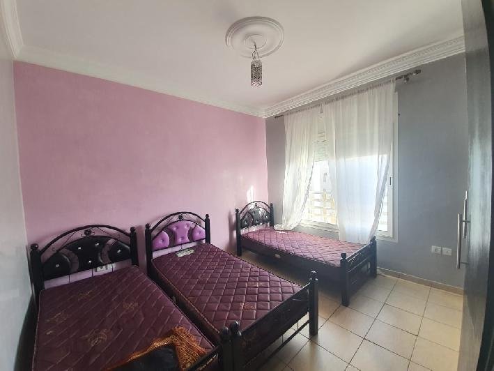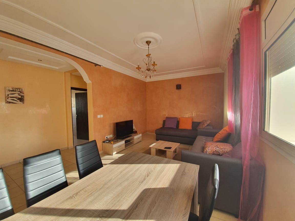 A louer en location longue durée ce bel appartement meublé en excellent état, bien exposé, situé dans une résidence sécurisée et bien entretenue aux jardins du souss à Agadir, composé de 2 chambres à coucher, 1 SDB, une toilette invité, un salon moderne avec un coin salle à manger, une cuisine équipée avec buanderie, plus une belle terrasse commune avec une vue imprenable et une place de parking titré à votre disposition . Loyer : 5.000 Dh /mois syndic inclus