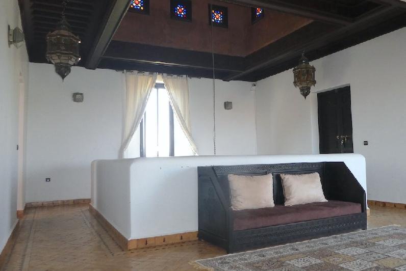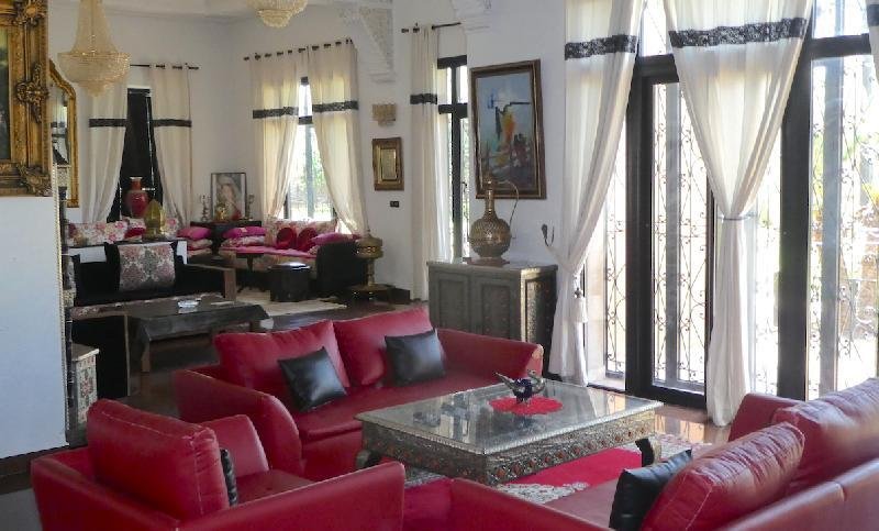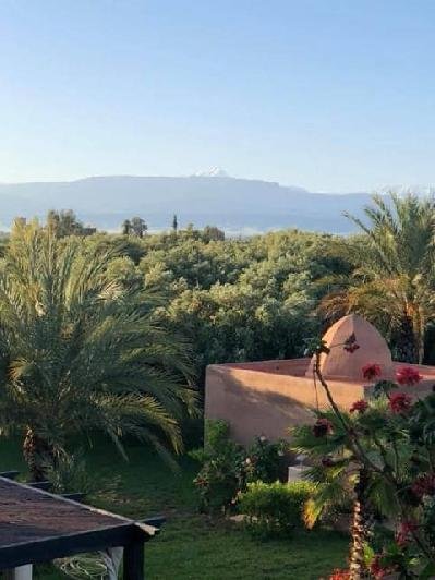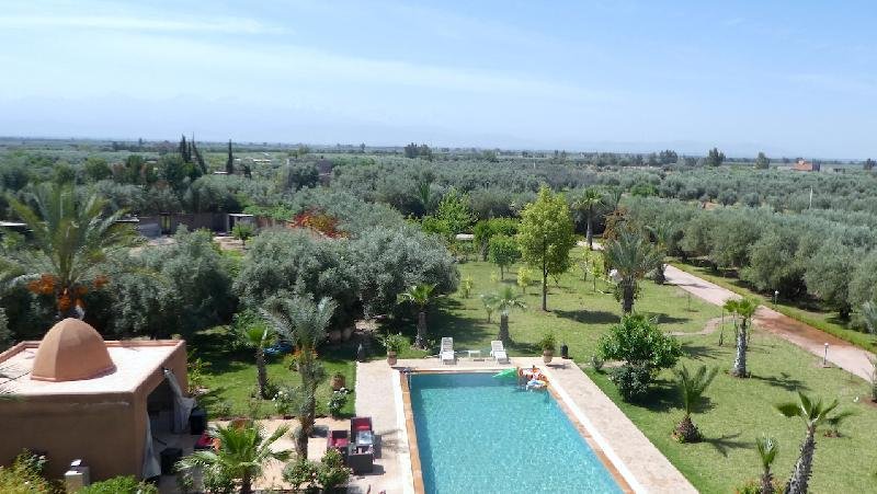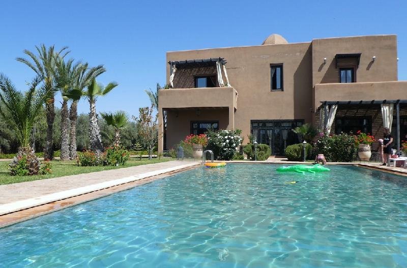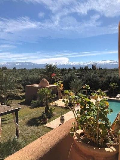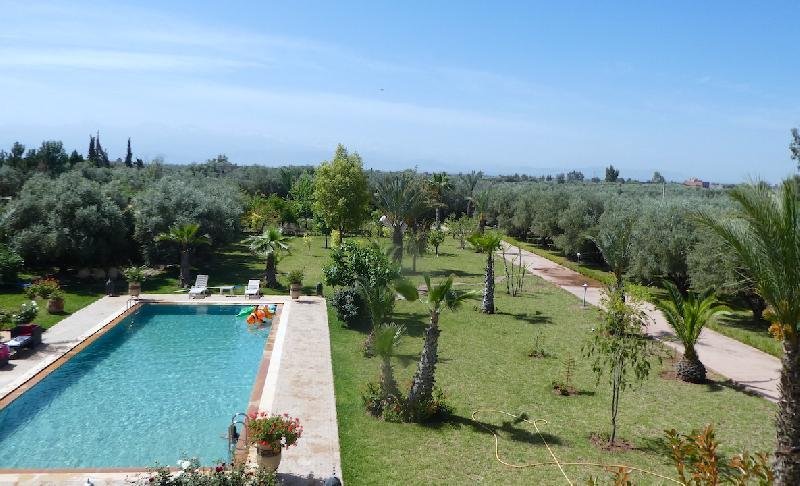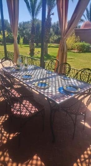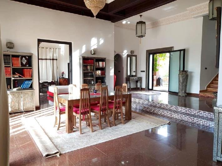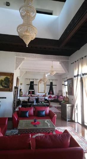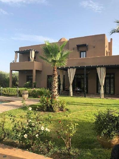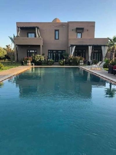 Une très belle villa à louer sur 7000 m² de terrain et 460 m² habitable entourée d'un espace vert et une belle piscine privative, un pool house avec sauna, dotée de 3 salons , 4 chambres avec leur salle de bain, une cuisine aménagée,double garage,un hammam avec salon , une maison pour gardien à l’entrée, la villa est située à Sidi Abdelah Ghiat à 15km du centre de Marrakech avec 1.5 km de piste.