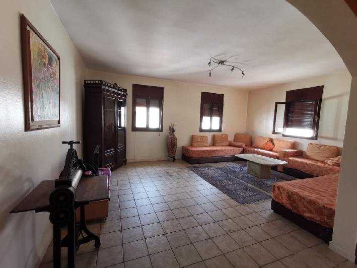 louer un spacieux appartement meublé de 2 chambres d'une sup de 160 m² au 2 ème étage dans une résidence calme, sécurisée et avec ascenseur à Hay Dakhla Agadir près de carrefour et du centre ville, à 10 minutes en voiture de la mer , Il se compose d'un grand salon marocain bien ensoleille, un autre salon meublé en fauteuil bleu ouvert sur une chambre à coucher, une autre chambre à coucher , 2 salle de bain, une cuisine équipée et un coin salle à manger