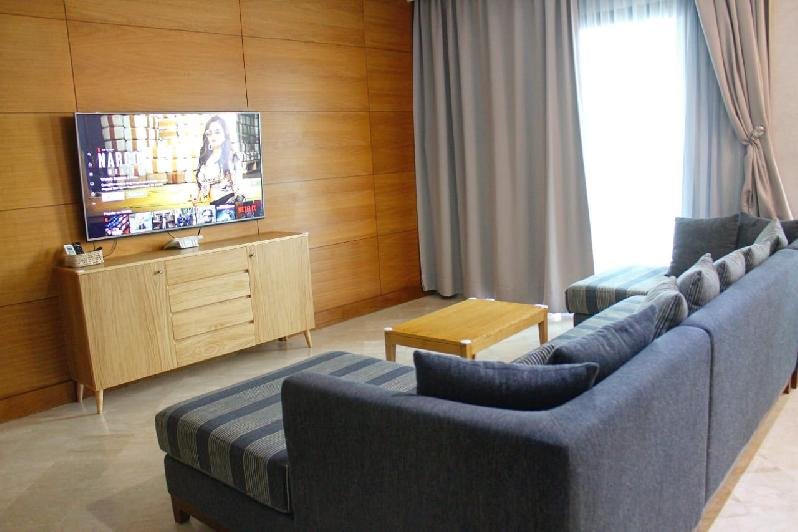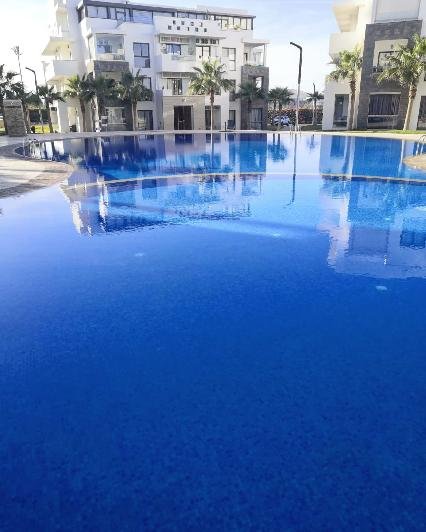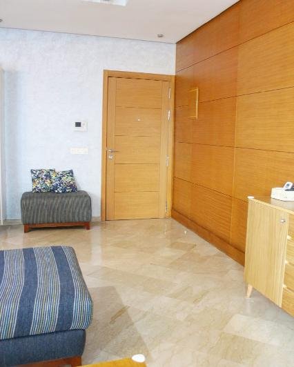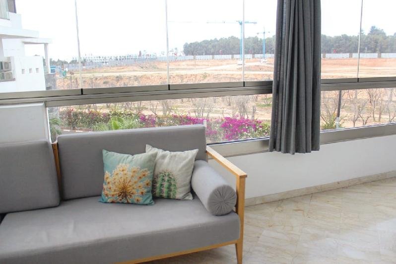A louer en location à l'année ce bel appartement, meublé style moderne, de 118m², composé de 2 chambres avec une jolie terrasses traversante donnant une belle vue sur les espaces verts et Agadir Oufella, un double salon moderne, une cuisine américaine, Lumineux et bien exposé, situé dans une résidence sécurisée, bien entretenue avec 2 piscines, à qq. pas du lycés Français, des commerces, restaurant et plage,d 'Agadir. Climatisation centralisée, Internet fibre optique et aussi Parking disponibles. Loyer: 11.000 dh HORS CHARGES DE COPROPRIETES.
