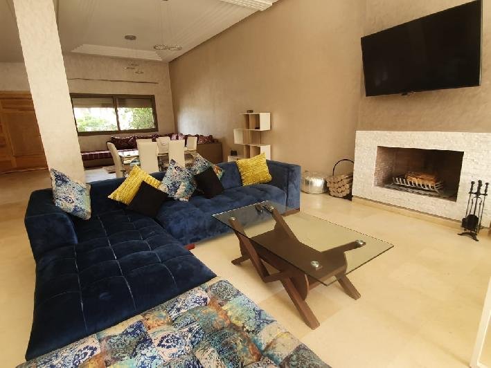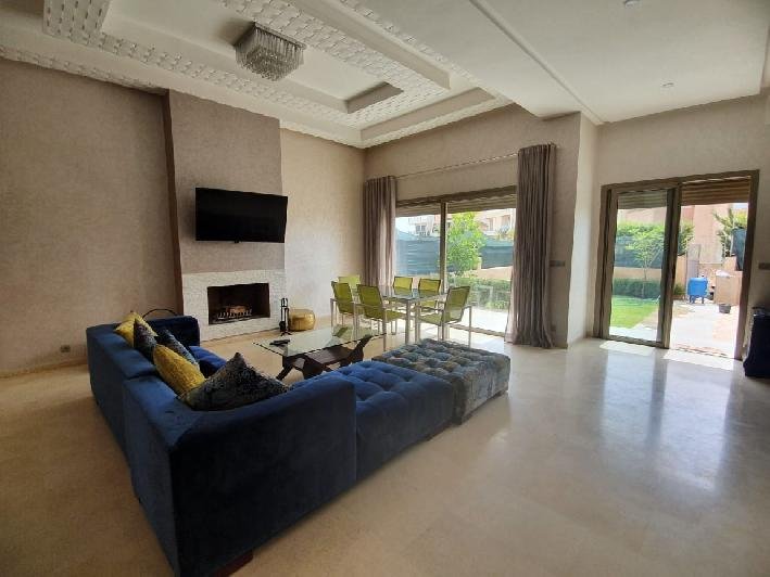 Votre agence immobilière ARTIMMO sur Marrakech vous propose à la location longue durée une jolie villa moderne bien finie, avec une jolie piscine et jardin, dans un domaine entièrement sécurisé qui représente un bel et grand espace vert à moins de 10 mn du centre ville de Marrakech . la villa est composée de au rdc un bel espace de vie avec un coin de cheminée , cuisine equipée , wc invité .à l’étage, la villa dispose de trois chambres toute avec leur salle de bain privative et dont une parentale avec grand dressing. la villa est situé à Argan golf resort à proximités de toutes les attractions et activités pour enfants et adultes (parc aquatiques, tennis, laser games, terrains de jeux collectifs, cinémas, écoles.....) et des commerces (2 centres commerciaux à 5mn en voiture: Menara Mall et Al Mazar).