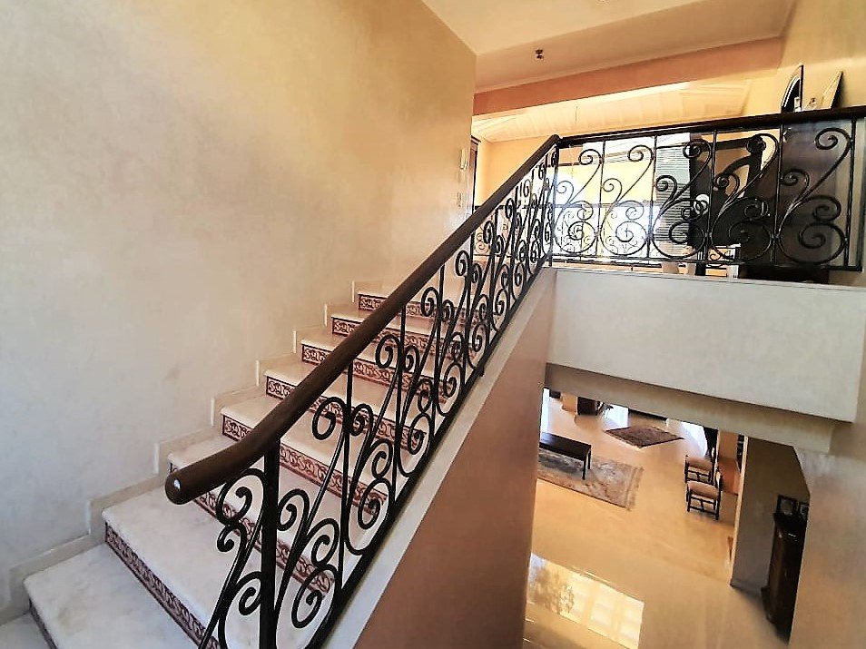 Très jolie villa mélangeant avec bcp de charme et sobriété, à louer meublée avec piscine privée et beau jardin privatif, le tout sur un terrain de 1060 m² au Prestigieux quartier ILILGH. Composée d'un salon européen avec coin cheminée, salon marocain pour la réception, cuisine équipée, 5 chambres à couchers , 3 SDB, Terrasse, hammam beldi, salle de jeux, beau jardin, piscine privée et garage .