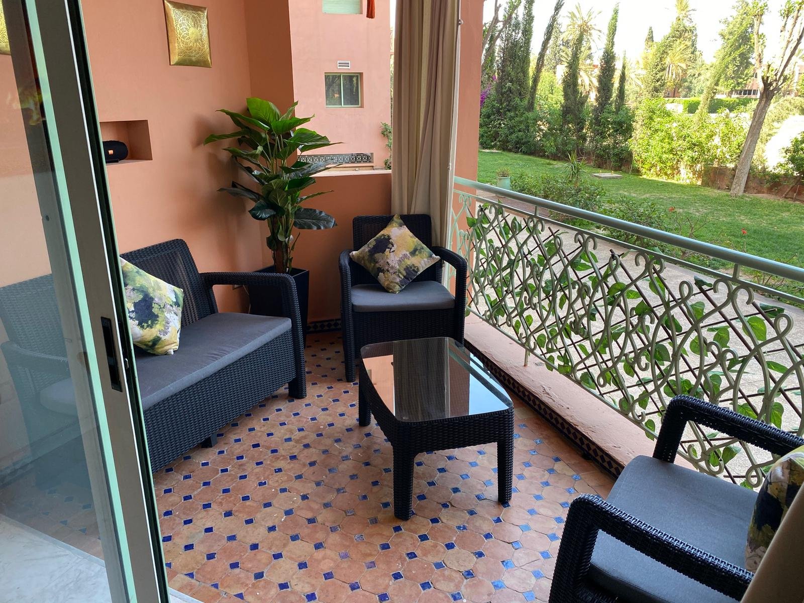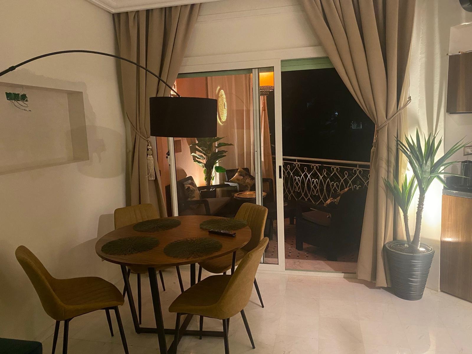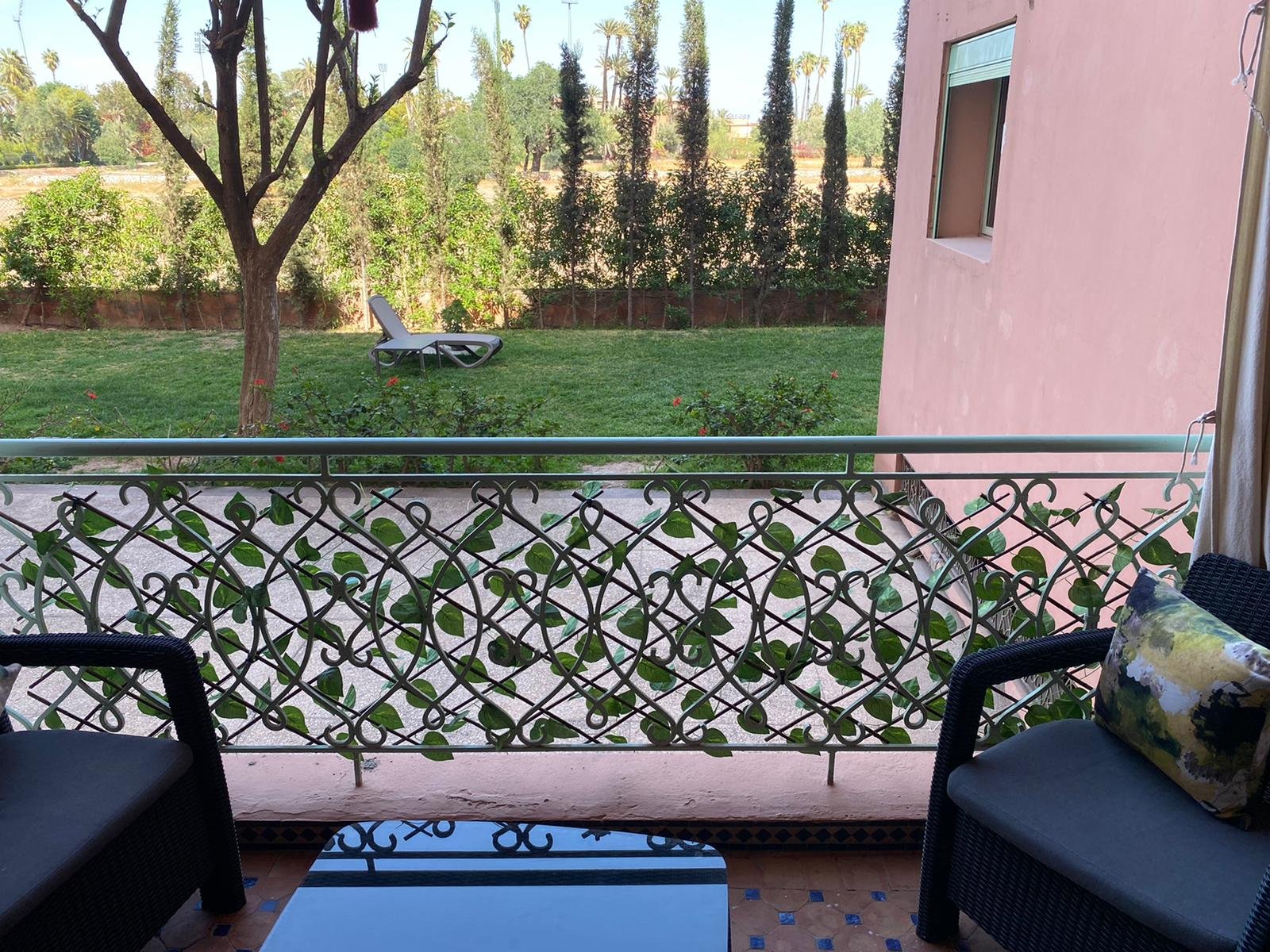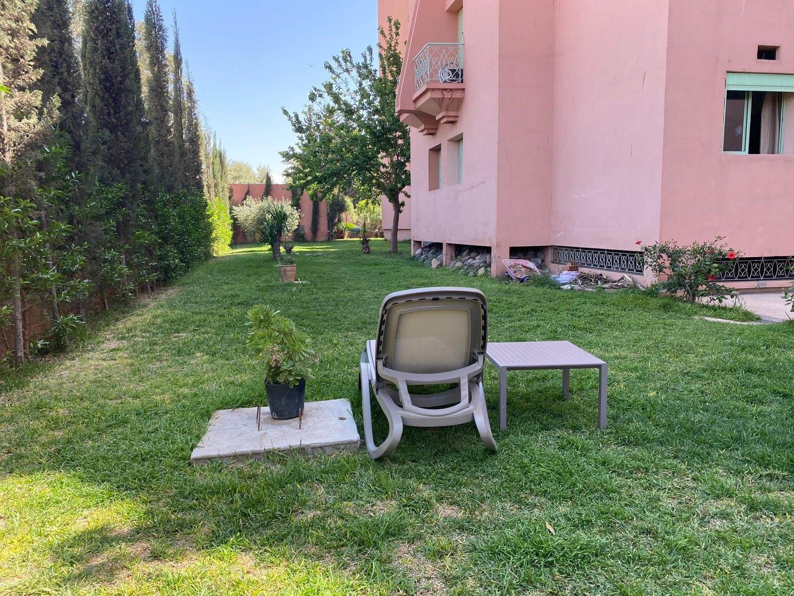 Trés Bel Appartement Meublé en Rez de jardin avec jardin privatif, de 2 chambres et salon, dans une résidence calme et sécurisée avec piscine au Quartier hivernage sur Marrakech, Prix de loyer: 6500 Hors Syndic ou 7000dh TCC