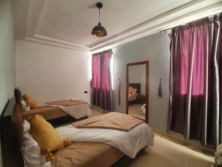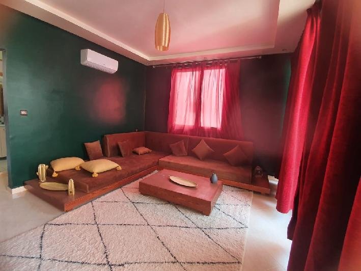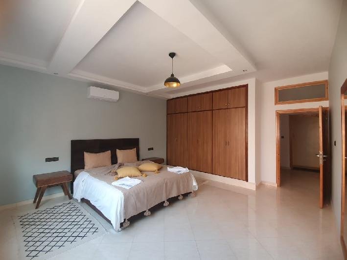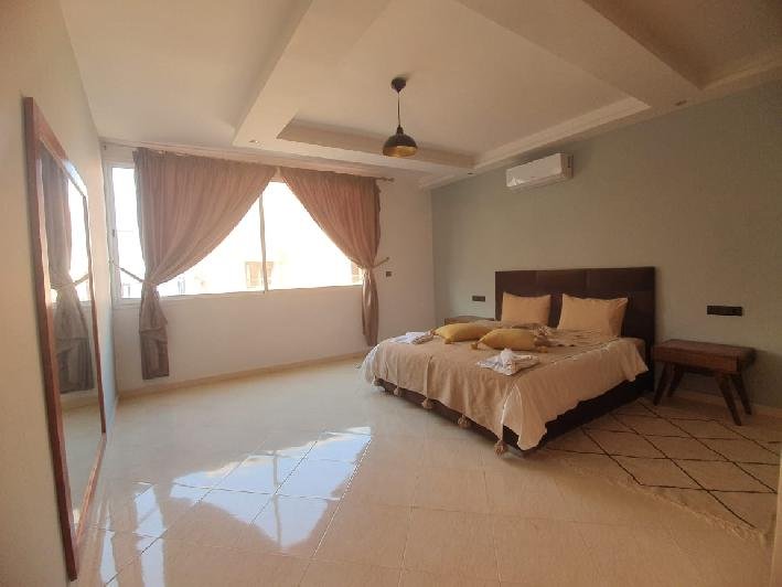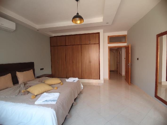 Tinass Immo vous invite à profiter de deux spacieux appartements 110 m² en location longue durée ( vides ou meublés ) situés au village Aourir à 10 mn de centre ville Agadir, dans un petit immeuble de 3 appartements composés de : 2 chambres à coucher, 2 SDB, Joli salon pour la réception, terrasse donnant vue sur la mer, cuisine équipée. Loyer vide : 5000 dh loyer meublé : 7000 dh