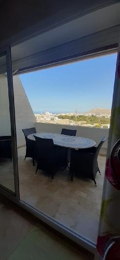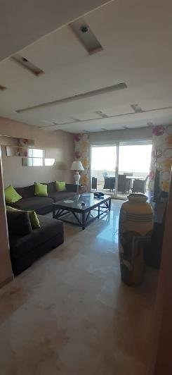 Superbe appartement 115m² dans une résidence de standing au 6 ème étage , terrasse vue sur mer et kasbah Très bien meublé et équipé , climatisation réversible Piscine , salle de sport , place de parking au sous-sol.