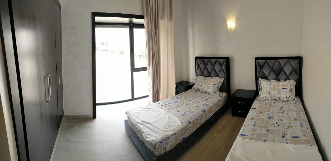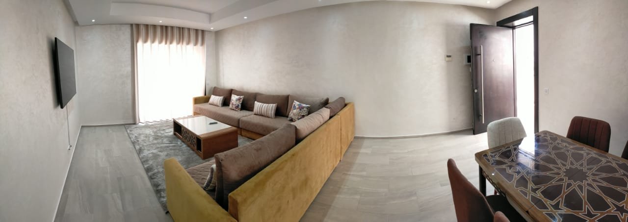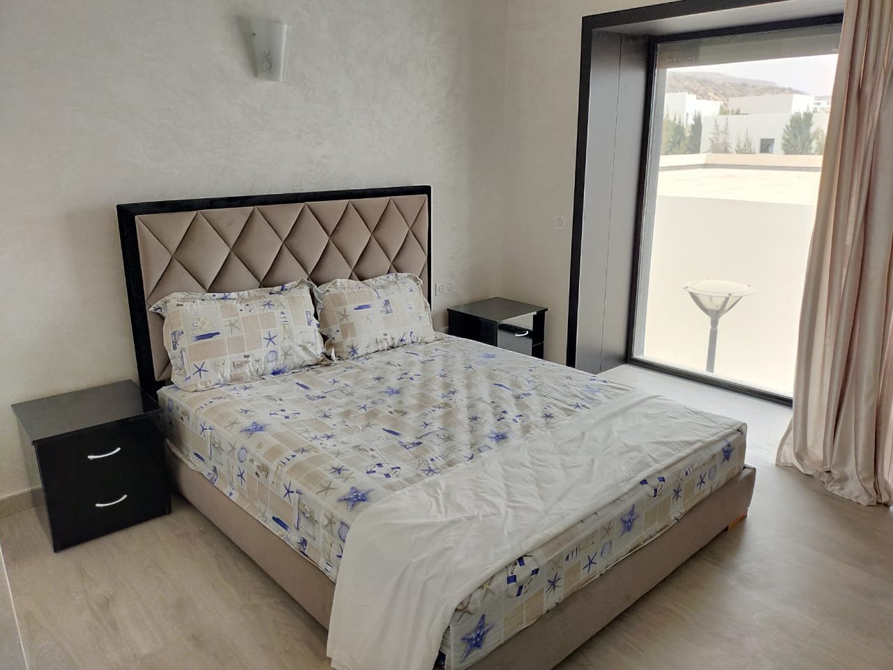 Très bel appartement à louer meublé à Taghazout à 2 pas de la belle plage en face à 20 mn du centre d'Agadir. Composé de 2 chambres dont une parentale sa salle de bain privée, 2ème salle de bain (douche) , salon moderne, cuisine équipée, terrasse avec une jolie Vue sur jardin. l'appartement est situé dans une résidence sécurisée 24h/24 avec des beaux espaces verts, parc de jeux pour enfants, terrain de football, parking surveillé, des piscines collectives à quelques pas de la plage . Disponible à partir du 1er Septembre 2021