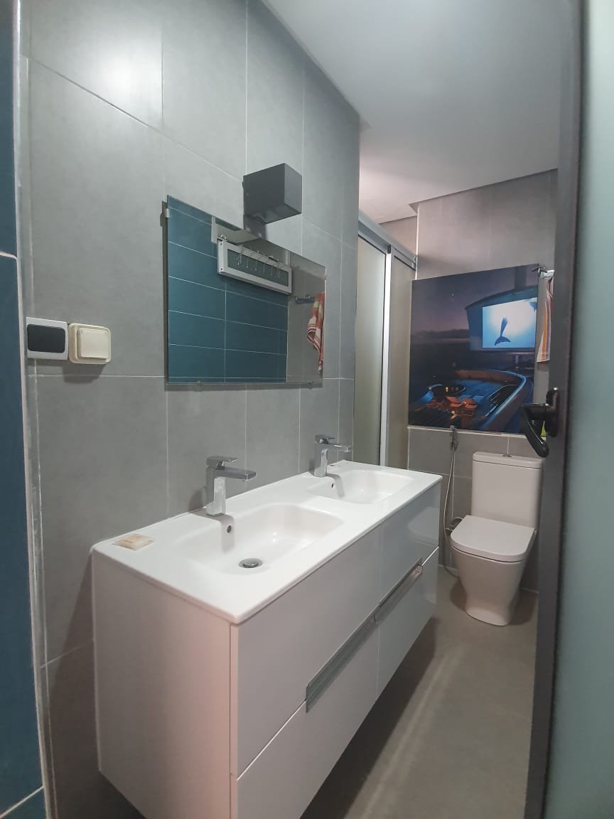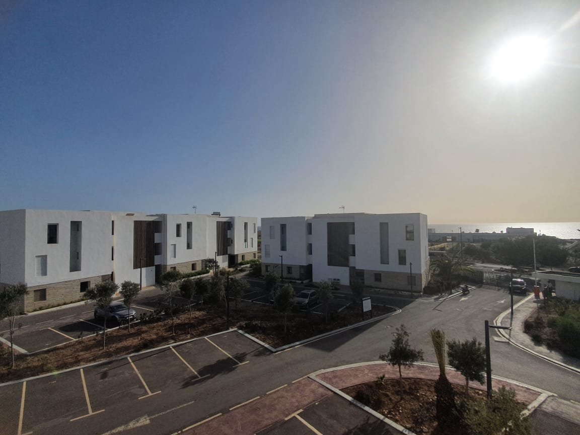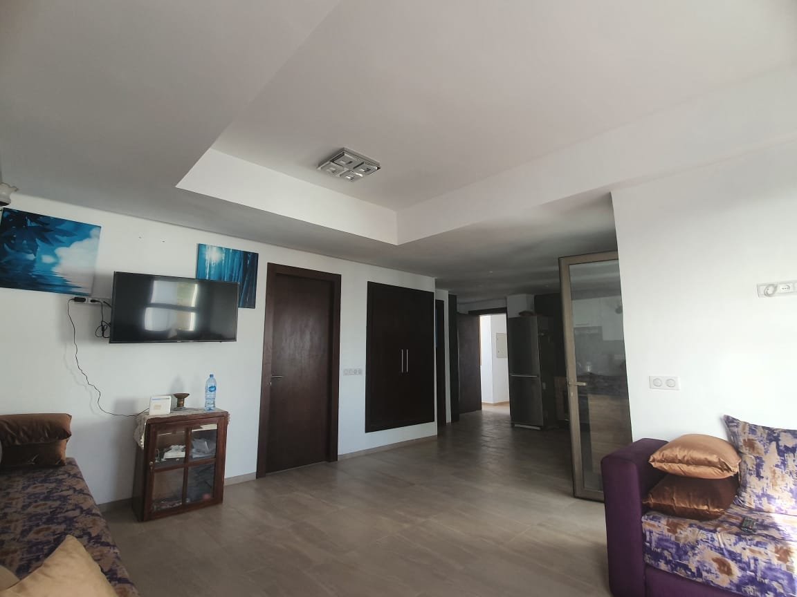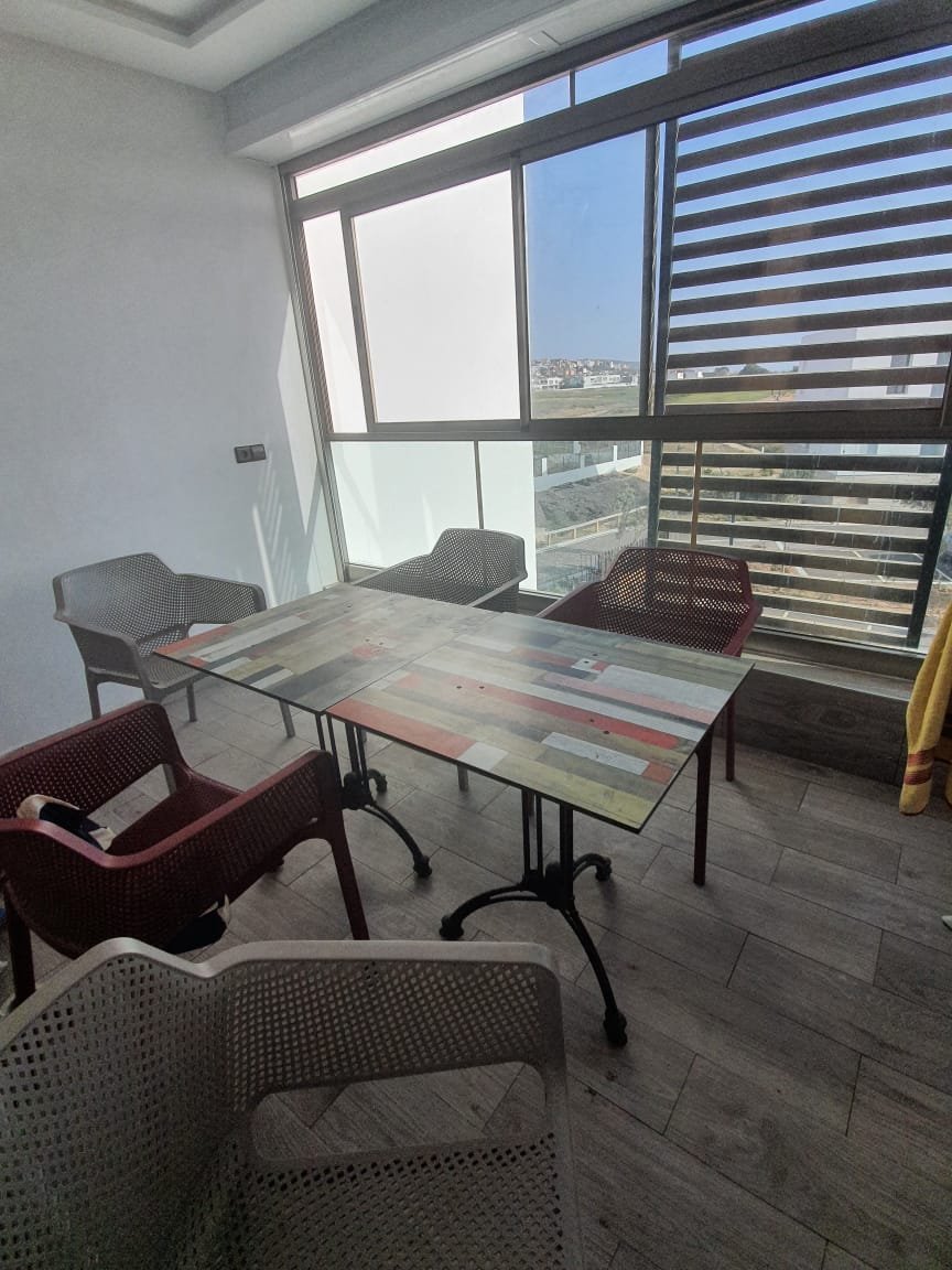 A louer en longue durée cet joli appartement, meublé et équipé à neuf style moderne, d'une superficie de 100m², lumineux et bien agencé, composé de 2 chambres dont une est convertible à un petit séjour, 1 SDB, une toilette visiteurs, une cuisine équipée, un salon moderne avec un coin salle à manger. L'appartement est situé dans une résidence fermée, sécurisée avec piscine à Taghazout Bay à qq. pas de la plage de sable doré, des hôtels de luxe et 15mn du centre ville