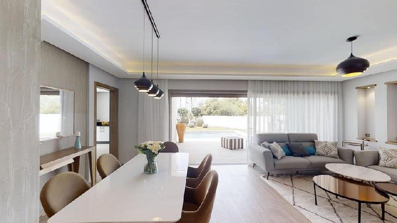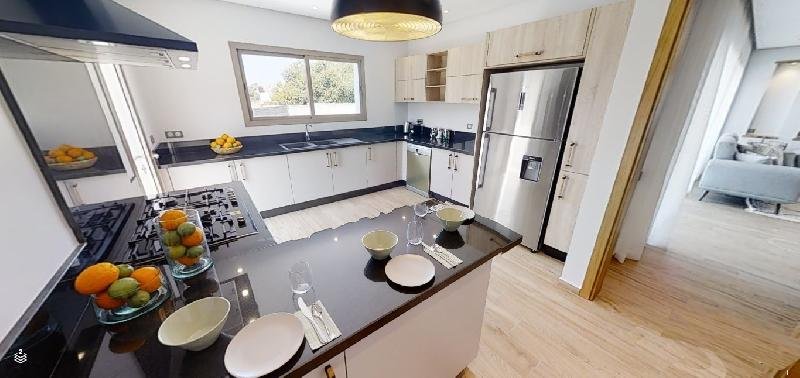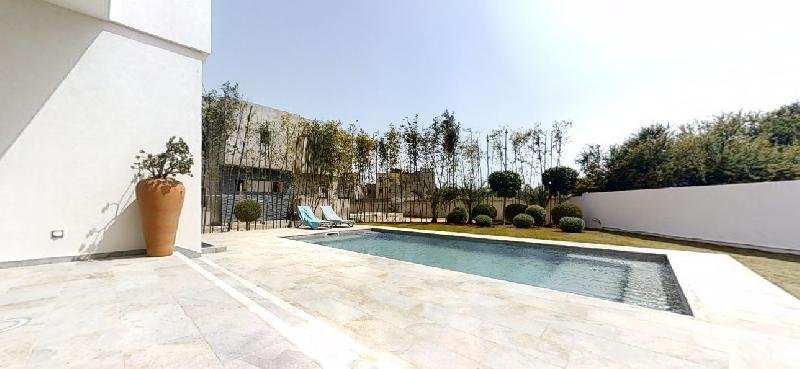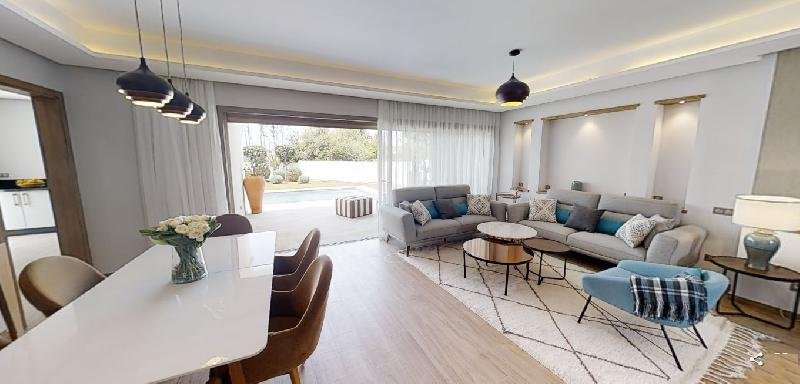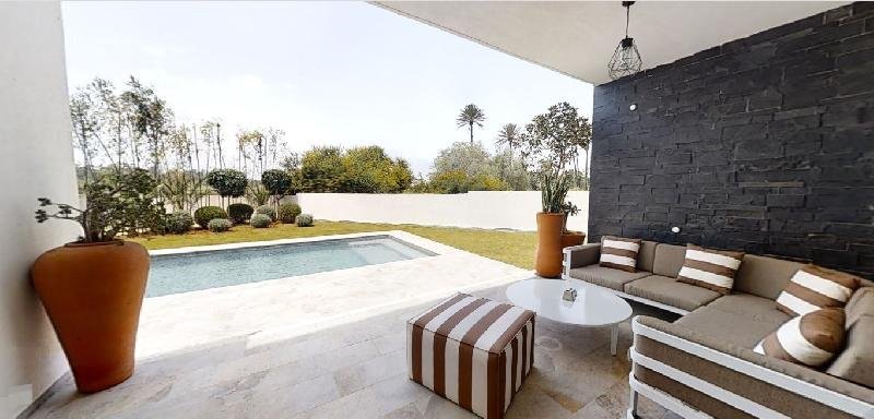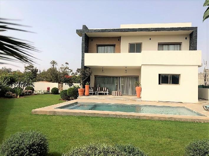 Vous cherchez une villa avec de vraies finitions haut de gamme? Des intérieurs au design contemporain et confortables? mais aussi des extérieurs aérés, verdoyants qui feront le bonheur de toute votre famille et en mm temps sécurisés Une résidence principale Ou secondaire (avec possibilité de rentabiliser votre investissement grâce à un service de gestion locative personnalisé) Un environnement où compagne, golfs, monuments (médina coco polizzi) et architecture moderne se rencontrent juste à 10mn de toutes les commodités de la ville (écoles, commerces, restaurants, centres d'intérêts économiques...) Vivre dans une ville à l'infrastructure solide, où le climat est doux toute l'année, gâtée par la nature (plages, forêts, montagnes, vallée, oasis, réserves naturelles....) Où vous pourrez donc joindre l'utile à l'agréable toute le temps? Alors il faut impérativement venir visiter ce domaine, et y faire une petite pause-café ou thé ou y déguster un apero au bord de piscine, bercé par le petit vent frais et le chant des oiseaux. Le seul risque que vous prenez .. et qu'il vous serait très difficile de vous arracher à cet havre de paix après . Ce domaine sécurisé, compte donc, 7 villas de style contemporain, d’une superficie de 340 m2 construits, est édifiée dans un jardin privatif arboré (entre 433 et 549 m2) avec une belle piscine privative. Consistance de chaque villa: 4 chambres dont une parentale avec grande sdb et dressing- 2 autres sdb - 2 salons - 1 séjour- 1 salle à manger - cuisine hi-tech entièrement équipée - un debaras et plusieurs autres rangements- un jardin et une piscine. Toutes les villas sont orientées Sud ou Sud Ouest et entourées de belles haies végétales pour préserver votre intimité dans le respect de l'environnement. Prix de vente: 5.500.000 dh au lieu de 6.500.000 Dh. N'hésitez pas de nous contacter, il reste que 3 villas sur 7