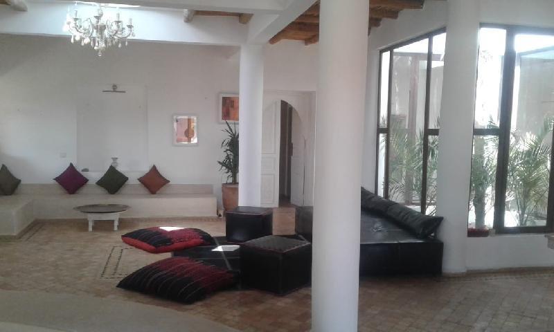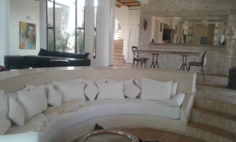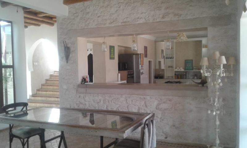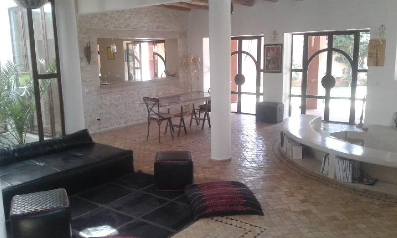 A ne pas rater une villa avec de belles prestations et finitions haut de gamme à vendre de plain pied, située sur le Golf de Mogador. Terrain d'environ 1230m2. Environnement exceptionnel entre Golf, plage, forêt et lac. A proximité de l'hôtel Sofitel et du club House. - Surface maison 370 m2 - Double salon avec baies vitrées donnant sur la piscine et le Green. - Chambres: 4 - Salles de bain: 4 - 1 Chambre pour le personnel avec commodités. - Toilettes invités - Cuisine ouverte moderne entièrement équipée - Arrière cuisine. - Grand séjour. - Cheminée. - Chauffeau solaire. - Piscine 55/60m2 , barbecue et solarium. - Pompe de piscine solaire. - Puits. - Terrasse (sud) 160m2 - Hammam. - Jardin arboré. - Abri de jardin clos. - Garage abrité.