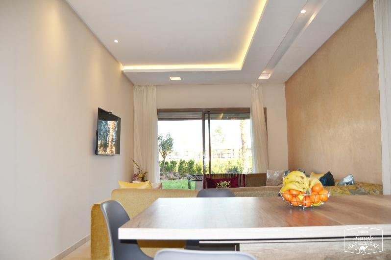 Magnifique Appartement Bien Meublée au Rez Jardin à Prestigia ;il Se Compose de 2 Chambres 1 Salon 1 Cuisine Bien équipée 2 SDB Terrasse Jardin et Piscine