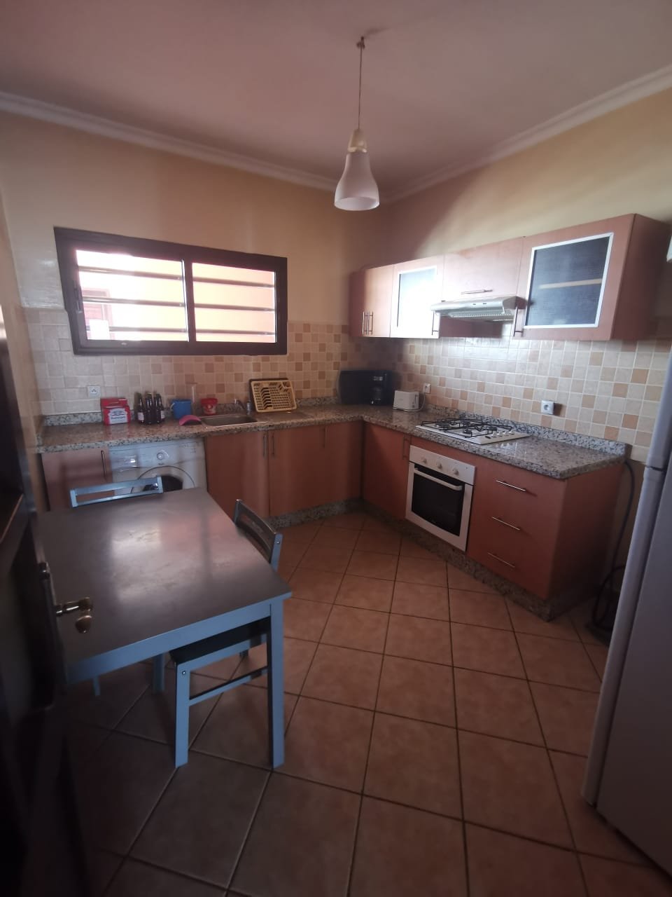 Très Bel Appartement de 94m² en location longue durée situé en 4ème étage dans un immeuble calme et sécurisé à Founty Agadir, Il composé de: 2 chambres avec Balcon Salon Cuisine équipée 2 SDB