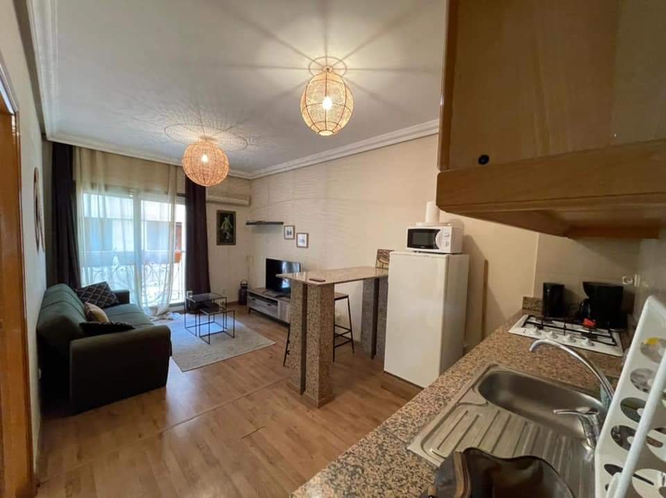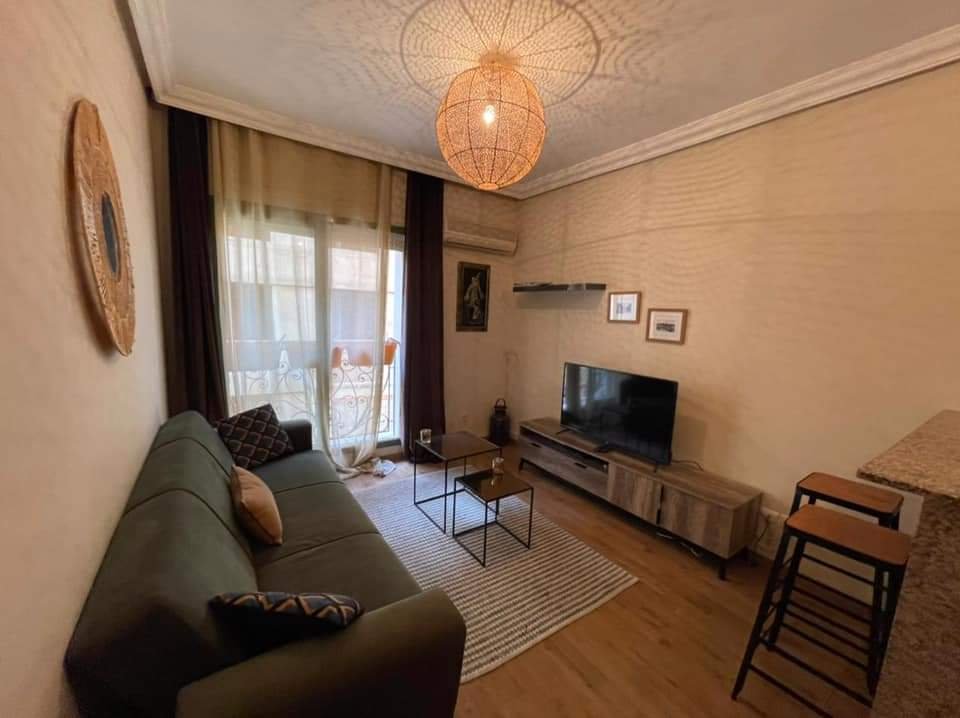 Très Bel Appartement Meublé à louer en location longue durée, Une Chambre Salon avec parquet tout équipé, situé dans l'hyper centre de Marrakech, 5 minutes à pied du Carré Éden, Proche de toutes commodités.