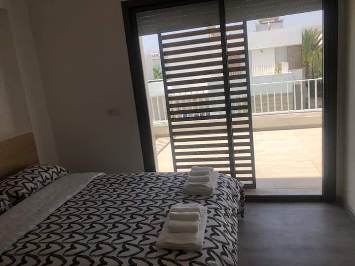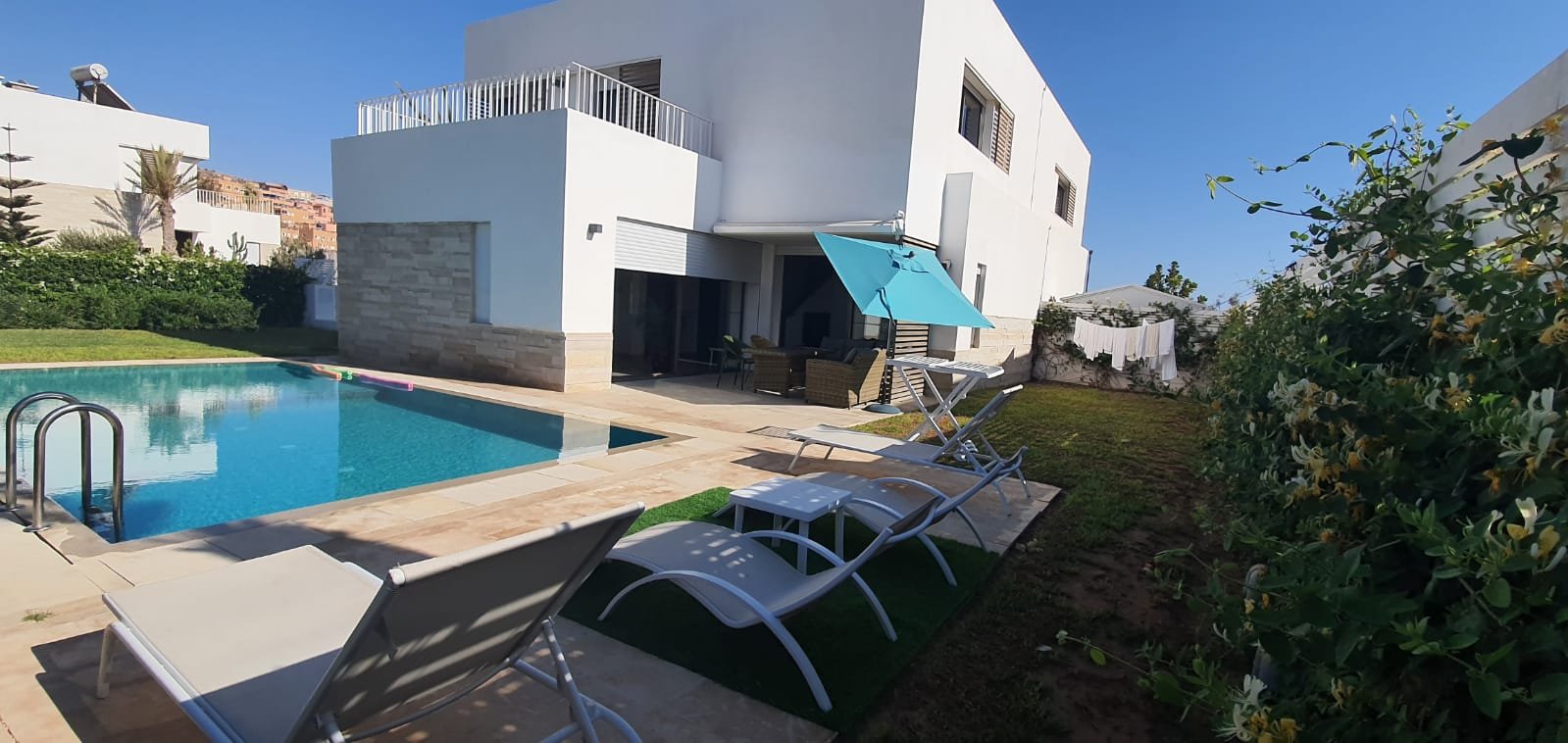 Villa située dans la résidence Tamda de Taghazout Bay, avec à disposition parking, service de sécurité et espace commun avec aire de jeux, terrain de football et basketball. Le logement Villa avec piscine privée entièrement meublée et équipée (Buanderie, Gestion domotique, TV, filtre d'eau, barbecue pour grillades). Accès des voyageurs Idéalement située dans le complexe Taghazout Bay entre Tamraght (3 min à pied) et Taghazout (6 min en voiture). Accès à la plage de Taghazout et des nombreux restaurants / cafés du village. Le golf Tazegzout est à proximité.