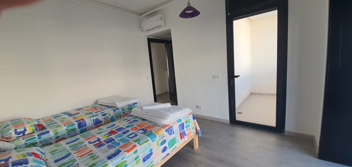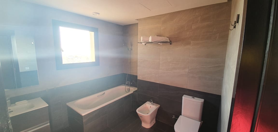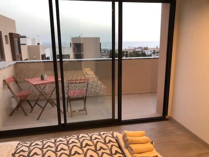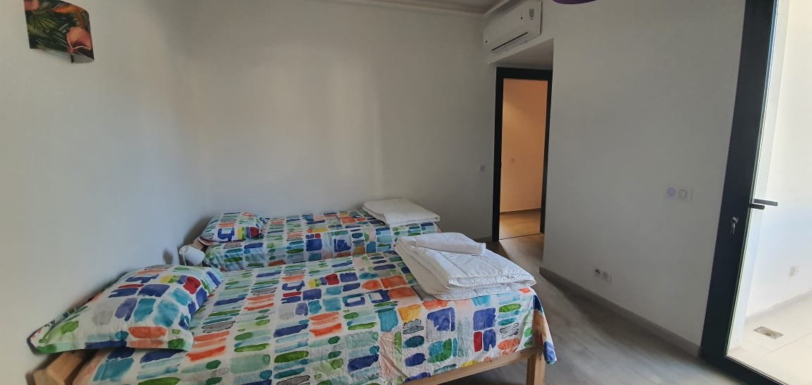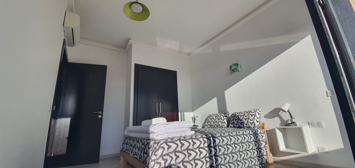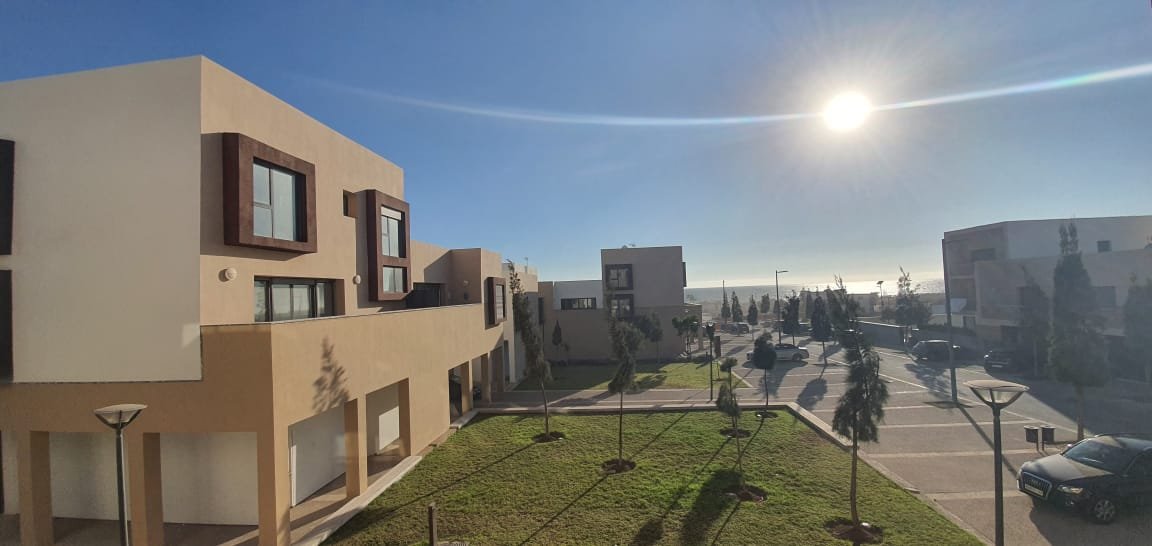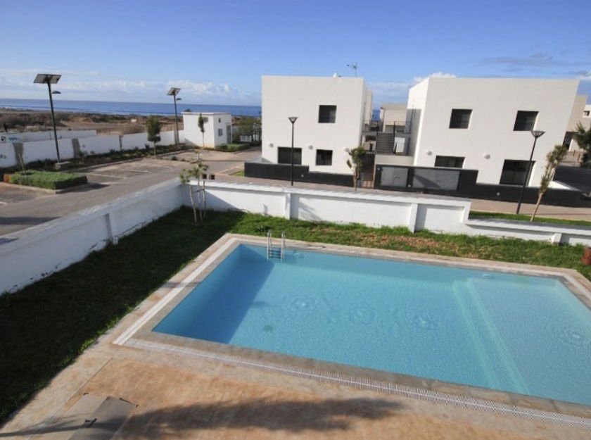 Beau Duplex à taghazout bay "Tawenza" vue sur mer et pieds dans l'eau en location longue durée, il se compose de: 2 grandes chambres, 2 SDB, Salon séjour, coin salle à manger, Cuisine équipée, Plusieurs balcons et terrasse, avec une piscine collective.