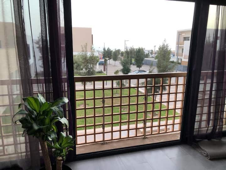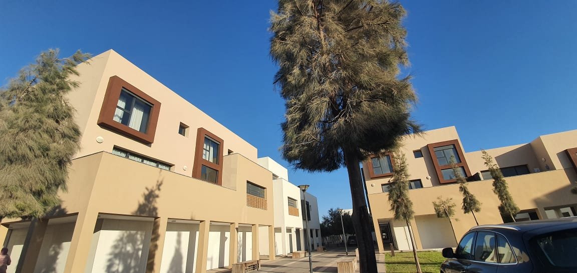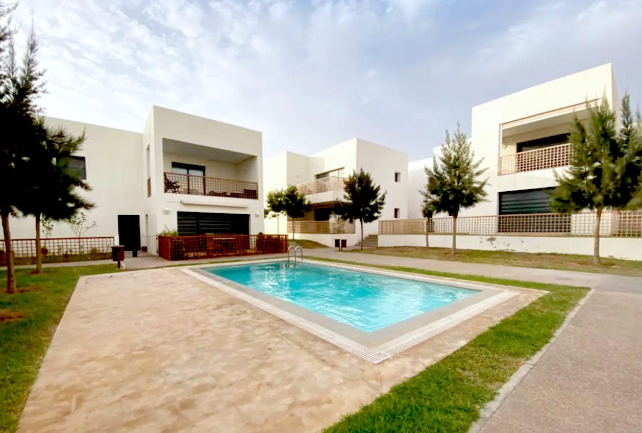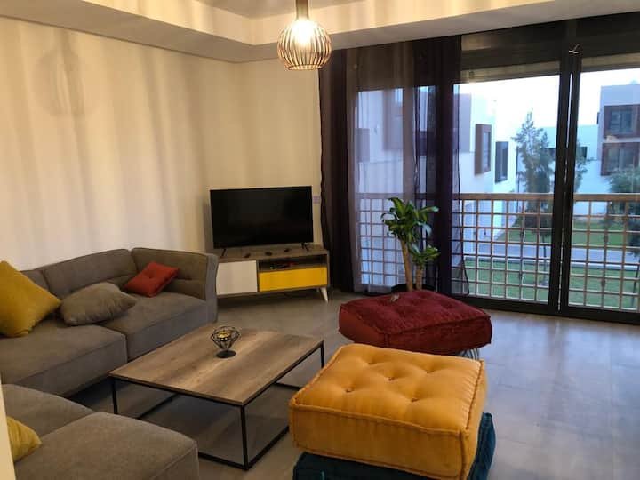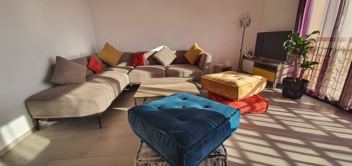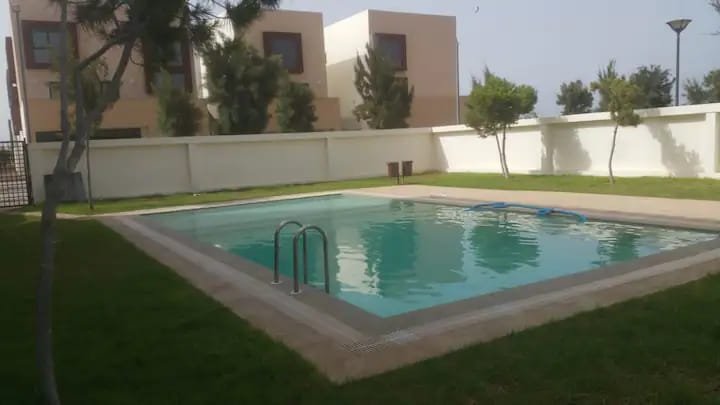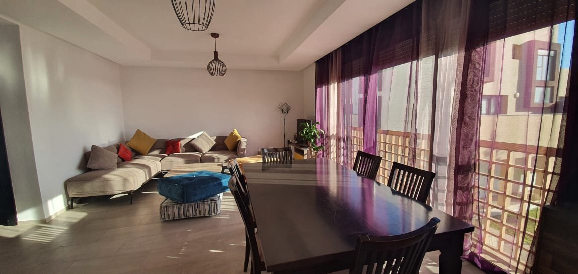 Beau Duplex à taghazout bay "Tawenza" vue sur mer et pieds dans l'eau en location longue durée, il se compose de: 2 grandes chambres, 2 SDB, Salon séjour, coin salle à manger, Cuisine équipée, Plusieurs balcons et terrasse, avec une piscine collective.