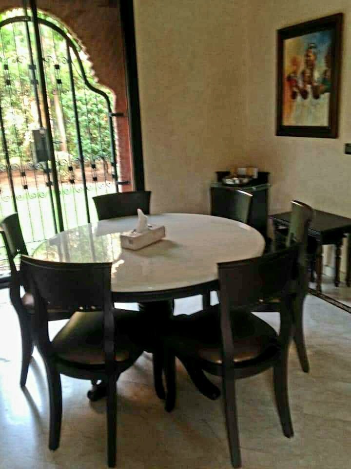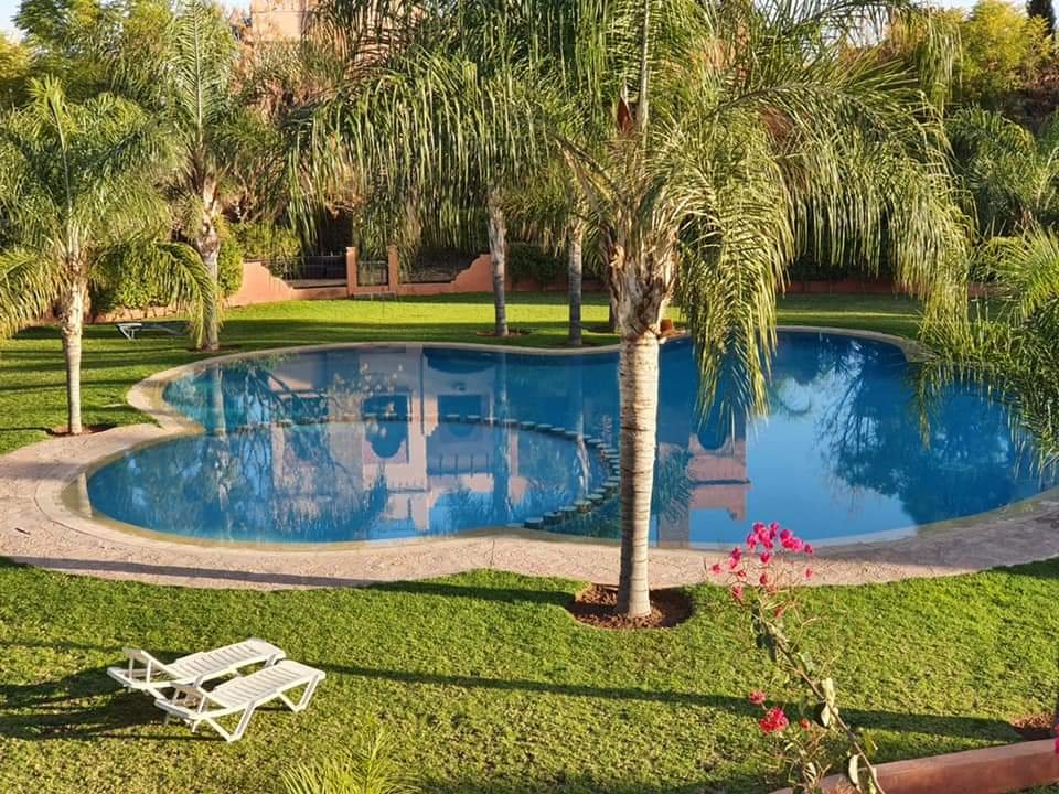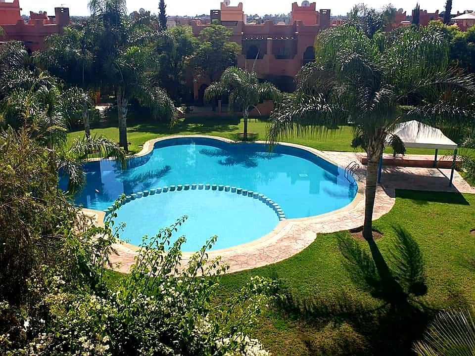 Une belle villa à vendre d'une superficie de 340m², situé d'une résidence fermée et sécurisée avec piscine collective espaces verts et terrain de tennis, Début de la route de Fés et Ouarzazate. Elle se compose de: 3 Chambres, Double salon, Espace salle à manger, Cuisine équipée...