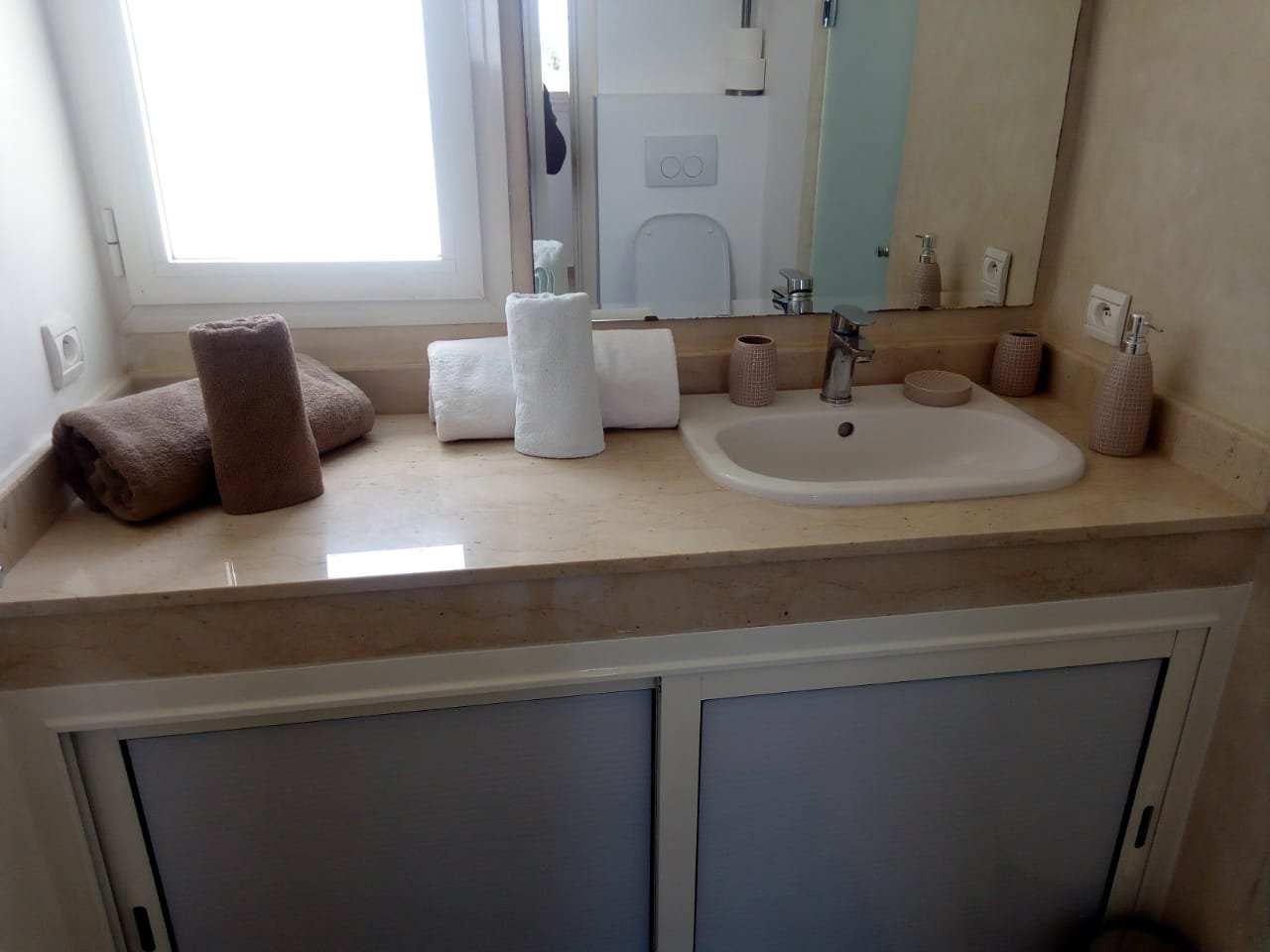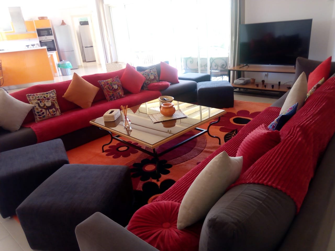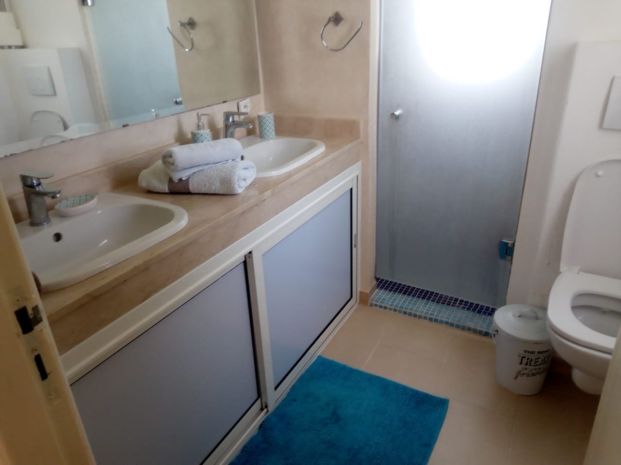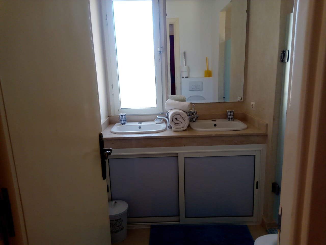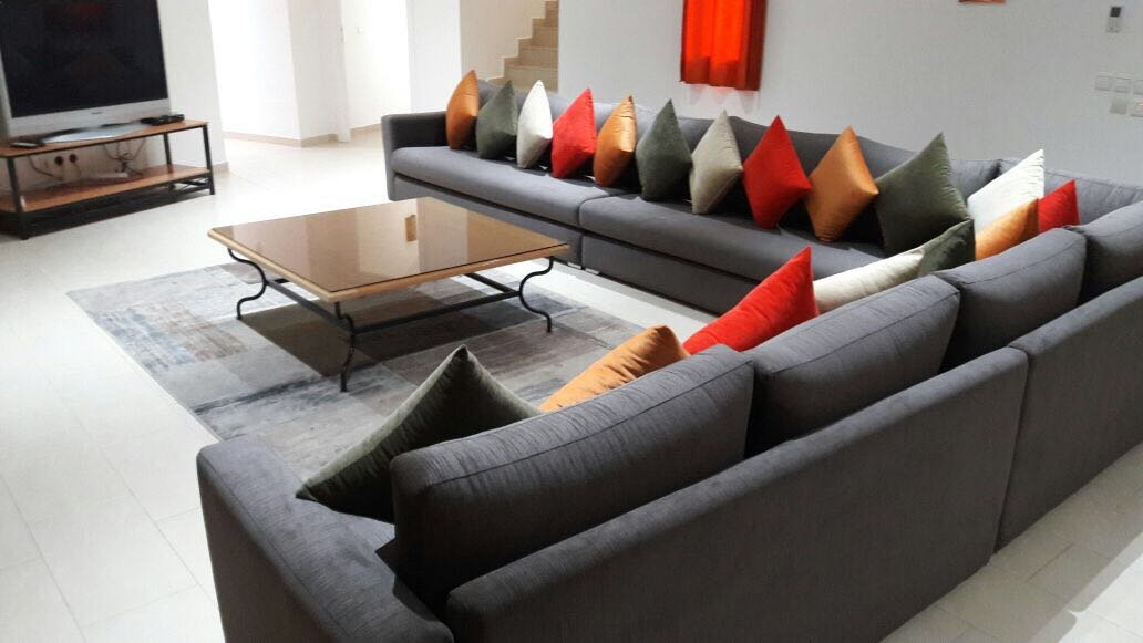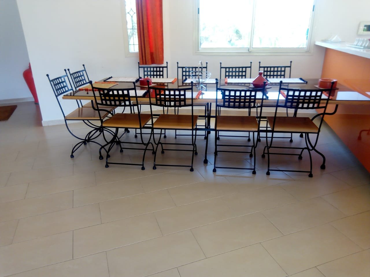 Belle Villa de style moderne, sur un beau jardin arboré;, à louer en longue durée au Km 10 route d'Ourika proche la plage rouge À Marrakech 5 suites, chacune a sa propre SDB, ses propres toilettes, sa propre clim réversible centralisée. Grand salon grande salle-a-manger et grande cuisine américaine. La villa est contemporaine, des grandes terrasses. Grande piscine 16x8 à débordement. Le tout est sur un 1 hectare payasagé NB: Il y a la fibre optique en plus