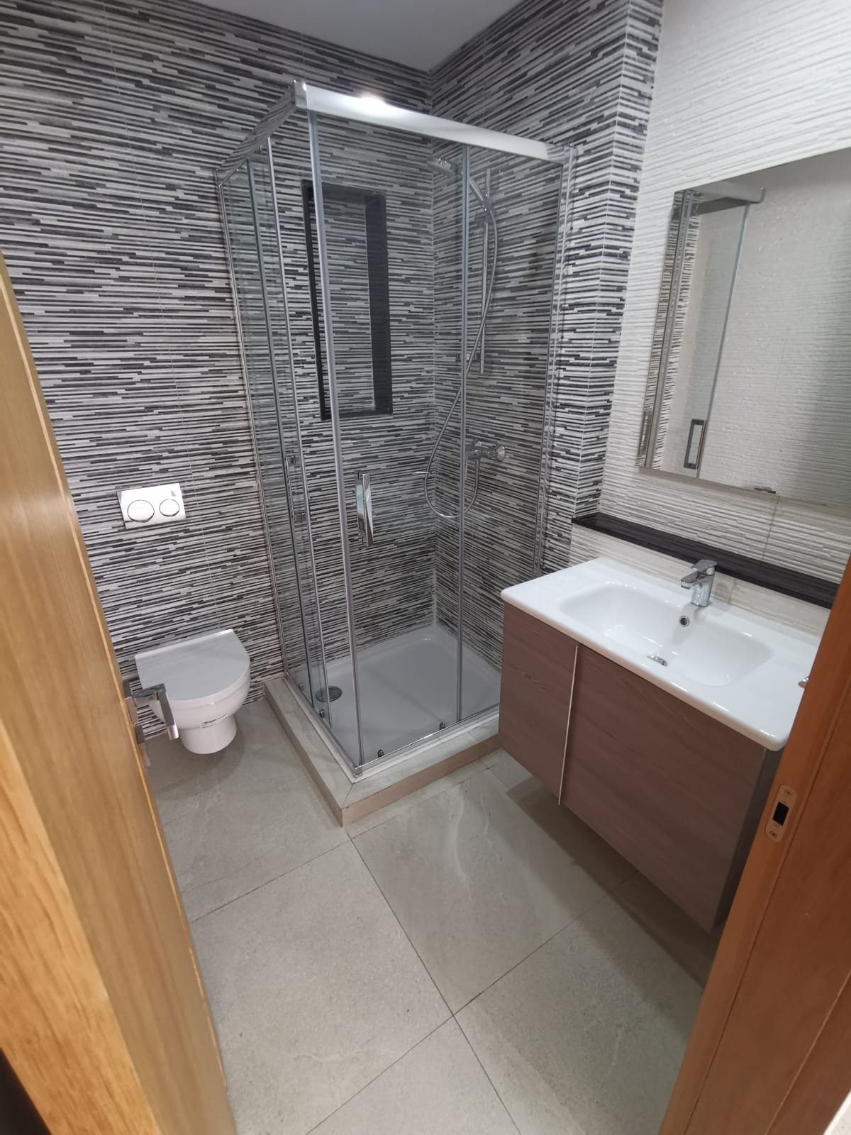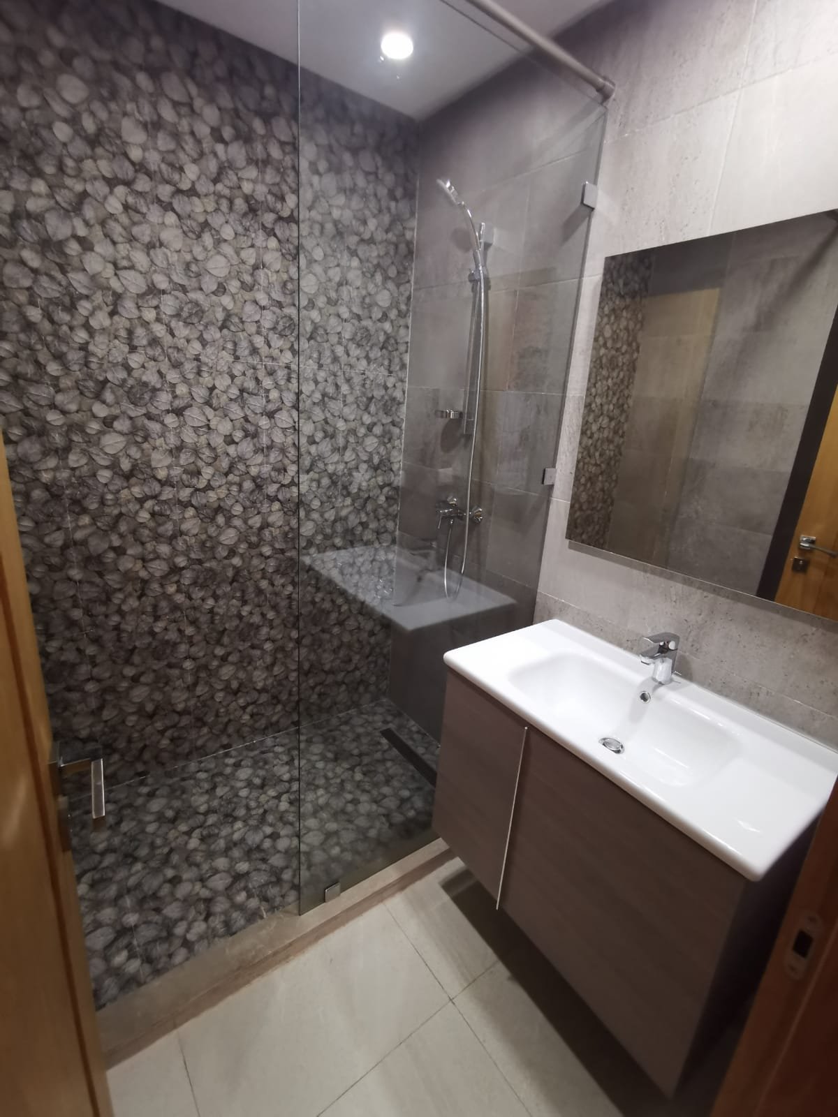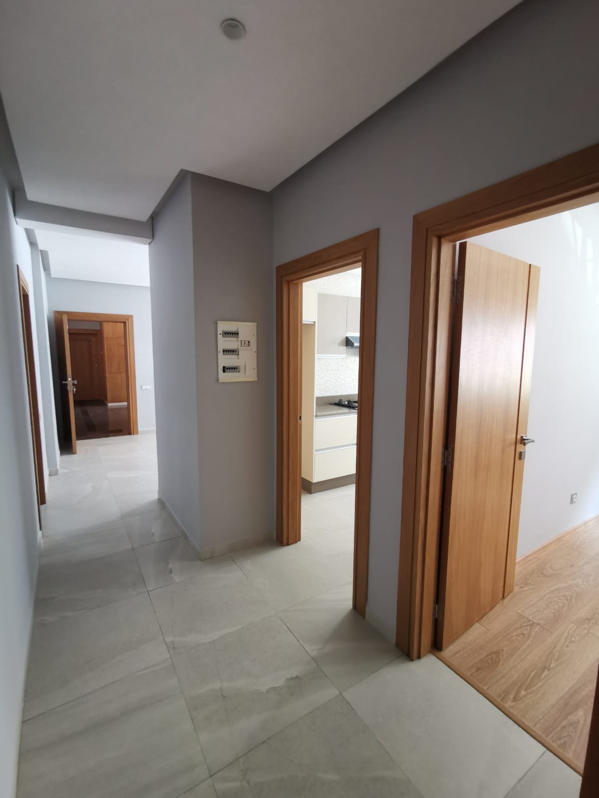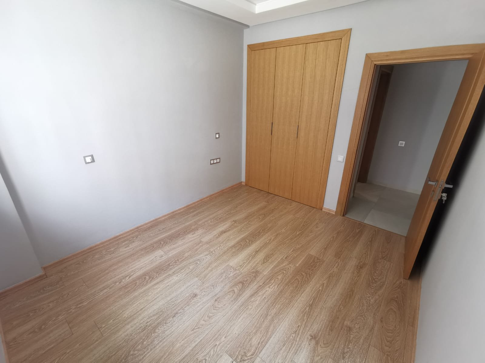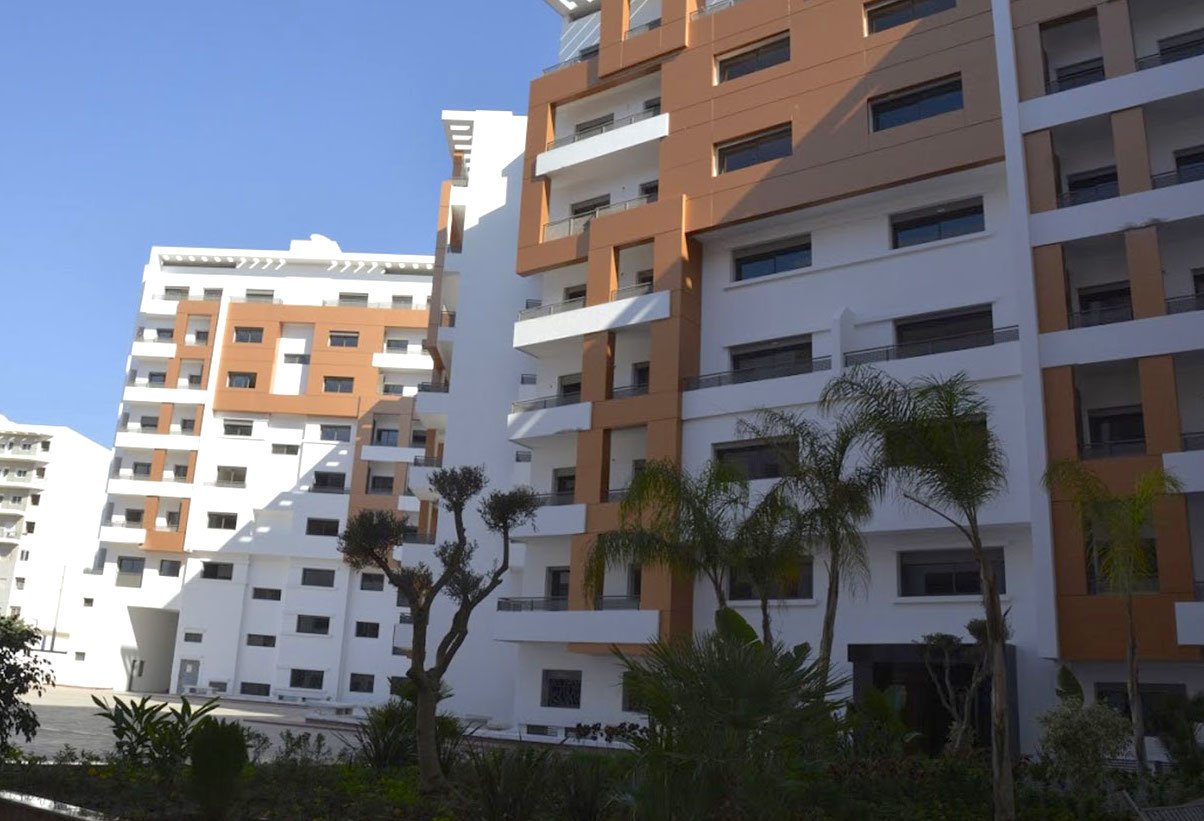 Bel appartement au rez de chaussé neuf à louer vide en Location longue durée, lumineux, situé dans une résidence très sécurisée et calme en plein centre ville d'Agadir. Il se compose de: 2 chambres avec placards dont une suite parentale climatisée et avec dressing et SDB privative, un salon, séjour climatisé, une cuisine semi équipée et une 2ème salle de bain.