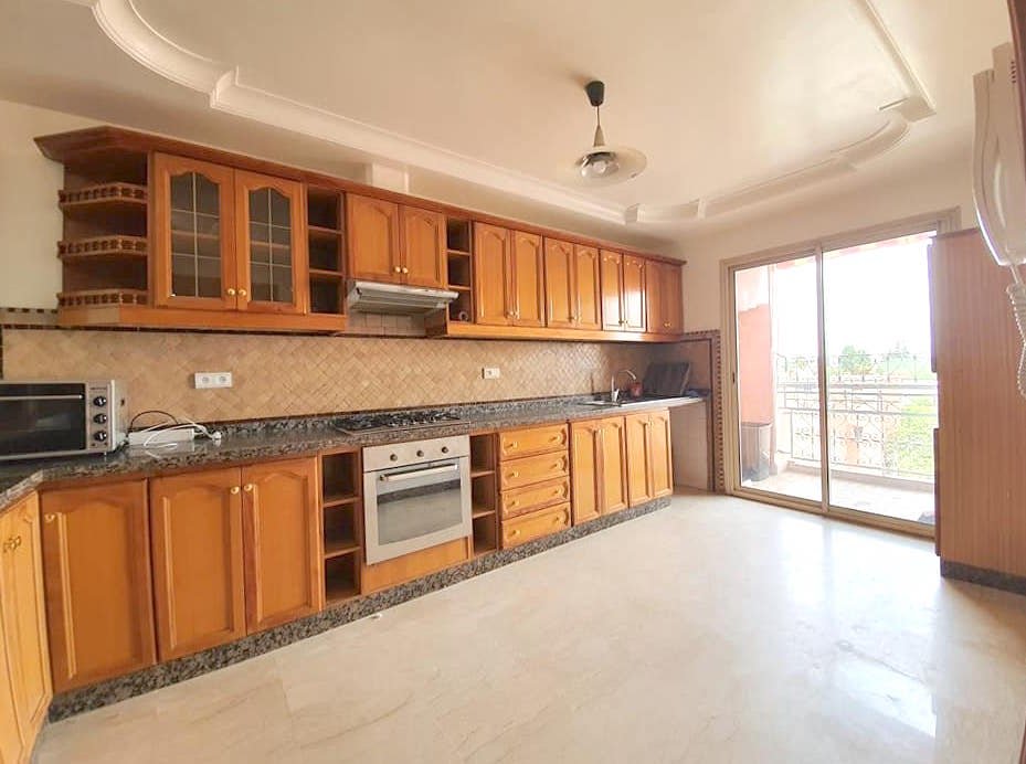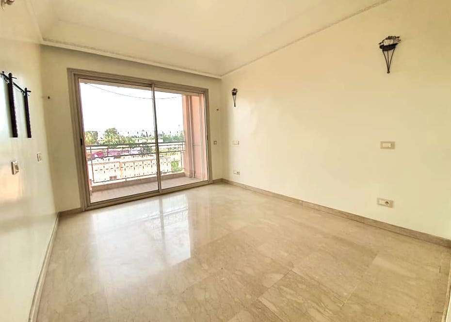 À LOUER VIDE CE SPACIEUX APPARTEMENT DE 140 M², DE 3 CHAMBRES AVEC CHEMINÉE ET TERRASSE, DANS UNE RÉSIDENCE DE GRAND STANDING AVEC PISCINE, BIEN SITUÉ ENTRE GUÉLIZ ET HIVERNAGE ET À MOINS DE 100M DES REMPARTS DE LA MÉDINA- MARRAKECH Loyer - 8000 MAD/mois hors charges Bel appartement à louer vide au 3 ème étage d'une jolie résidence avec piscine au cœur du guéliz tout en étant à qq pas de la médina. Cet appartement de charme, se compose de : 3 chambres avec 3 sdb un salon avec un coin cheminée et un coin salle à manger, cuisine équipée donnant sur un balcon avec belle vue, place parking. Résidence de bon standing bien entretenue et sécurisée avec des beaux espaces verts et grande piscine. Disponible à/c du 01/11/2021